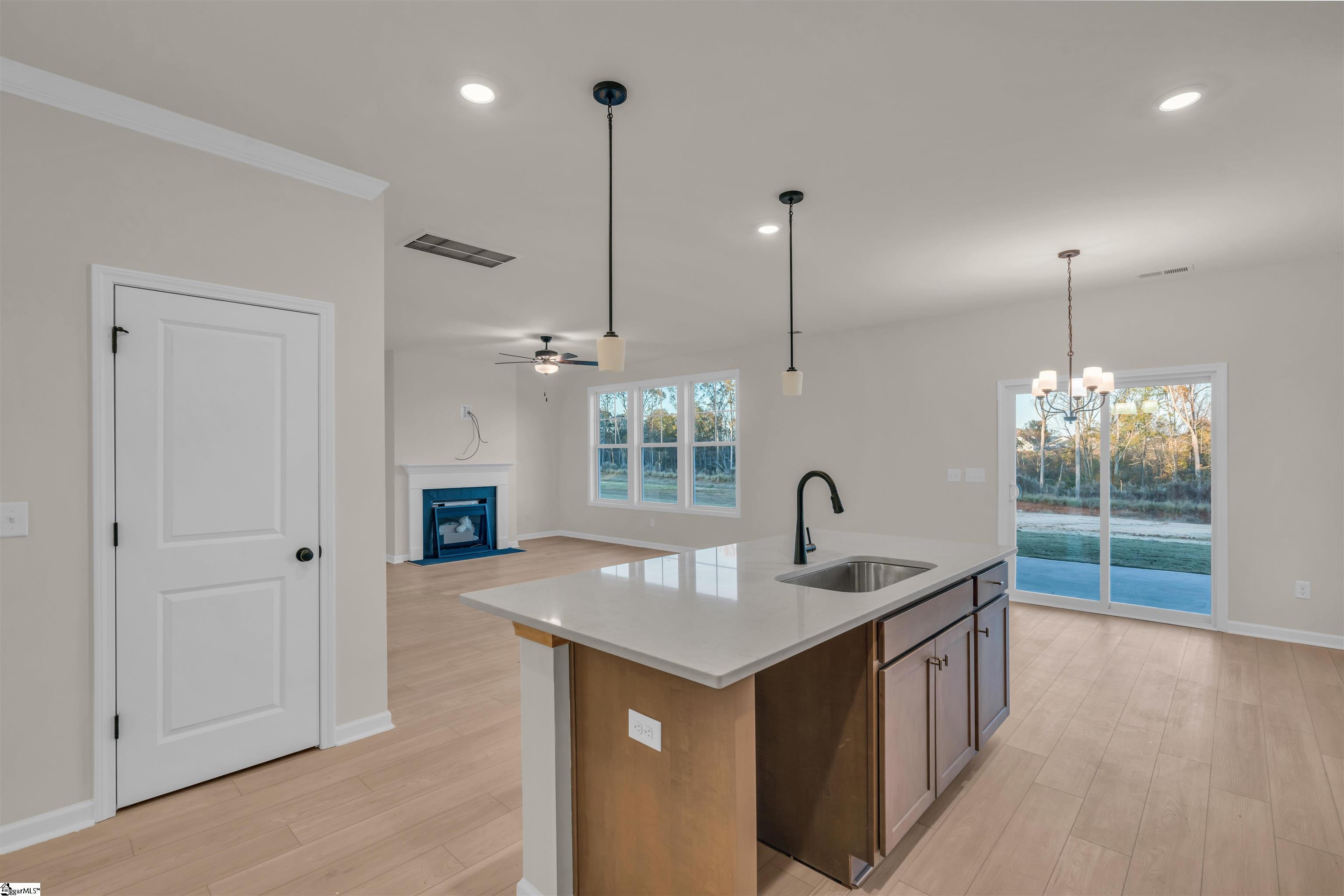 Welcome to Lynbrook, a charming new neighborhood nestled in the scenic Boiling Springs area just north of the vibrant city of Spartanburg. Here, you'll discover the perfect blend of modern living and natural beauty. Lynbrook provides residents the ideal balance of tranquility and convenience, with excellent schools, a brief commute, and stunning vistas of the majestic mountains serving as the backdrop to everyday life. Named after the bubbling, boiling spring that graces the corner of McMillian Boulevard and Highway 9, Lynbrook embodies the spirit of its surroundings, where nature meets modernity. Imagine coming home to a community where lush greenery and rolling hills provide a serene retreat from the hustle and bustle of city life, while still being just moments away from all the amenities and attractions of Spartanburg, SC. Discover your dream home in Lynbrook and experience the best of both worlds today. Brand new Benton II plan features added windows, flex room, full bath, dining, open kitchen with large island and living room. 2nd level features large loft area room, the primary suite with volume ceiling, bathroom with dual vanities, and oversized walk in closet. Relax and unwind on the covered patio, an ideal place to enjoy the beauty and nature of the spacious backyard. Each lot is unique and provides plenty of green space overlooking wooded views, perfect for entertaining guests and creating memories for many years to come.
