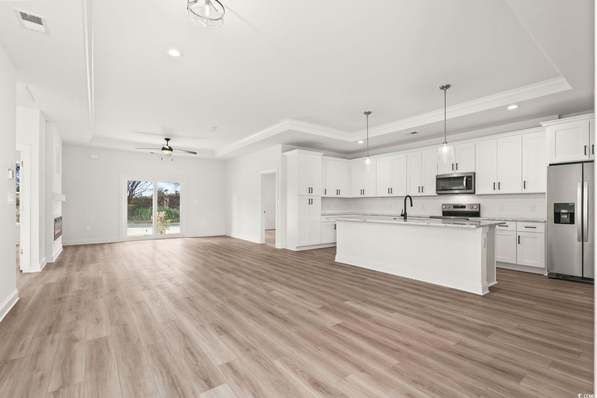 Welcome to low-maintenance, one-level living in Longs, SC. This brand-new 3-bedroom, 2-bath townhome offers just over 1,600 heatedsquare feet and a private 2-car garage — a rare find at this price point. The open floor plan features luxury vinyl plank flooring throughout, granite countertops, stainless steel appliances, upgraded trim package, and an electric fireplace that anchors the living space. Thespacious primary suite includes a walk-in closet and a private bath. Built for comfort and convenience, this single-story home is ideal for downsizers, retirees, families, or those relocating to the Grand Strand. Located near Long Bay Golf Club and within easy driving distance to North Myrtle Beach, shopping, and dining. Limited availability! Schedule your showing today.
