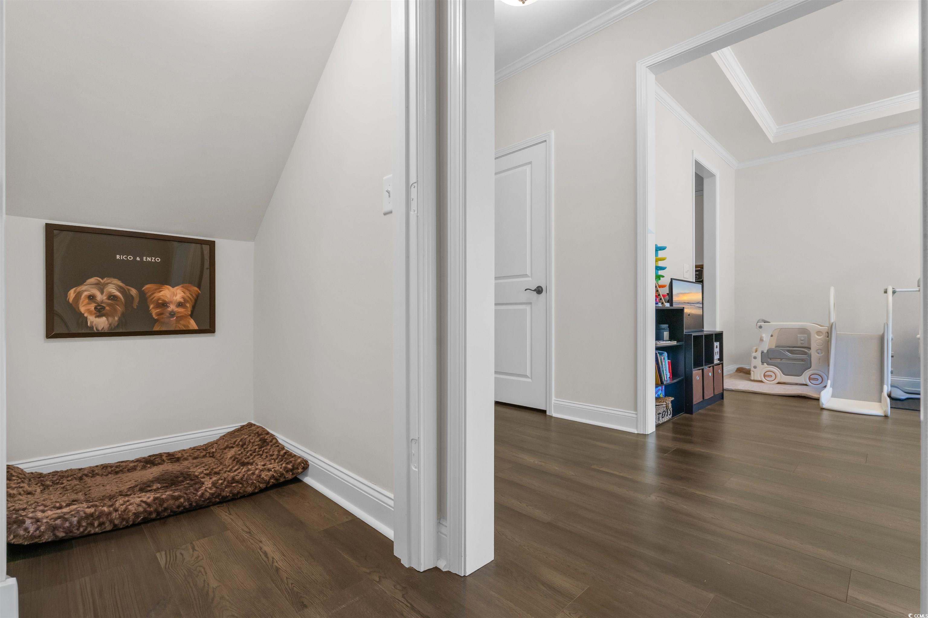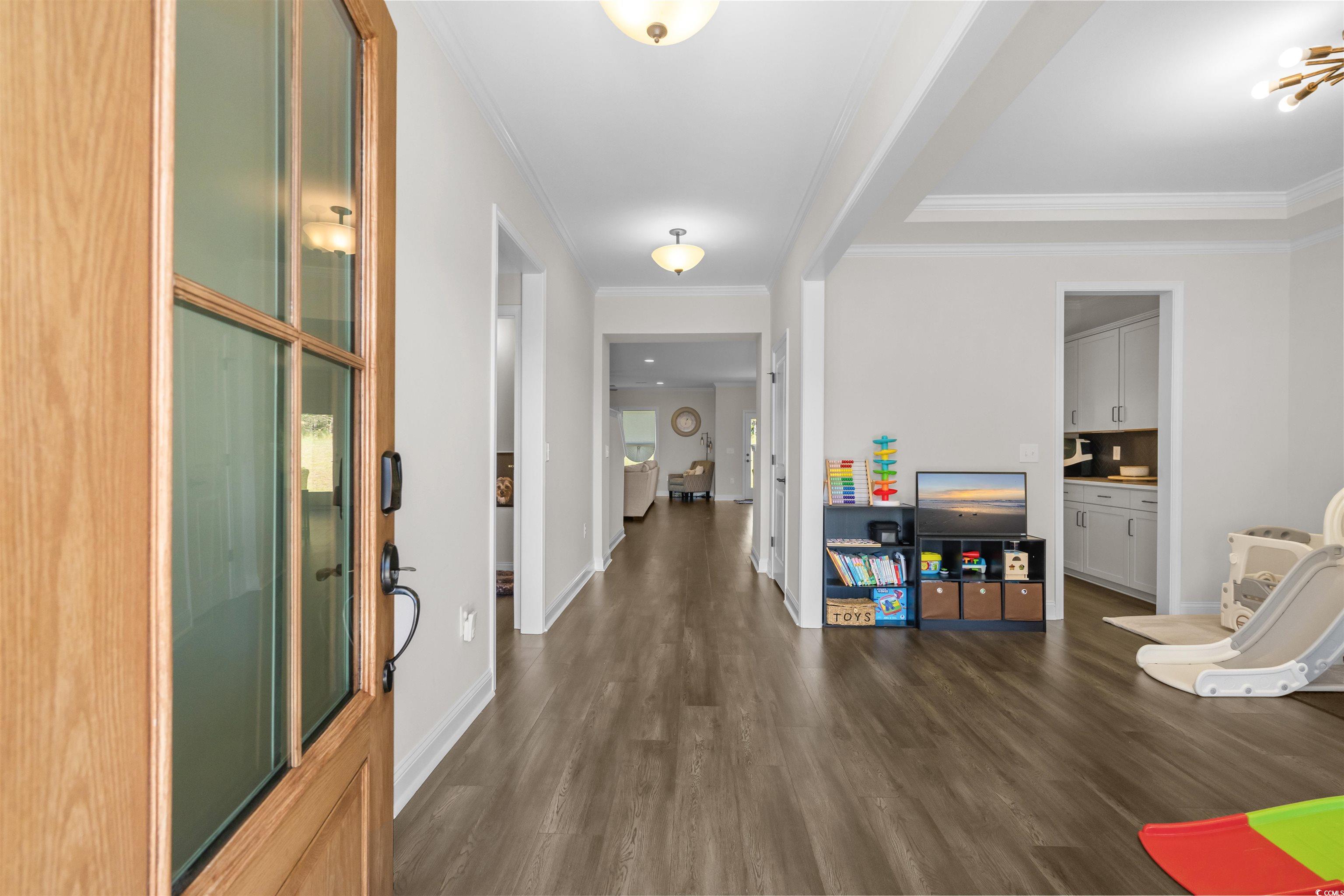 Welcome to this remarkable 4-bedroom, 3.5-bathroom home located in the highly desirable Berkshire Forest community in Carolina Forest! Boasting a spacious and thoughtfully designed layout, this home offers comfort, functionality, and elegant details throughout. As you arrive, you’ll be greeted by beautiful landscaping and a charming front porch, perfect for enjoying quiet mornings. Step inside to find a formal dining room with elegant tray ceilings to your right—currently used as a playroom—and a private office with a stylish glass door to your left. The heart of the home is the chef-inspired kitchen, fully equipped with stainless steel appliances, a work island, an expansive walk-in pantry, and abundant cabinet space—a true dream for any culinary enthusiast! The master suite is a serene retreat, featuring tray ceilings, a double-sink vanity, walk-in shower, garden tub, and a massive walk-in closet. Upstairs, you'll find a spacious loft-style living area, a second office/flex space, and three additional bedrooms. Step out onto the second-story balcony overlooking the front yard—a perfect spot to unwind. The yard includes a new irrigation system to make lawn care effortless. But the home is just the beginning—Berkshire Forest offers resort-style amenities including: multiple community pools, clubhouse & recreation center, tennis courts, playground, fitness center, and a scenic lake with walking trails for peaceful strolls and relaxation! This is more than just a home—it's a lifestyle. Don’t miss your chance to be part of this vibrant and welcoming community. Schedule your showing today!