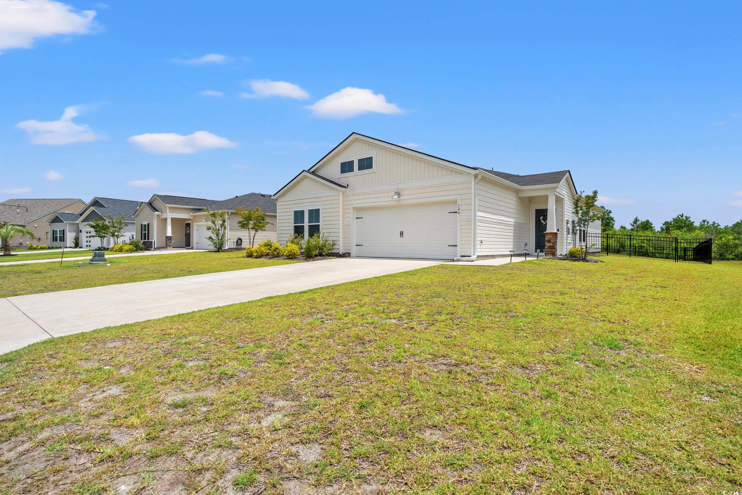 Welcome to this like-new property built in 2022, 4-bedroom, 2-bath home that perfectly blends modern comforts with natural beauty. Situated in a tranquil neighborhood just north of Historic Conway and conveniently close to International Drive, the Glenmoor community. This home boasts a fenced-in backyard that backs directly to a peaceful nature preserve, offering serene views and ultimate privacy. Step inside to discover a spacious and inviting living area. The heart of the home features a fully updated kitchen, complete with sleek granite countertops, subway tile backsplash, high-end stainless steel appliances, and ample cabinet space. The primary suite is oversized and away from the other three bedrooms leading into the en-suite bathroom, featuring a double vanity sink with plenty of countertop space. The separate water closet provides privacy, while the walk-in closet offers generous space for all your wardrobe needs. There is a full laundry room that leads to the 2 car garage. In the garage you will find shelving that was added and will stay with the home. There is spacious backyard and patio off of the screened porch, making it a great place for entertaining and plenty of room for a playground and/or pool. Glenmoor allows golf carts, motorcycles, great streets for evening walks and includes a wonderful community pool and clubhouse. New affordable HOA coverage with Kuester which includes: internet, trash pick up, pool, clubhouse and access to Lewis Ocean Bay Nature Preserve from the neighborhood- great for biking, walking and golf carts! Conveniently located near shopping, dining, major highways, entertainment, top-rated schools & hospitals. Other features include: New LVP Wood flooring, ceiling fans throughout, smart home capability, tankless water heater, added fenced in backyard and screened in porch and gutters around the home. This home is equipped for those who work from home, a wall plate ethernet jack was added in the office that is directly connected to the internet router in the smart home panel giving you guaranteed high-speed connections. Seller is offering assistance in closing cost or a home warranty to the buyers! MOTIVATED SELLER! Schedule your showing today!