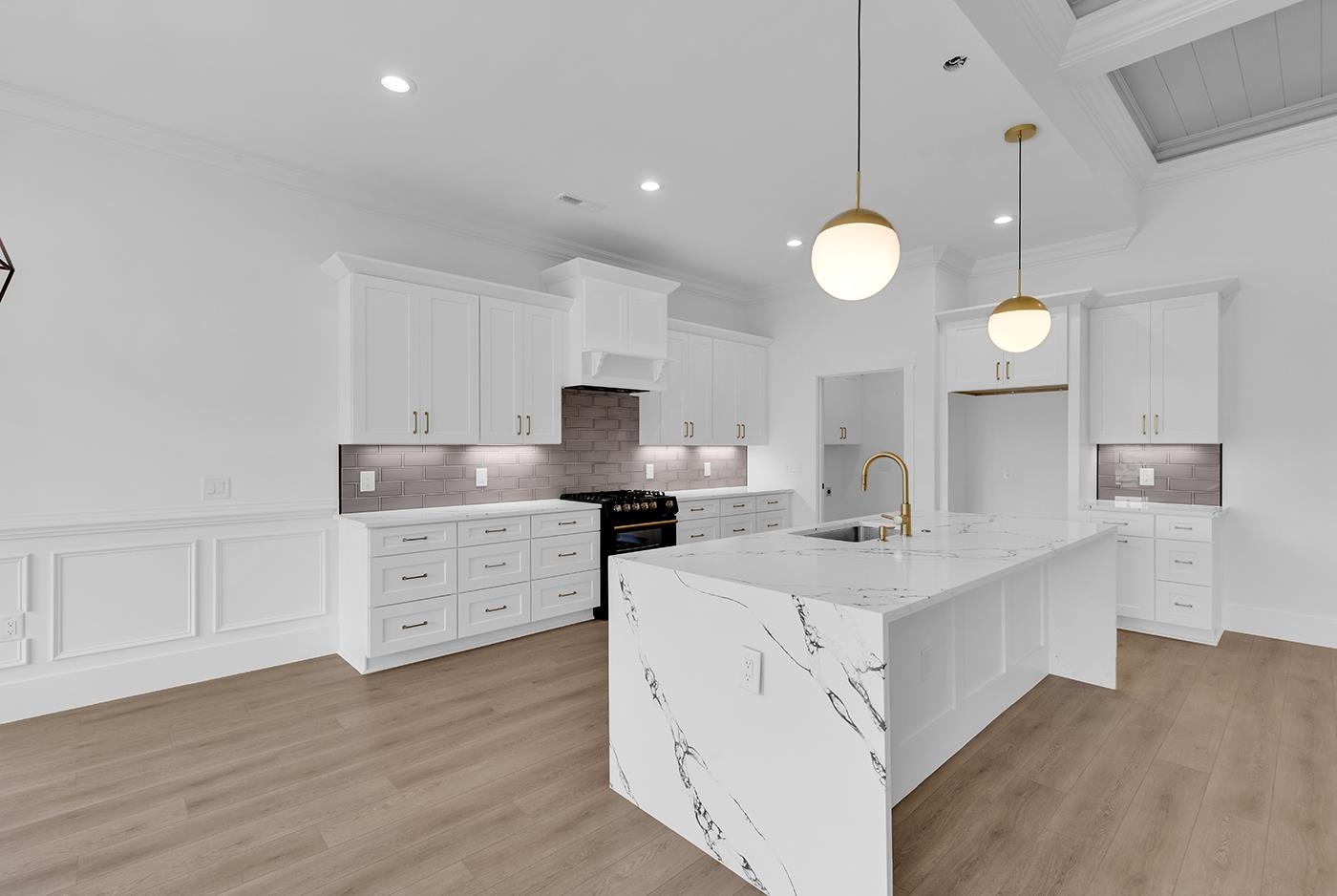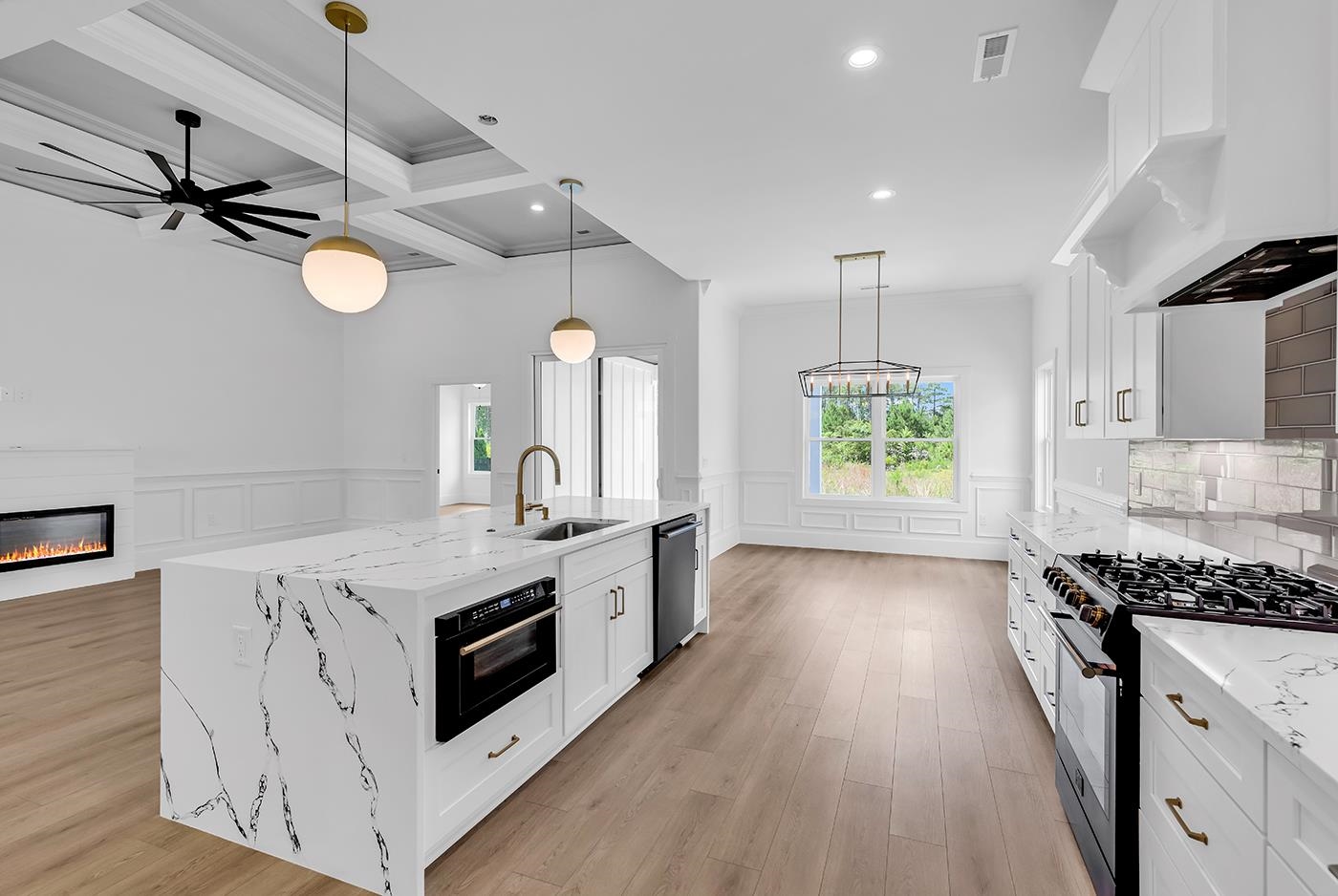 Welcome to this stunning custom-built 4-bedroom, 2-bath home in the gated Sago Plantation at Legends. Positioned on a desirable corner lot with only one neighboring home, this property blends upscale design with everyday comfort and privacy in a natural gas community. Inside, the open floor plan designed for daily living and entertaining at ease. The house has detailed trim work throughout, creating a refined, custom feel in every room. The heart of the home is the dream kitchen, featuring a dramatic waterfall-edge quartz island, sleek black appliances accented with gold trim. The primary suite offers a custom tiled shower and a spa-inspired atmosphere. The hall bath is just as impressive, showcasing a beautifully tiled wrap-around tub—perfect for guests or family. Step outside to the covered patio, already plumbed for a future outdoor kitchen, and enjoy the privacy-fence aloong the back of the property—ideal for relaxing, hosting, or creating your own outdoor oasis. Plenty of room in backyard if you want to install a pool in the future. Located in a gated community and built with thoughtful detail from top to bottom, this home delivers the custom features buyers are searching for, paired with the comfort and functionality of a modern coastal lifestyle. Just minutes from entertainment, golf, restaurants, and shopping. Only a 10-15 minute drive to the beach.
