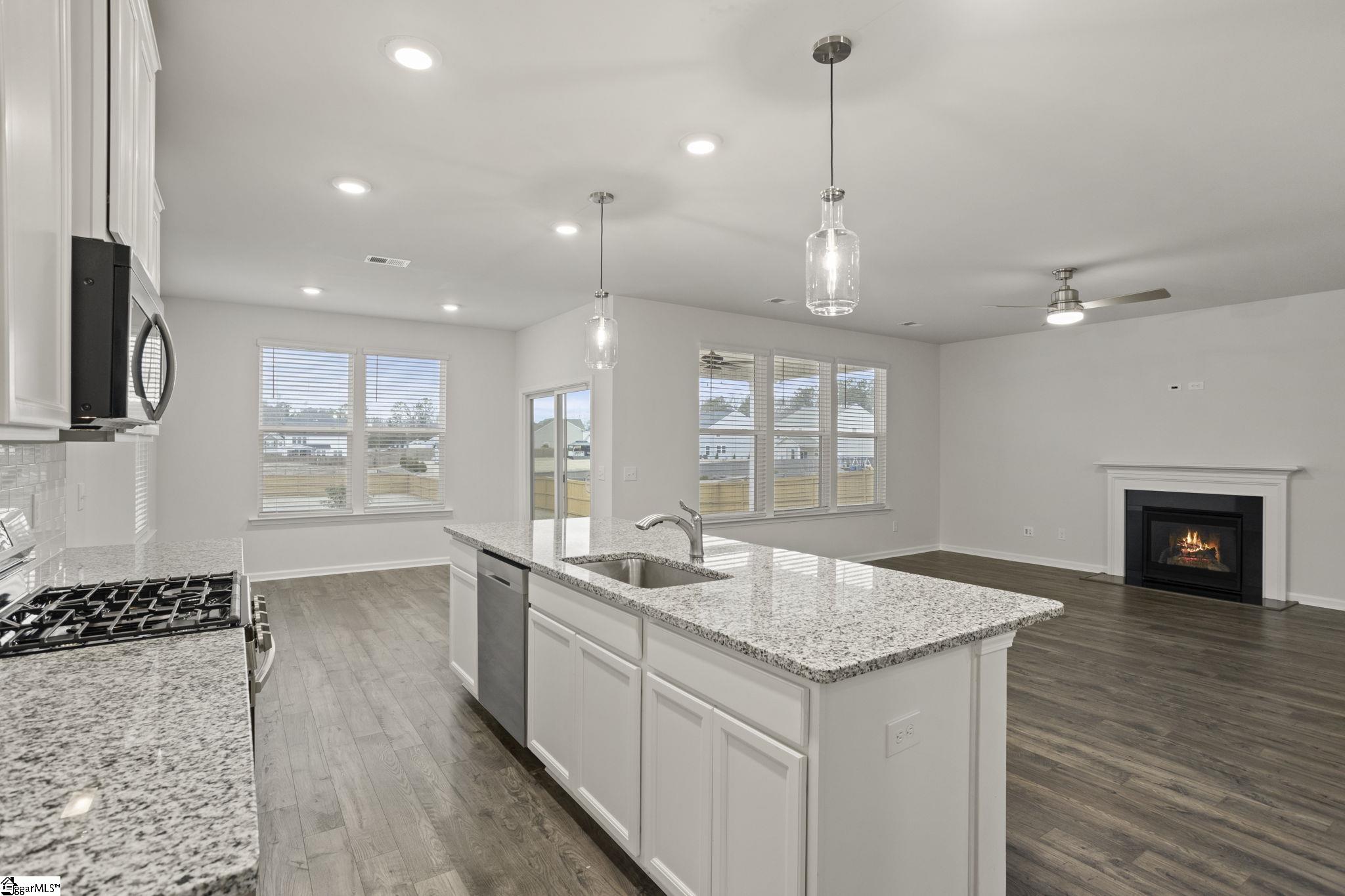 Spacious Yard & Like-New Home in Simpsonville! Welcome to this impressive 2-year-old home offering over 3,100 square feet of living space on a generous 0.57-acre lot. The fenced backyard with privacy fencing, dual patio areas, and covered porch create the perfect setting for outdoor living, entertaining, and relaxing. Inside, you’ll love the open floor plan designed for both everyday living and hosting. The kitchen flows seamlessly into the great room and features a large island, walk-in pantry, solid surface countertops, tile backsplash, gas range, and a bright, airy breakfast area—an ideal spot to start your day. A separate formal dining room adds flexibility for special gatherings and entertaining. The main level includes a guest bedroom and full bath, perfect for visitors or a home office. The spacious owner’s suite is a true retreat, featuring two large walk-in closets and a private bath with double sinks and a walk-in shower. Upstairs, you’ll find additional guest bedrooms that share a hall bath, along with a conveniently located laundry room. The double garage and ample driveway parking provide plenty of space for family and guests. Enjoy neighborhood sidewalks ideal for walking and staying active, all in a fantastic Simpsonville location close to shopping, dining, and more. This home truly offers space, comfort, and convenience!