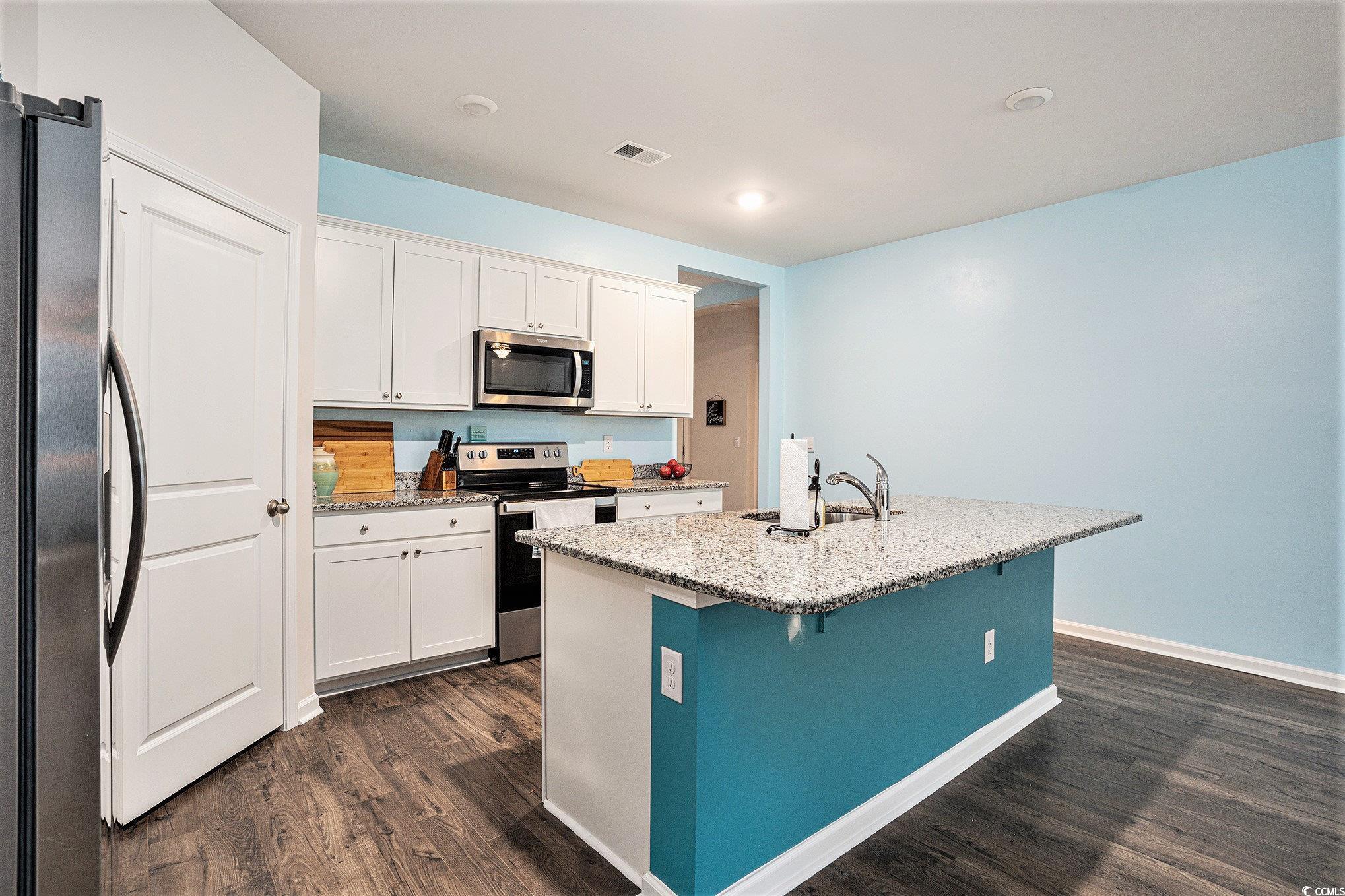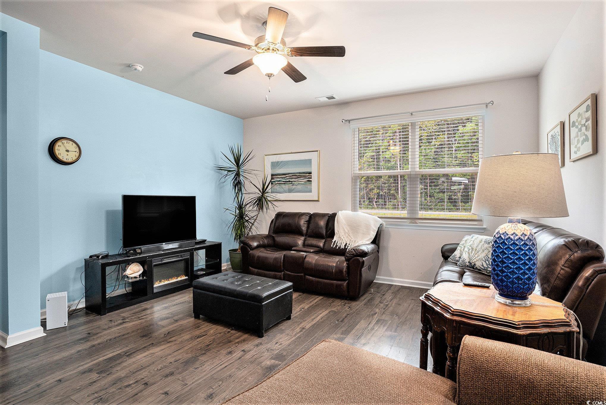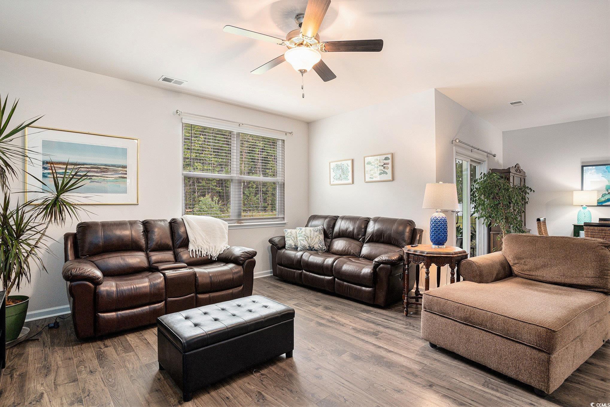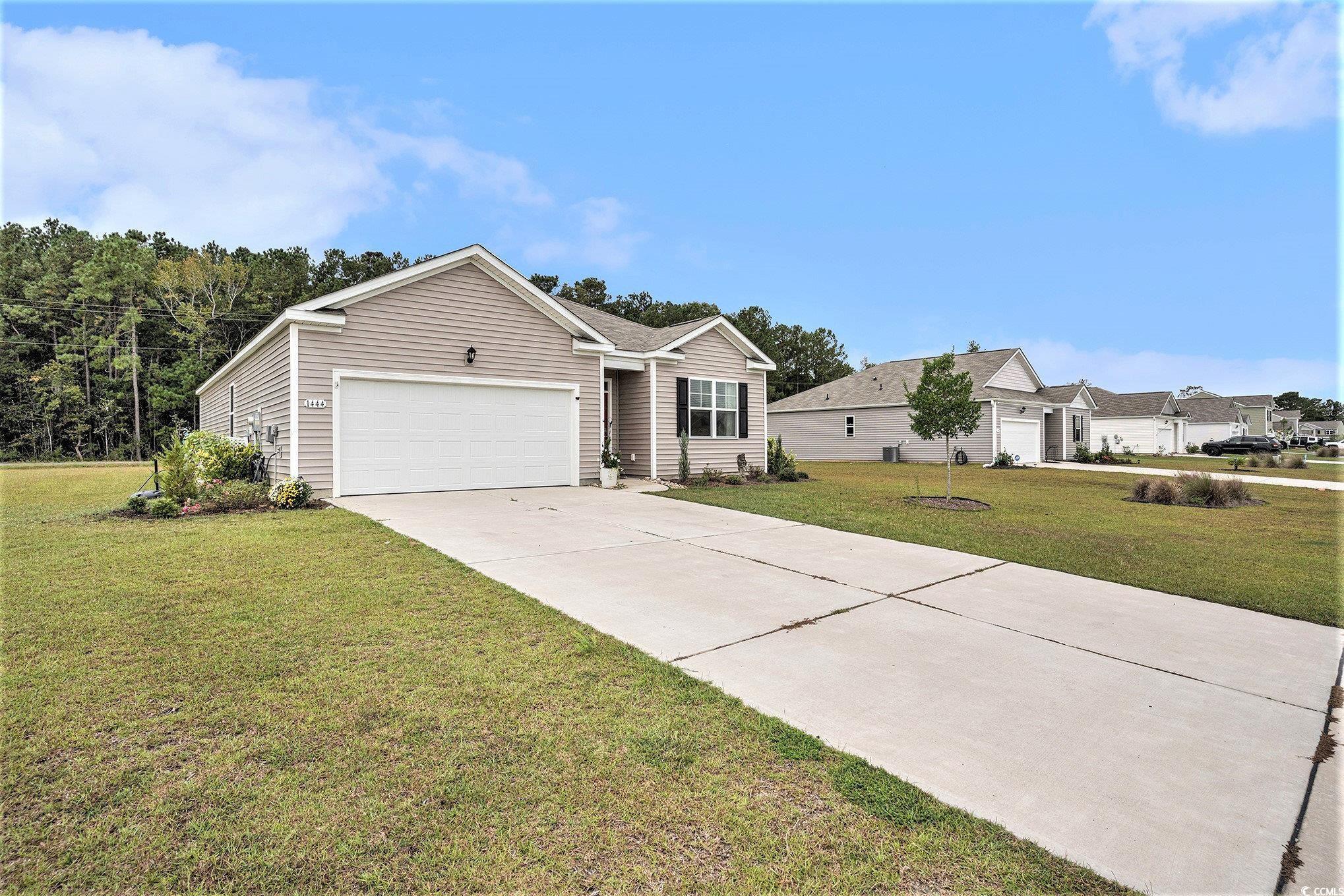 This thoughtfully designed single-level home features one of the builder's most popular floor plans! The open-concept layout seamlessly connects the living room, dining area, and kitchen, creating a bright and spacious atmosphere perfect for entertaining guests or enjoying everyday family life. The kitchen is beautifully equipped with granite countertops, 36" cabinetry, stainless steel appliances, a walk-in corner pantry, and a large island with a breakfast bar. Whether you're cooking a family meal or hosting friends, this space offers both functionality and style. The primary suite is privately located at the back of the home and includes a spacious walk-in closet and a well-appointed bathroom featuring double sinks, a linen closet, and a 5' walk-in shower. Three additional bedrooms are positioned at the front of the home, offering comfort and privacy for family members or guests. The thoughtful split-bedroom design ensures a quiet retreat for everyone. Relax and unwind on the back porch while enjoying the coastal air. Perfect as a primary residence, vacation getaway, or investment property, this home is located in the desirable Lochaven neighborhood just minutes from historic downtown Conway, local shops, dining, schools, and a short drive to the beaches of Myrtle Beach.