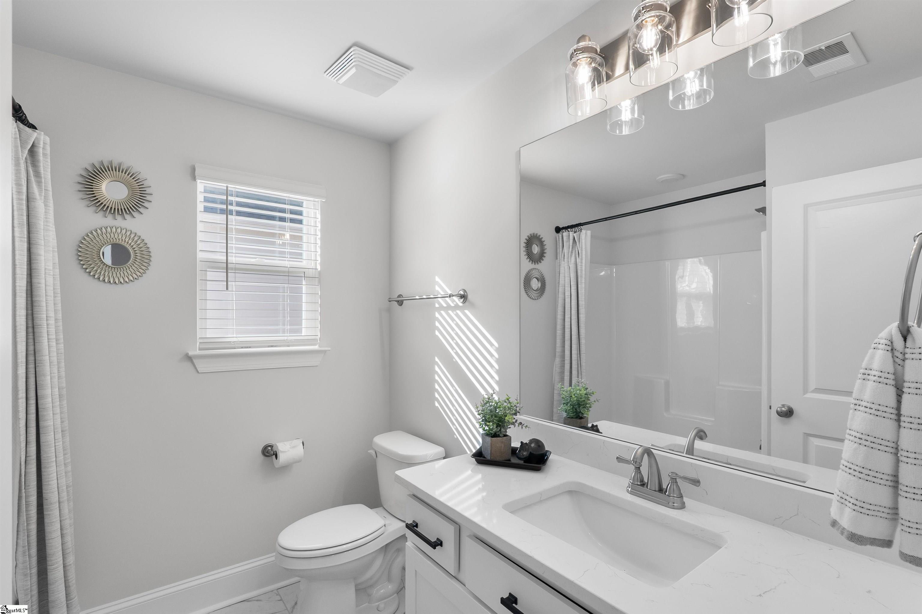 Welcome to a home that was designed with everyday living in mind, where every detail has been thoughtfully crafted to offer comfort, connection, and convenience. Built in 2023 and nestled in a walkable community with a neighborhood pool, this nearly new residence is more than just a house—it’s a place where your family’s memories will unfold. Set in the highly desired Powdersville school district and offering easy access to Greenville, this home combines thoughtful design with a location that supports family life at every stage. Step inside and you’ll find spaces that invite connection. The kitchen, with its oversized island, gas stove, and upgraded lighting, flows easily into the living room—perfect for watching the game while still keeping an eye on the snacks. The dining room and sunroom extend your options, giving you plenty of room to host everything from laid-back football Saturdays to Thanksgiving dinners. Custom finishes like coffered ceilings, detailed trim work, and luxury vinyl plank flooring bring a touch of elegance to everyday living. The thoughtful floor plan puts the primary suite and two bedrooms downstairs, while upstairs offers a bonus room that adapts to your lifestyle. Whether it becomes a movie room, a workout space, or simply the best seat in the house for game day, the possibilities are endless. With a fourth bedroom and full bath upstairs, guests can feel welcomed. Outside, the backyard is ready for every season. Gather friends around the fire pit on crisp fall nights, string up the romantic lighting over the expanded patio, and enjoy the privacy of a flat, fenced yard that backs to trees. The custom 10x20 shed—complete with dual lofts, insulation, reinforced flooring, and a workbench—adds function and versatility for projects, storage, or hobbies. And when the holidays roll around, permanently installed trim lighting ensures your home will shine in any color or pattern you choose. Outside the two car garage is an expanded driveway ensuring parking is never a problem when friends and family gather. This home isn’t just move-in ready—it’s ready for the life you want to live. From casual Saturdays with friends to holiday traditions that last a lifetime, every detail here has been carefully designed to bring people together in comfort and style.