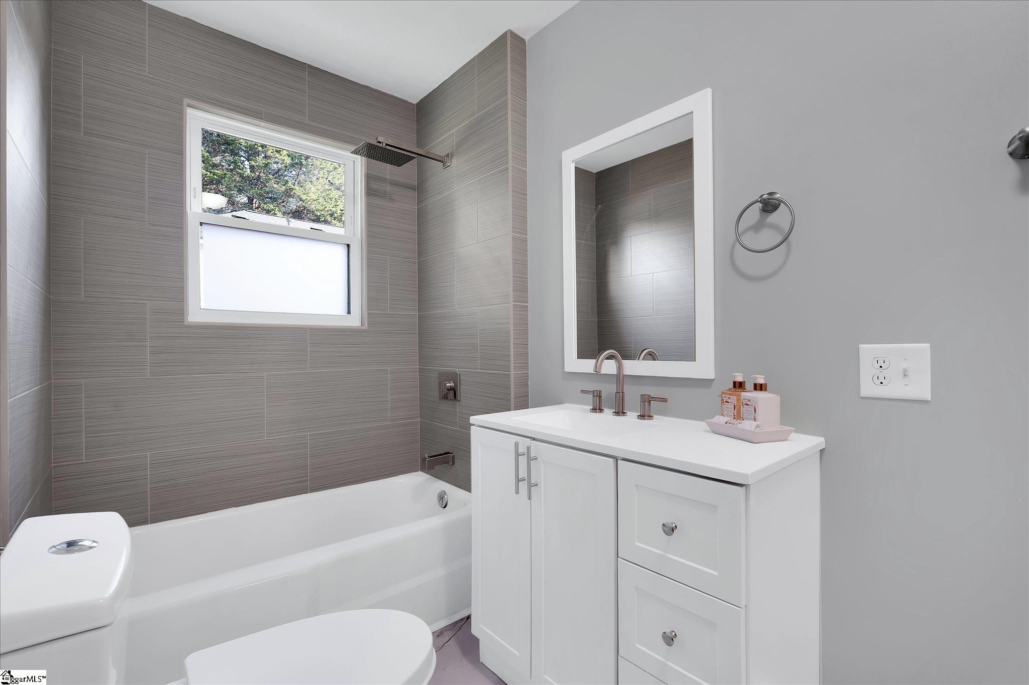 Ready for your new HOME? ?? This beautifully remodeled 2-bedroom, 1½-bathroom gem is waiting for you and it is just steps from the Doodle Trail and minutes from historic downtown Easley! Home Features brand new kitchen cabinets, elegant new flooring, newer appliances, and it perfectly blends modern comforts with classic charm! Enjoy the original, but freshly refinished hardwood flooring and the inviting beadboard ceiling in the living room. The rooms are large and inviting, but still cozy. The lighting has been updated throughout and it pairs nicely with the craftsman style of this 1920’s build. The spacious full bathroom features gorgeous tile around the tub, a spacious vanity, brand new LVT flooring. 1/2 bath and an area for a stackable washer/dryer will give you added comfort and convenience! Step outside to your covered front porch or large back patio and take in the beautiful flowers in your private back yard—ideal for those Fall evenings! There you will find a flat fenced yard perfect for play, a carport to keep your vehicle from the elements, and an extra parking pad! Don't miss out on this wonderful opportunity to own this move-in ready home! All of this under $210k and a home warranty is included! Owner/agent.