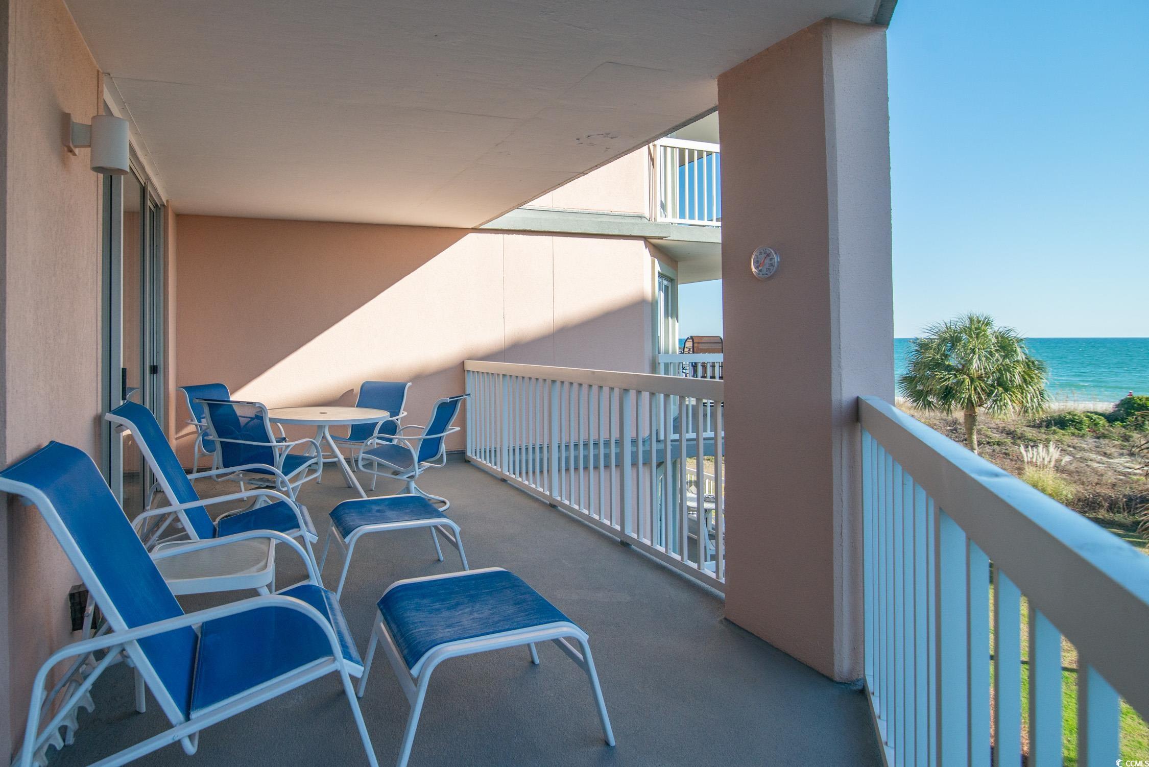 Experience true oceanfront living in this beautifully furnished 3-bedroom, 3-bath end-unit condominium located in the highly sought-after Warwick community within Litchfield by the Sea. Positioned directly on the ocean, this residence offers breathtaking coastal views and an exceptional indoor-outdoor lifestyle. The renovated kitchen, completed in December 2025, features all-new appliances including a stand alone icemaker and opens seamlessly to an expanded dining area, a benefit unique to the end-unit layout—ideal for entertaining or everyday coastal living. The open living space leads to a private oceanfront balcony, perfect for enjoying sunrise views and the soothing sounds of the Atlantic. Each bedroom offers direct access to its own balcony, providing abundant natural light, refreshing ocean breezes, and private outdoor space for family and guests. This condo is offered fully furnished, making it a true turnkey opportunity for immediate enjoyment or rental use. Additional features include one assigned parking space under the building, elevator access, and the unmatched amenities of Litchfield by the Sea, including private beach access, miles of walking and biking paths, tennis and pickleball courts, and a fishing and crabbing dock. Conveniently located near world-class golf, dining, and shopping, and just minutes from Pawleys Island and Murrells Inlet. This is a rare opportunity to own a renovated, oceanfront end unit with exceptional views, outdoor living space, and access to premier coastal amenities.