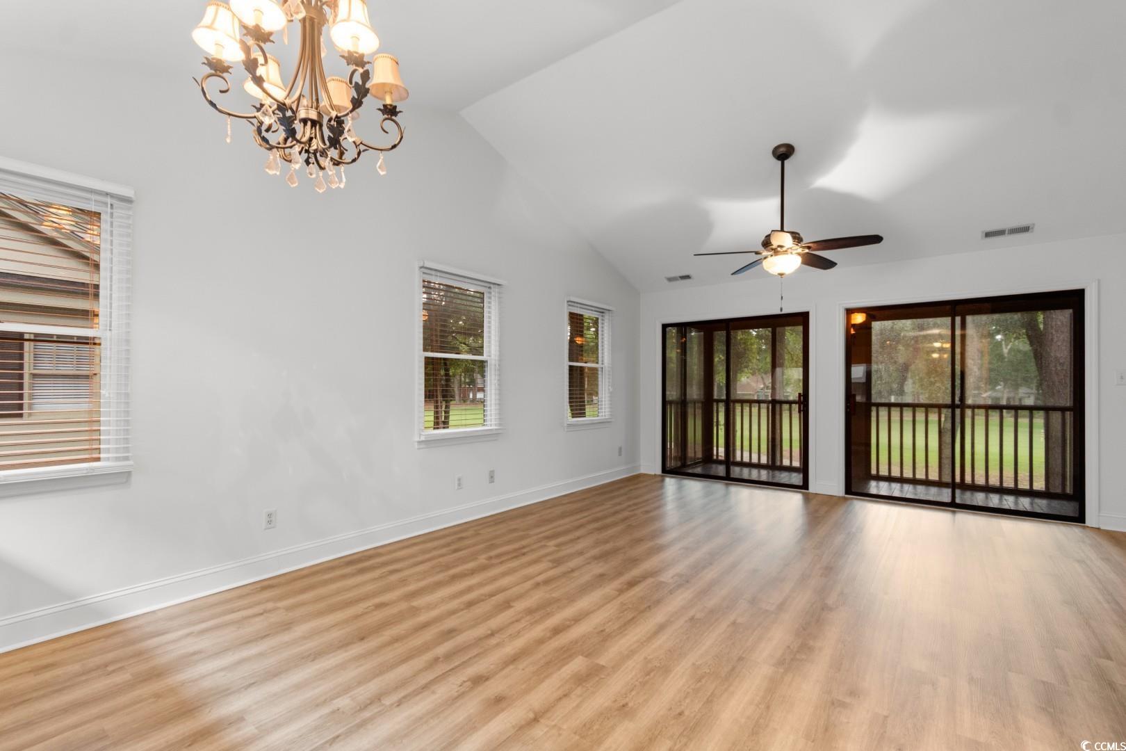 Nestled within the prestigious Weehawka Woods of Pawleys Plantation, this beautifully renovated 2-bedroom, 2-bath condo is your gateway to the coveted Pawleys Island lifestyle. As you step inside, you'll be greeted by an open and airy living space, highlighted by vaulted ceilings and an abundance of natural light. This home has been completely transformed with a totally renovated interior. Every detail has been thoughtfully updated, including new LVP flooring throughout, new soft-close kitchen cabinets, and a fresh coat of paint. The kitchen is a true centerpiece, featuring sleek granite countertops and stainless steel appliances, perfect for a quiet night in or entertaining guests. One of the unique features of this condo is its versatile lock-out unit setup, providing endless possibilities. Use it to host guests, generate rental income, or offer private living space for family members. After a day of golf or exploring the island, you can unwind on the peaceful screened-in back porch with a good book, a gentle ocean breeze with a view of the golf course. The Pawleys Plantation community offers a wealth of amenities just steps from your front door. You can spend your days lounging by the community pool, staying active in the clubhouse gym, or exploring the scenic walking trails. For the avid golfer, an optional Golf Buy-In is available, providing access to one of the area's premier courses. Living here means you're just minutes away from all the best of Pawleys Island, boutique shops, top-rated restaurants, and the tranquil shoreline of the Atlantic Ocean. This isn't just a home; it's a lifestyle upgrade. This property offers the perfect blend of charm, comfort, and convenience, making it an ideal choice for a full-time residence, a second home, or a profitable rental opportunity!