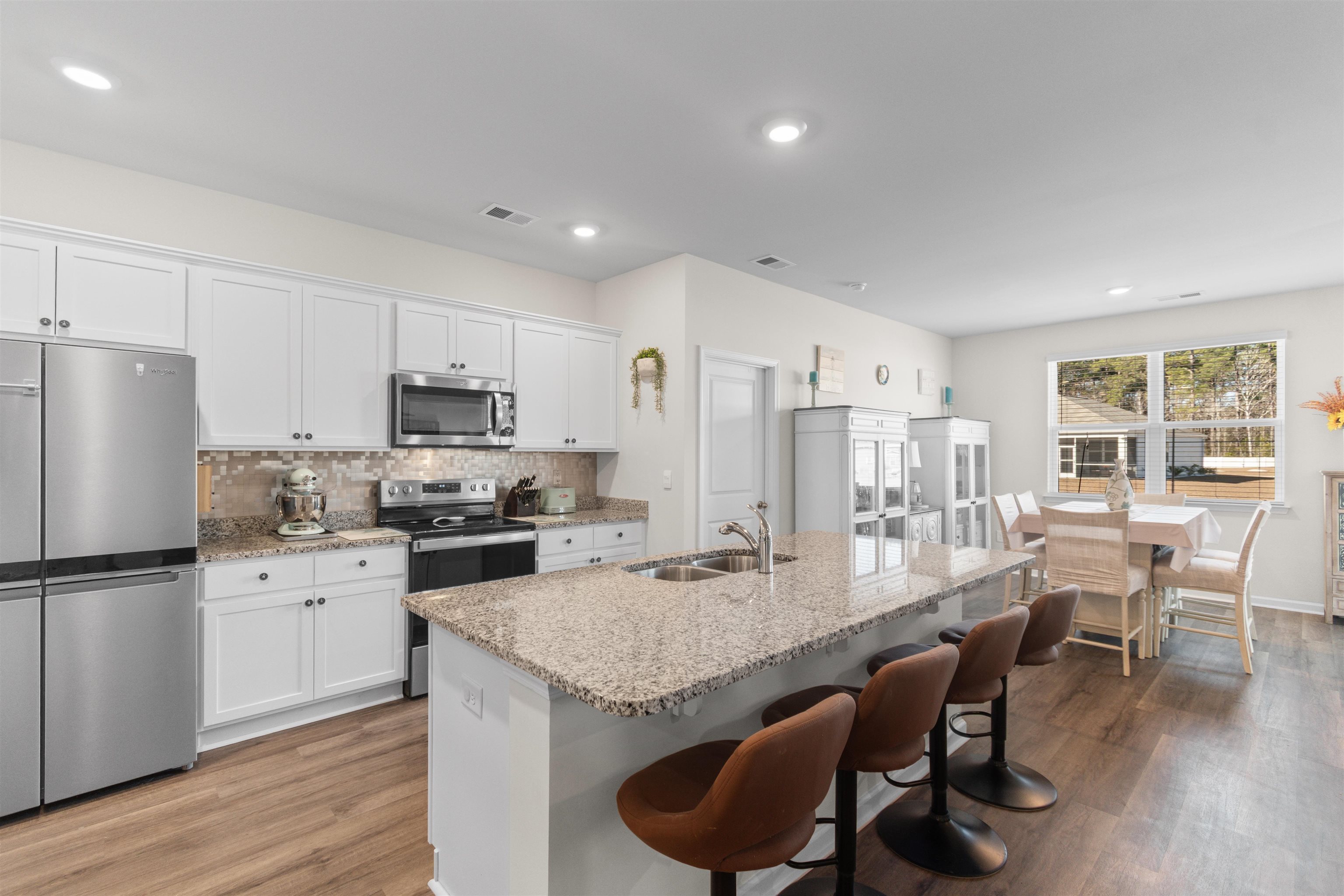Open Saturday 2-4pm and Sunday 12-2 pm! Come join me and see what's special about this one! You'll enjoy truly southern outdoor living in this home! Imagine coffee or tea in the screened porch or host a gathering on the patio and enjoy the wildlife. This home in Tallwood Lakes is just awesome! All set on a spacious .26 acre lot, this move-in-ready 3-bedroom, 2-bath ranch home is located off Rt 57 in desirable Longs, SC, with North Myrtle Beach schools! This home offers the owner privacy, space, and modern comfort. Step inside to an open floor plan featuring durable LVP flooring throughout the main living areas and a spacious living room ideal for entertaining or relaxing. The heart of the home is the gorgeous kitchen, complete with granite countertops, stainless steel appliances, a large center island, ample cabinetry with plenty of storage (with slider shelves), large 6 foot wide pantry with added shelving, and is an easy flow into the dining and living spaces. This home is perfect for entertaining with the open kitchen, living area and a dining area!! No one will miss a minute of the fun when guests are over. The master bedroom has an amazing view of the water, a large closet, and a huge master bath complete with dual sinks and it's own 5 feet walk in linen closet, and a walk in shower with built in seat. Bedrooms 2 and 3 are carpeted and located at the front of the home. The bedrooms are split by the 2nd full bathroom and the laundry room is conveniently located off the entry hall close to the bedrooms. This home is the definition of outdoor living at-its-best! Enjoy the screened-in porch overlooking the water and a fully fenced backyard, plus an extra large 32 foot concrete patio with seating and planters—perfect for morning coffee, grilling, or hosting friends. An added bonus: no neighbors across the street, instead a beautiful wooded view, offering extra peace and privacy. Some upgrades include the security door, the fenced yard, extended concrete patio, the gable over garage, gutters, sliding shelves in the cabinets and the upgraded landscaping. The seller has truly thought of it all and they have solved your Southern storage issues with an added 3x3 storage closet in the main hall, 5 over head storage racks in the garage (each holds 5-18 gallon totes), and the master bath has an added 5 ft walk in linen closet. Conveniently located in southern Longs, just across Route 57 is Little River, with easy access to Highway 57, Highway 9, and Highway 31. Enjoy being close to beaches, shopping, dining, and entertainment while still tucked away in a peaceful residential setting. This DR Horton Aria model is currently listed higher than our home,in Longs, and doesn't have the upgrades this seller has added!! Check us out!