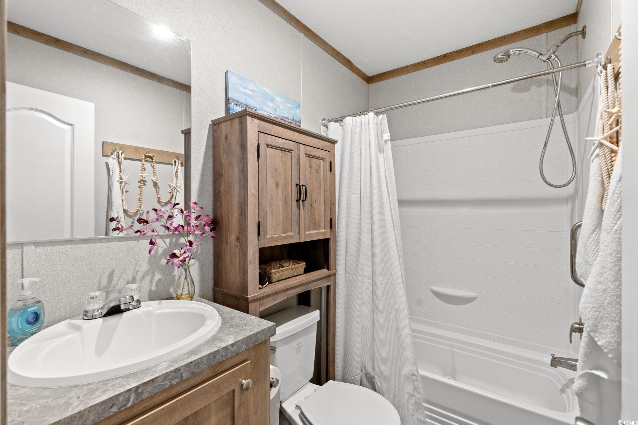 Tucked away in the welcoming community of Market Village, this modern modular residence combines relaxed coastal living with everyday practicality. Just minutes from the sandy shores and the lively Market Commons district, you’ll enjoy the perfect mix of serenity and convenience. Inside, the home opens to a spacious, free-flowing layout where natural light fills the living and dining areas. The kitchen offers a clean, functional design perfect for home cooking or casual hosting. Throughout the home, contemporary finishes—like durable luxury vinyl flooring—create a polished yet low-maintenance space. All bedrooms are comfortably oversized, offering plenty of room to stretch out and make your own. The primary bedroom is especially impressive, boasting a large walk-in closet and a private en suite bath with a generous shower—your personal haven at the end of the day. Out back, the fenced yard offers total privacy, complete with a brand-new concrete patio ideal for gatherings or quiet evenings. A large storage shed keeps tools and gear tucked away, while the front porch provides a peaceful spot to relax and take in views of the nearby pond. Whether you're looking for a full-time home or a weekend retreat, this pet-friendly property offers modern comfort in an unbeatable location. Come see what life could look like just 10 minutes from the beach.