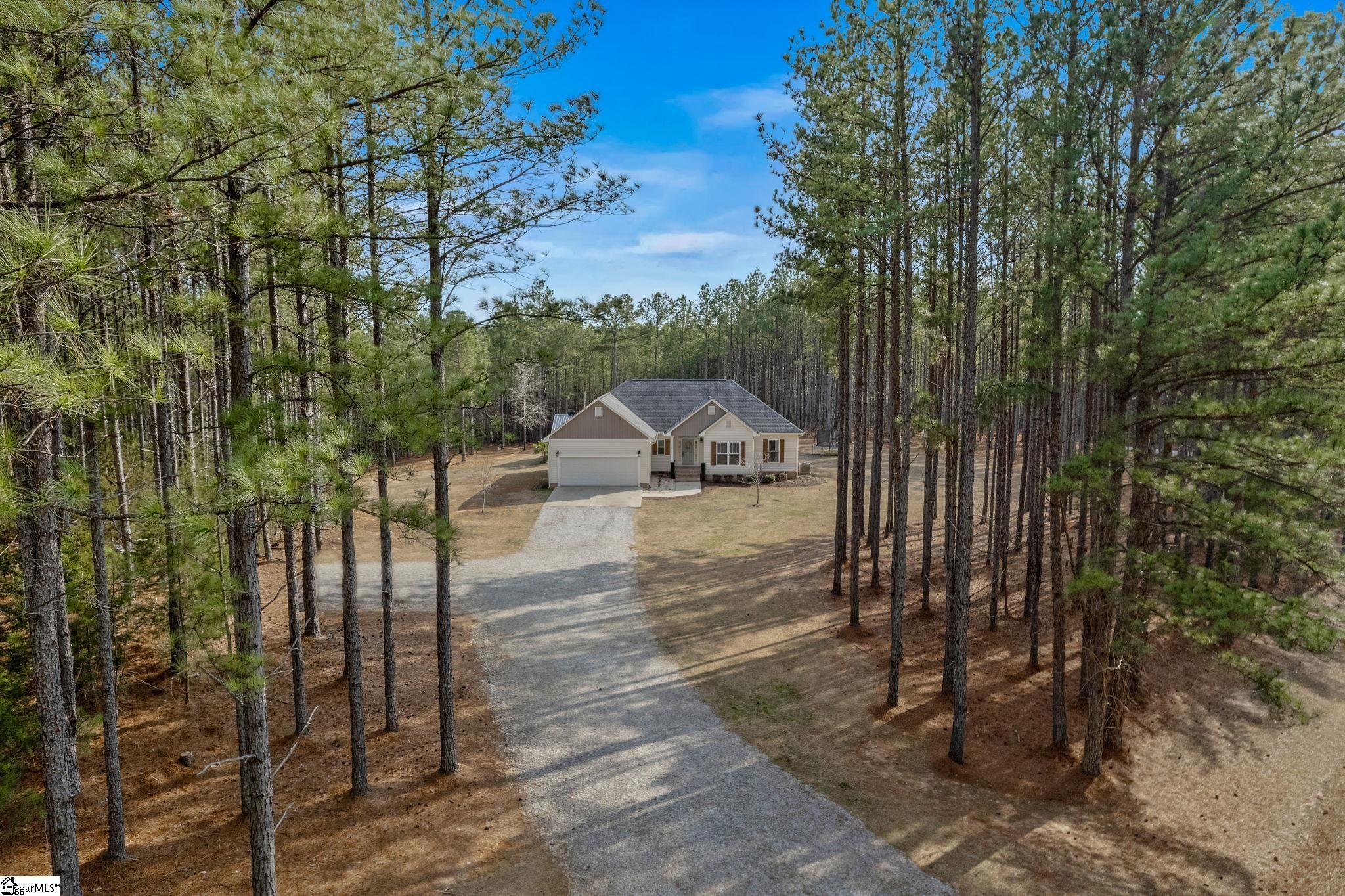 Come on home to a place where the air feels fresher, the sky looks wider, and the stress of the day simply melts away as you pull into the driveway. Nestled in the Hickory Tavern community, this stunning 4-bedroom, 2-bath home offers the perfect blend of modern luxury and country serenity. Built in 2018, this home feels fresh and intentional. As soon as you step inside, you’re greeted by soaring high ceilings and a wide-open floor plan that makes the heart of the home feel incredibly spacious. Whether you’re hosting a rowdy game night or a quiet family dinner, the flow between the living and kitchen areas ensures you’re never far from the conversation. When it’s time to retreat, the owner’s suite is your private sanctuary. It’s got everything you’ve been dreaming of: double sinks to end the "morning rush" battles, a deep tub for long soaks, a separate shower, and enough closet space to actually fit your entire wardrobe (and then some). But the real magic happens when you step out back. Imagine sipping your morning coffee on the covered back deck, looking out over nearly 4 acres of your own level, tree-lined land. When the South Carolina heat kicks in, you’re just steps away from your private inground pool. The deck leads right down to a spacious patio surrounding the pool, making it the ultimate setup for summer BBQs and poolside lounging. Despite the peace and quiet of this lovely area, you’re never isolated. You’ve got an easy, breezy commute to Simpsonville, Greenville, and Laurens, giving you the best of both worlds: a rural escape with city conveniences just a short drive away. Complete with a two-car garage and plenty of room to roam, this isn’t just a house—it’s the backdrop for your next chapter. Come see why life is just a little bit better in Hickory Tavern.