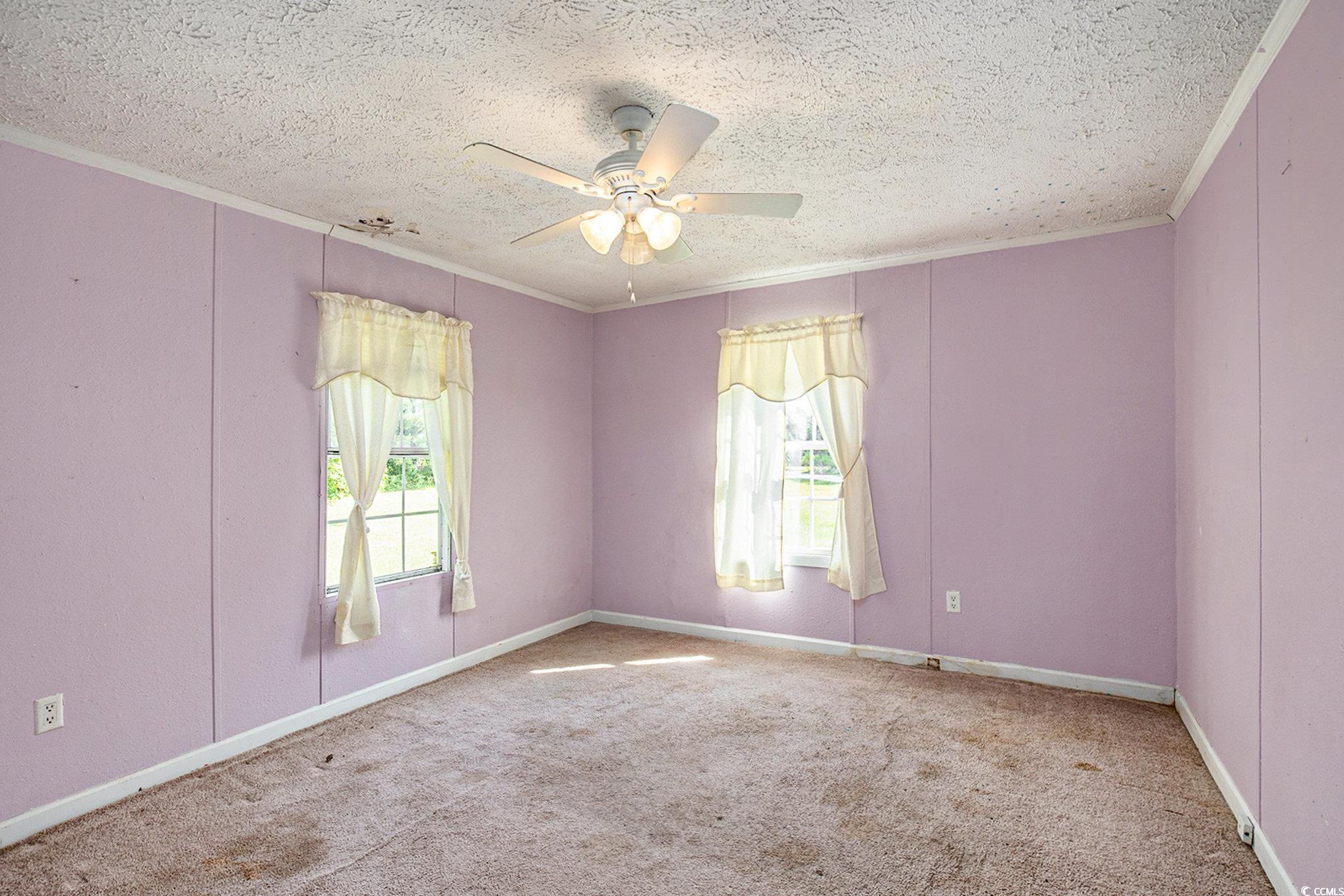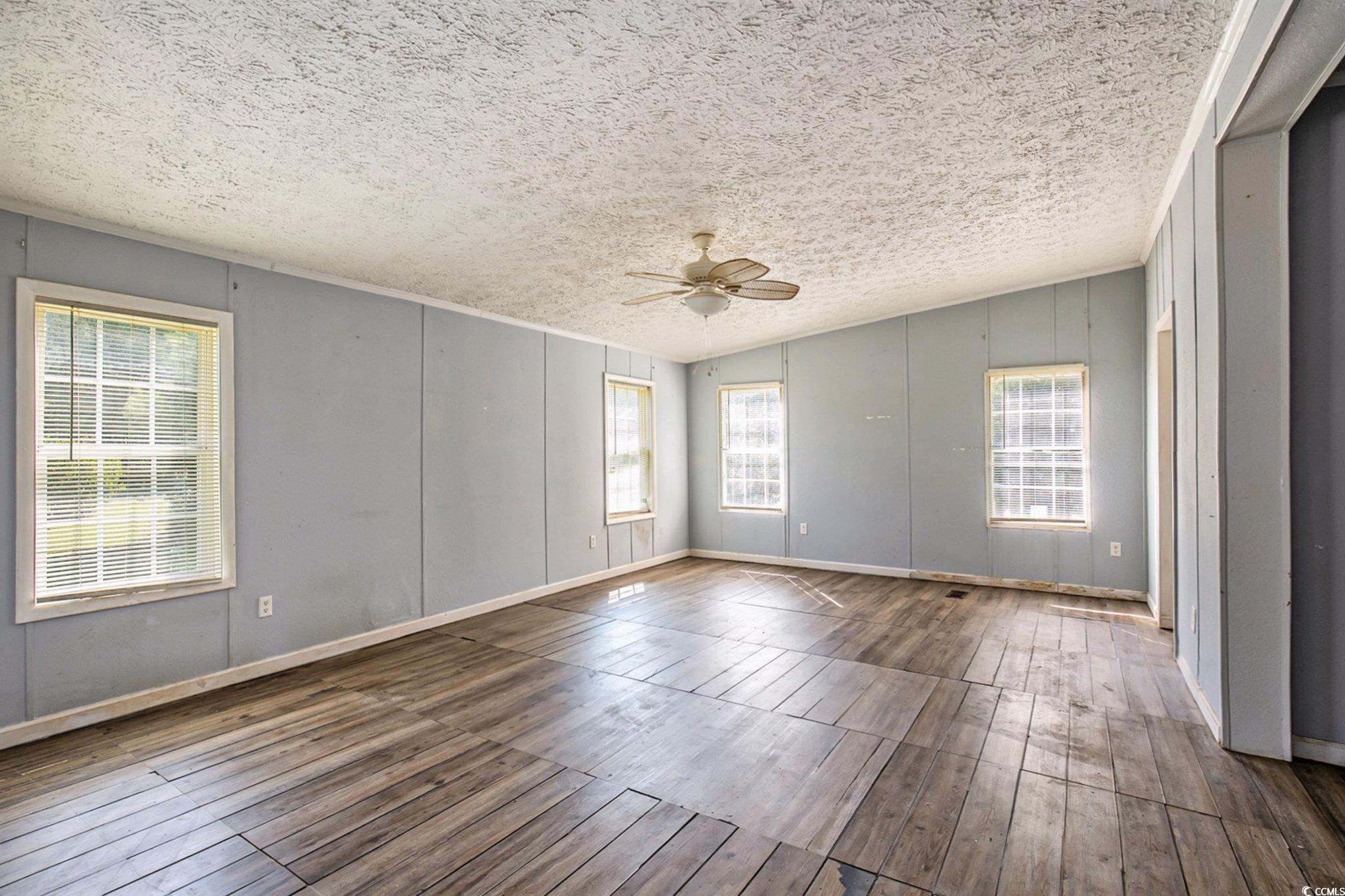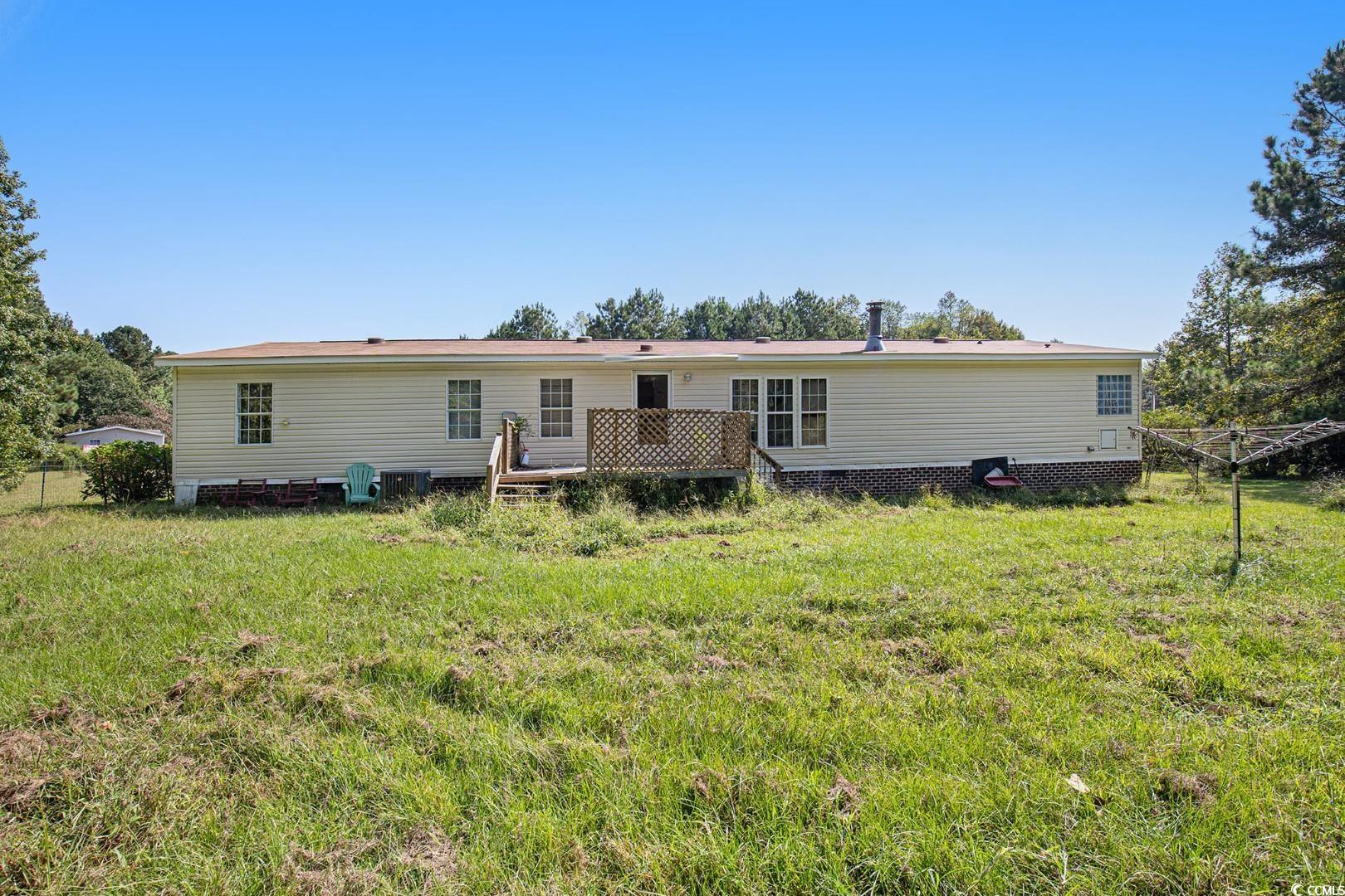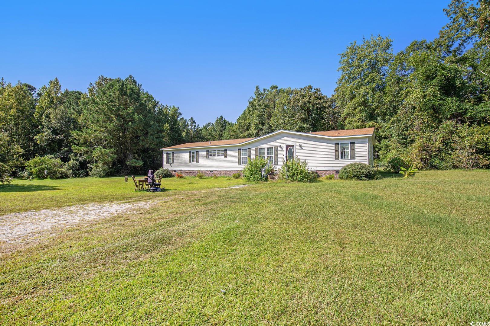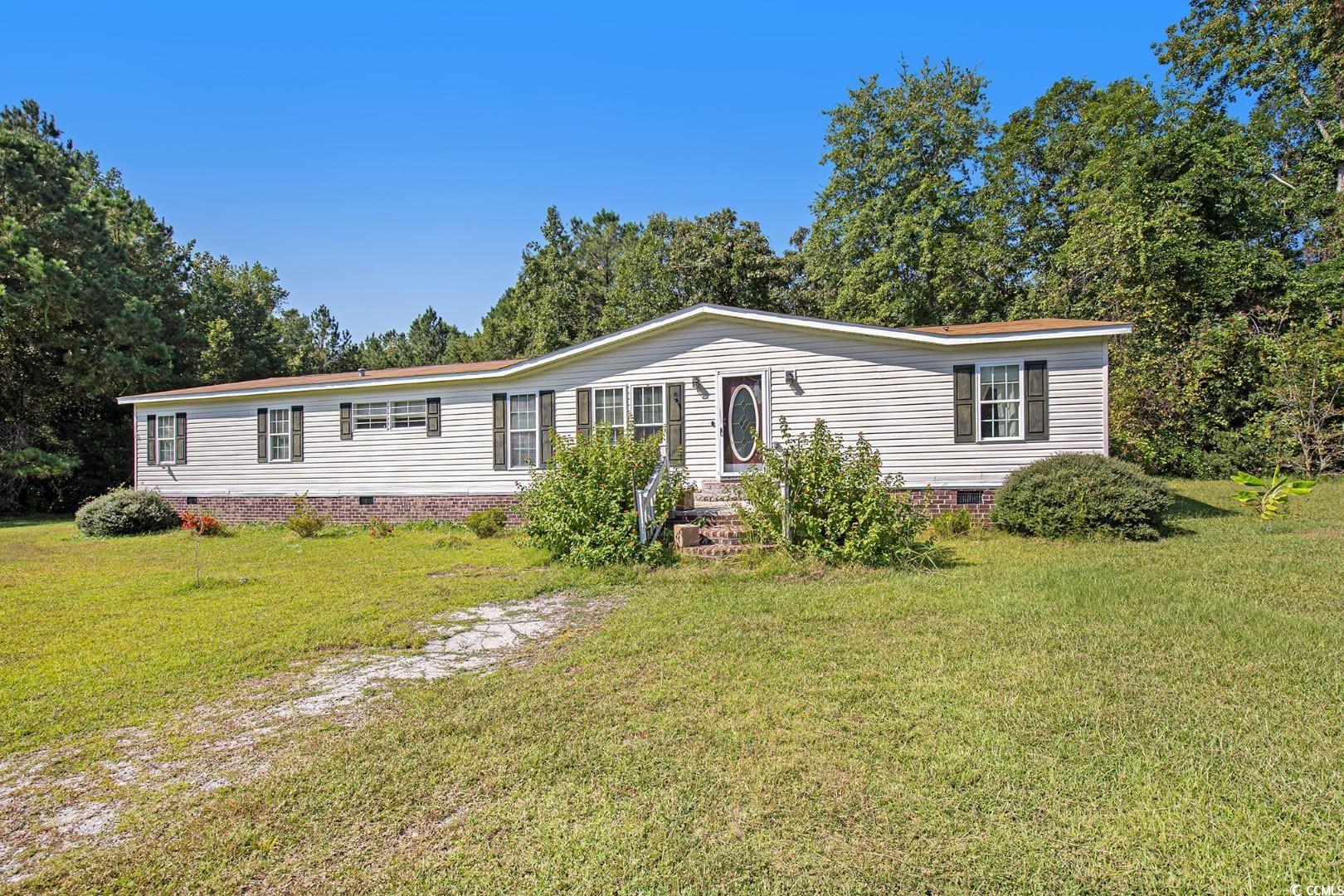 Welcome to your dream home! This stunning 4-bedroom, 2-bathroom residence is set on a generous 1.23-acre lot in Loris, offering the perfect blend of peace, privacy, and freedom with no HOA restrictions. As you arrive, you'll be greeted by a charming front porch that invites you to relax and enjoy the outdoors. Step inside to discover a spacious living area, ideal for entertaining family and friends. The fully equipped kitchen is designed for the avid cook, featuring ample countertop and cabinet space to meet all your culinary needs. Adjacent to the kitchen, the cozy dining area boasts a charming fireplace, creating an inviting atmosphere for gatherings and special occasions. Your master bedroom is a true sanctuary, showcasing generous proportions and a large walk-in closet. The master bathroom is designed for relaxation, featuring a soothing garden tub and a luxurious walk-in shower. The additional three bedrooms also provide ample space for personal touches and furniture, ensuring everyone has their own comfortable retreat. The guest bathroom offers a convenient shower-tub combo, complete with a stylish tiled shower. This home also features a laundry area equipped with built-in cabinets, providing practical storage solutions for your convenience. Step out onto the rear porch, where you can soak in the serene wooded views, an ideal space for enjoying morning coffee or hosting outdoor activities with friends and family. Recent updates, including a new roof (2022), LVP flooring (2024), and a modern HVAC system (2024). Perfect for those seeking a forever home or a cozy vacation retreat, this property offers everything you need to create lasting memories. Don't miss the opportunity to make this beautiful residence yours, schedule your showing today and experience all that this remarkable home has to offer!