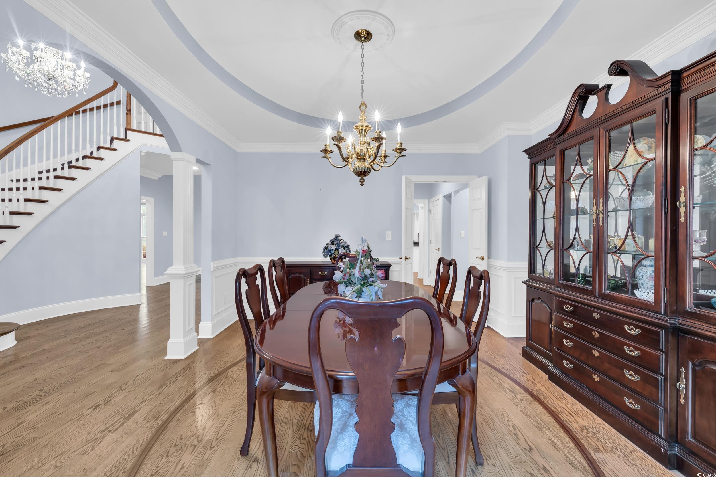 Elegant 4BR/4.5BA all-brick home in Plantation Point on a 0.81-acre cul-de-sac waterview lot. Grand foyer with crystal chandelier opens to the living room with floor-to-ceiling windows overlooking "Birdfield Lake", and in-laid picture-frame wood flooring. Formal dining features tray ceiling, judges panels, and inlaid wood. Stunning 2025 kitchen remodel boasts all-wood cabinets with soft-close doors and drawers, granite countertops, glass tile backsplash, farmhouse sink, double oven, and stainless steel appliances. Spacious main-level primary suite with tray ceiling, water views, oversized primary shower with multiple shower-heads, and a spa-like bath with jacuzzi tub. Laundry room includes a utility sink and fold-down ironing board for convenience. Upstairs offers generously sized bedrooms and a cedar-lined hall closet. New roof, gutters, and leaf filter system installed in 2024, with a 50-year "gold" warranty. Marine-certified bulkhead retaining wall, rear porch, irrigation, landscape lighting, and 3-car side-load garage.