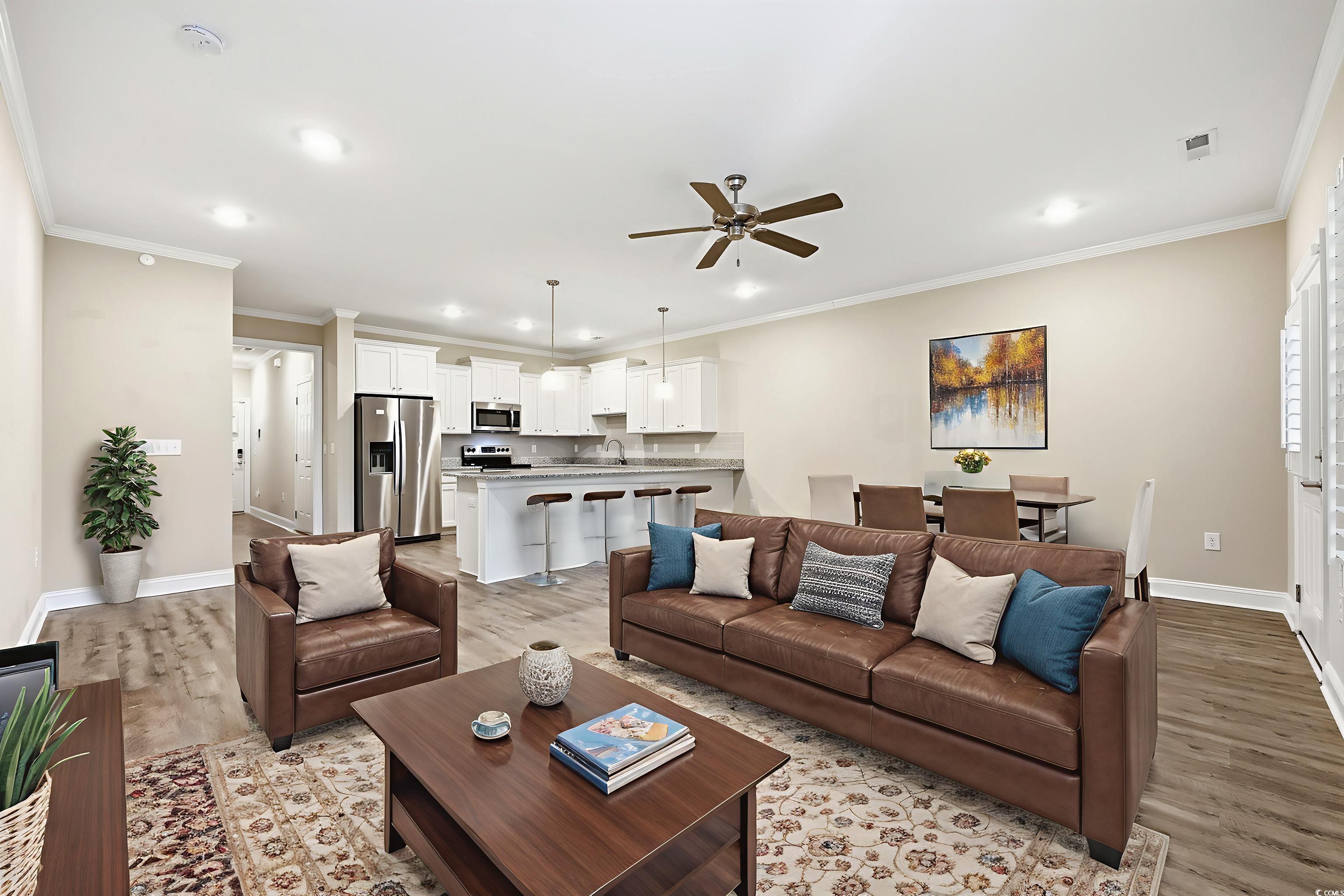 Enjoy golf course living in this well-maintained townhome located in the Arrowhead Golf Course community, where you can wake up to peaceful views, unwind on your rear porches, and enjoy a low-maintenance lifestyle just minutes from shopping, dining, and everyday conveniences. The first floor features LVP flooring throughout and an open, welcoming layout, with a kitchen equipped with granite countertops, a tile backsplash, stainless steel appliances, and a bar area that opens to the living space, along with a convenient half bath on the main level. Upstairs, two guest bedrooms are positioned at the front of the home, while the spacious primary suite is tucked away at the rear, offering beautiful golf course views and access to a private porch, as well as a walk-in closet, double vanity sinks, a soaking tub, and a separate stand-up shower. Additional features include plantation shutters on all windows, two rear porches for indoor-outdoor living with Eze-Breeze windows, an extended patio overlooking the golf course, and a single-car garage with built-in storage racks. Schedule your showing today!