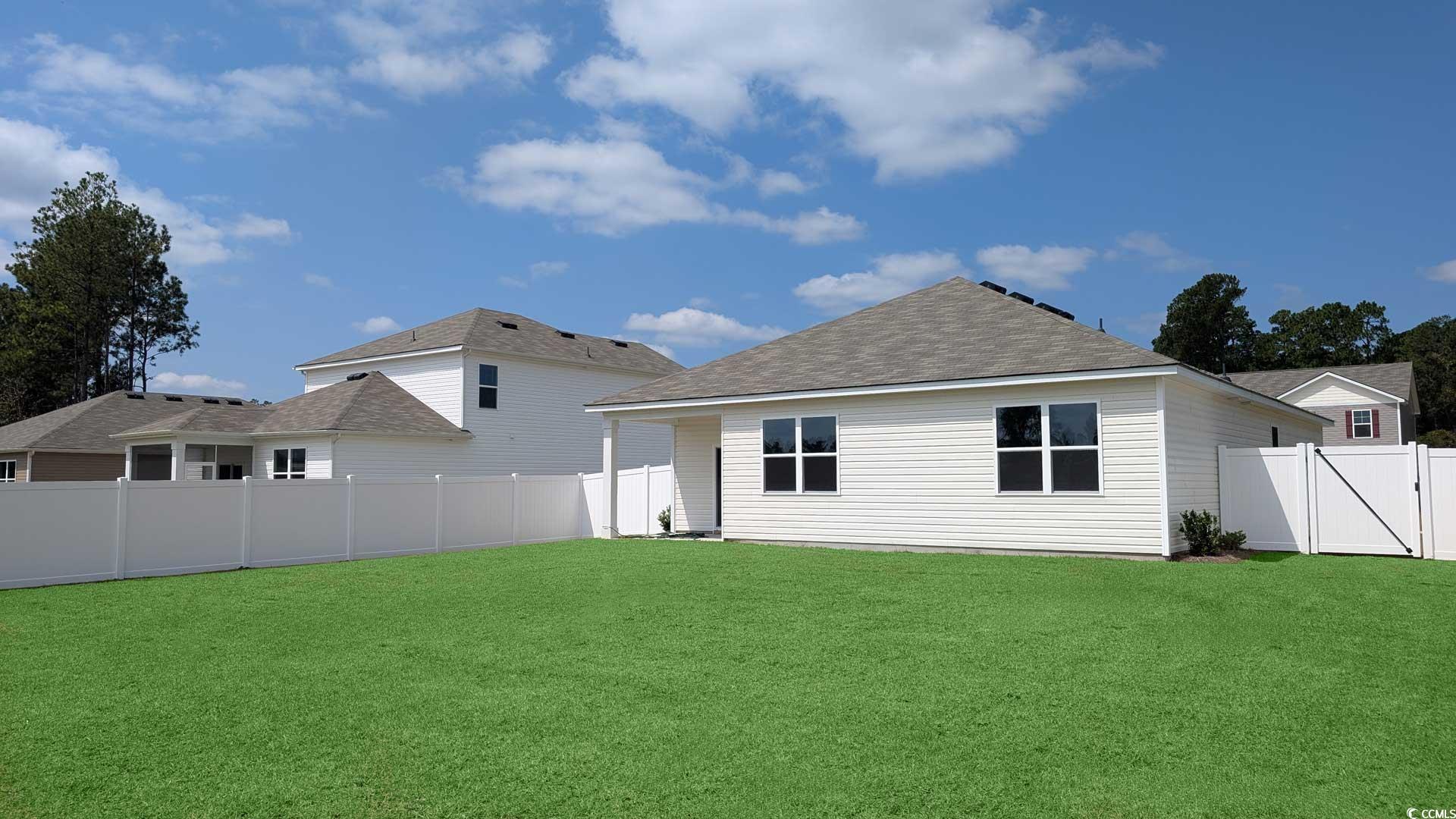Our Cali plan is the perfect one level home with a beautiful, open concept living area for entertaining. The kitchen features granite countertops, oversized island, 36" cabinets, walk-in pantry, and stainless appliances including a side by side refrigerator. The large owner's suite is tucked away at the back of the home, separated from the other bedrooms, with double vanity, linen closet and 5' walk-in shower in the private master bath. Enjoy the coastal air on the spacious covered rear porch adding additional outdoor living space. 6 ft. white privacy fence for added privacy. This is America's Smart Home! Each of our homes comes with an industry leading smart home technology package that will allow you to control the thermostat, front door light and lock, and video doorbell from your smartphone or with voice commands to Alexa. *Photos are of a similar Cali home. (Home and community information, including pricing, included features, terms, availability and amenities, are subject to change prior to sale at any time without notice or obligation. Square footages are approximate. Pictures, photographs, colors, features, and sizes are for illustration purposes only and will vary from the homes as built. Equal housing opportunity builder.)