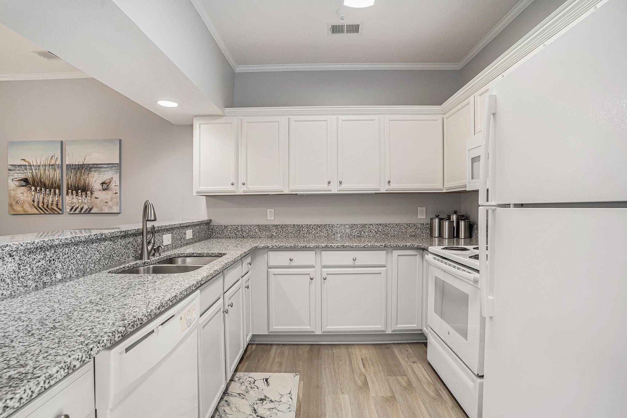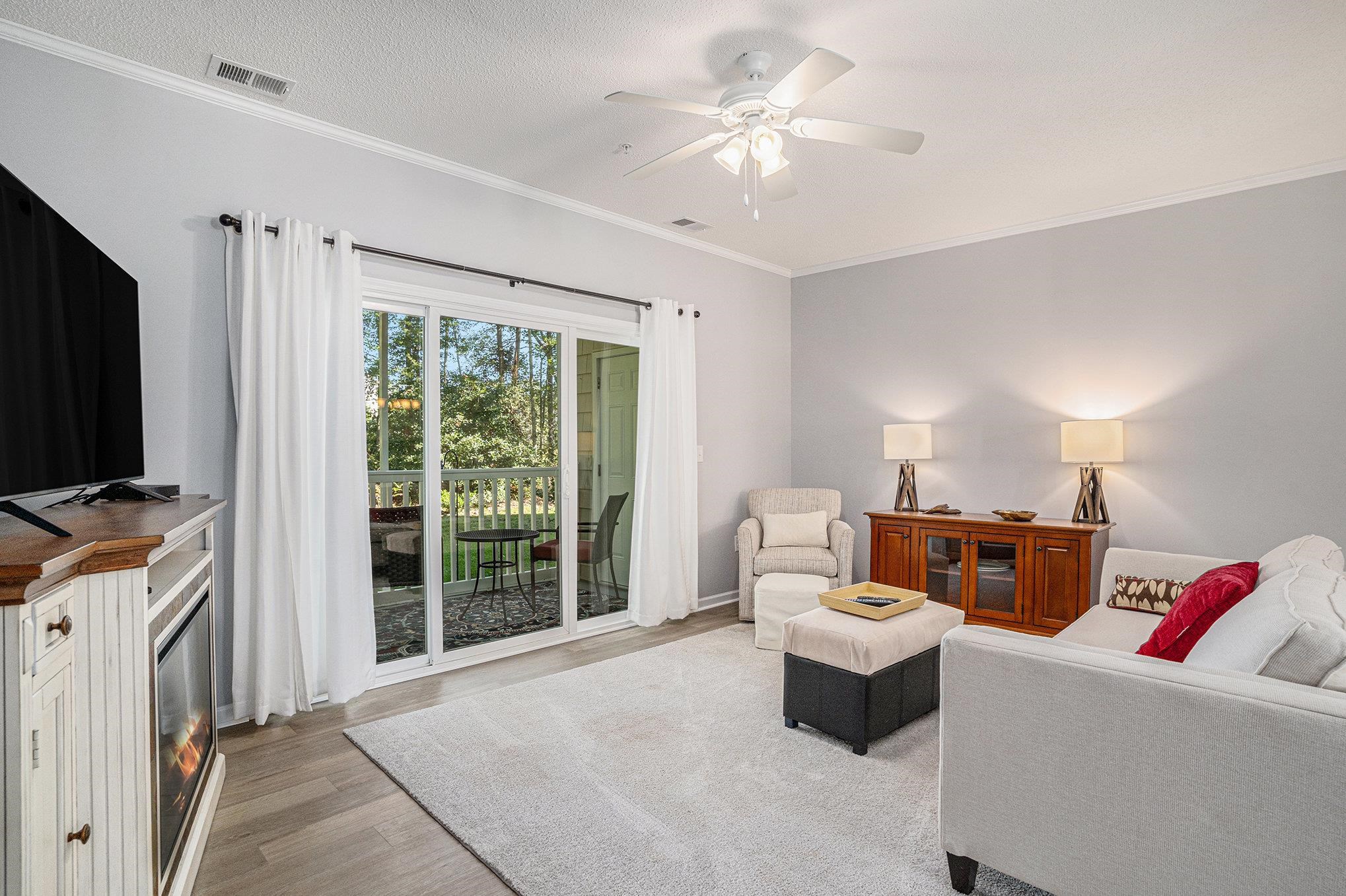 ***OPEN HOUSE Saturday February 14th 1-4pm*** Surrounded by mature trees yet minutes from the beach, this first-floor end unit offers easy, low-maintenance living in a peaceful community. The open layout features beautiful granite countertops, an extended backsplash, crown molding, and seamless LVP flooring throughout. Offered fully furnished with high-quality, modern furnishings—including a new mattress in the primary suite—this home is truly move-in ready. Enjoy a cozy fireplace, a screened-in porch with tranquil forest views and extra storage, and a spacious primary suite with double sinks. Ideal for full-time living or a second home, conveniently located near Little River waterfront, Cherry Grove Beach, Sunset Beach, golf courses, favorite restaurants, and shopping.