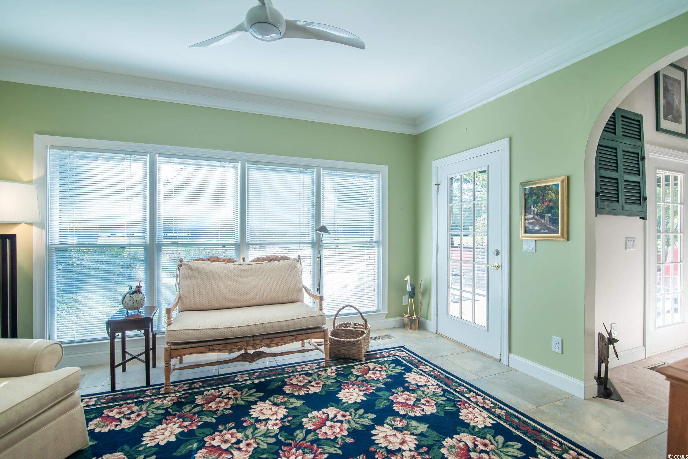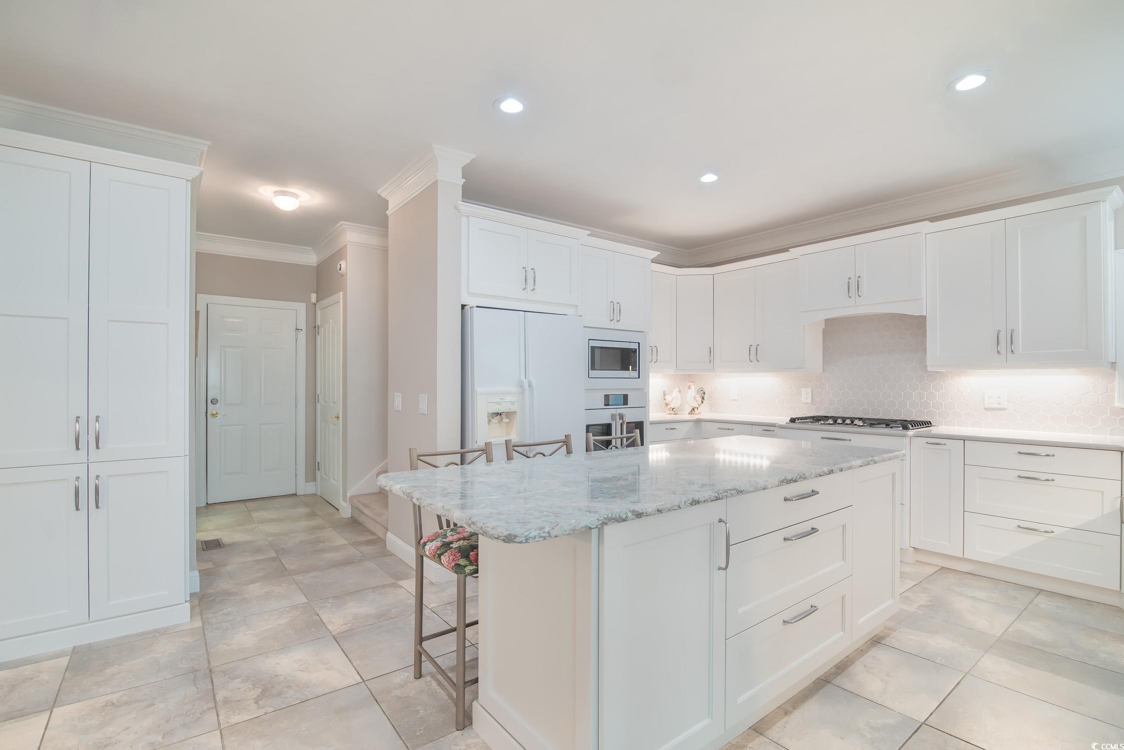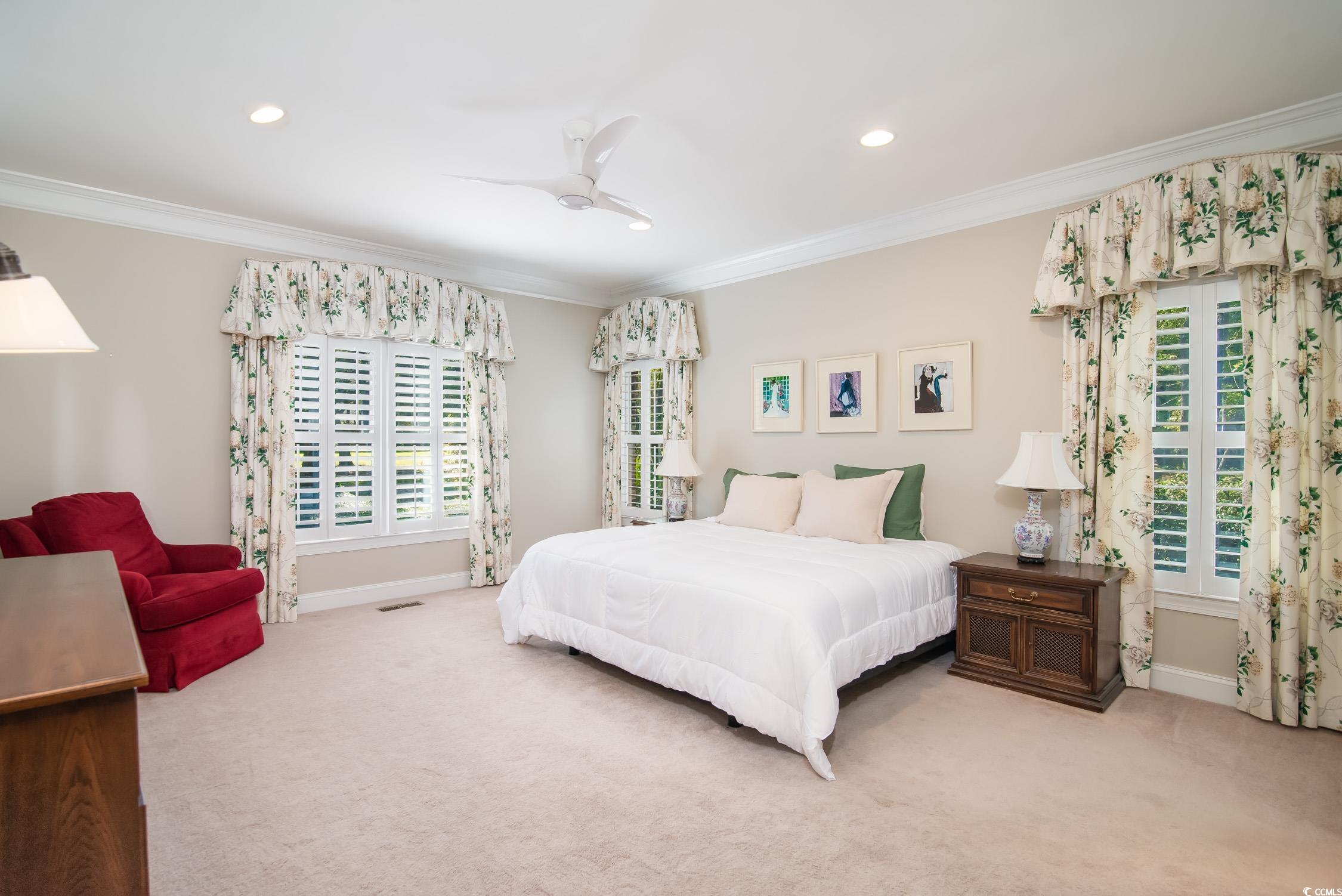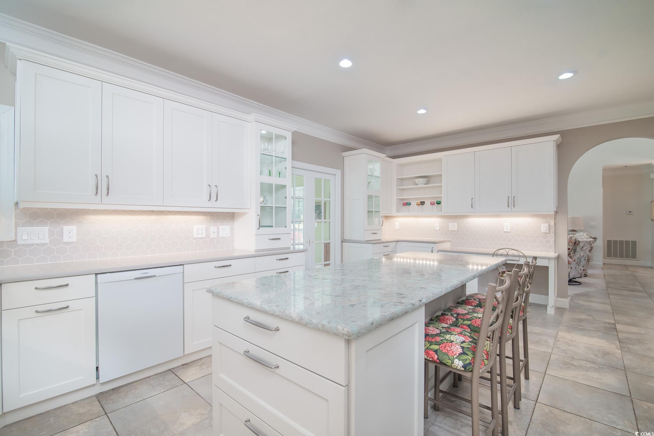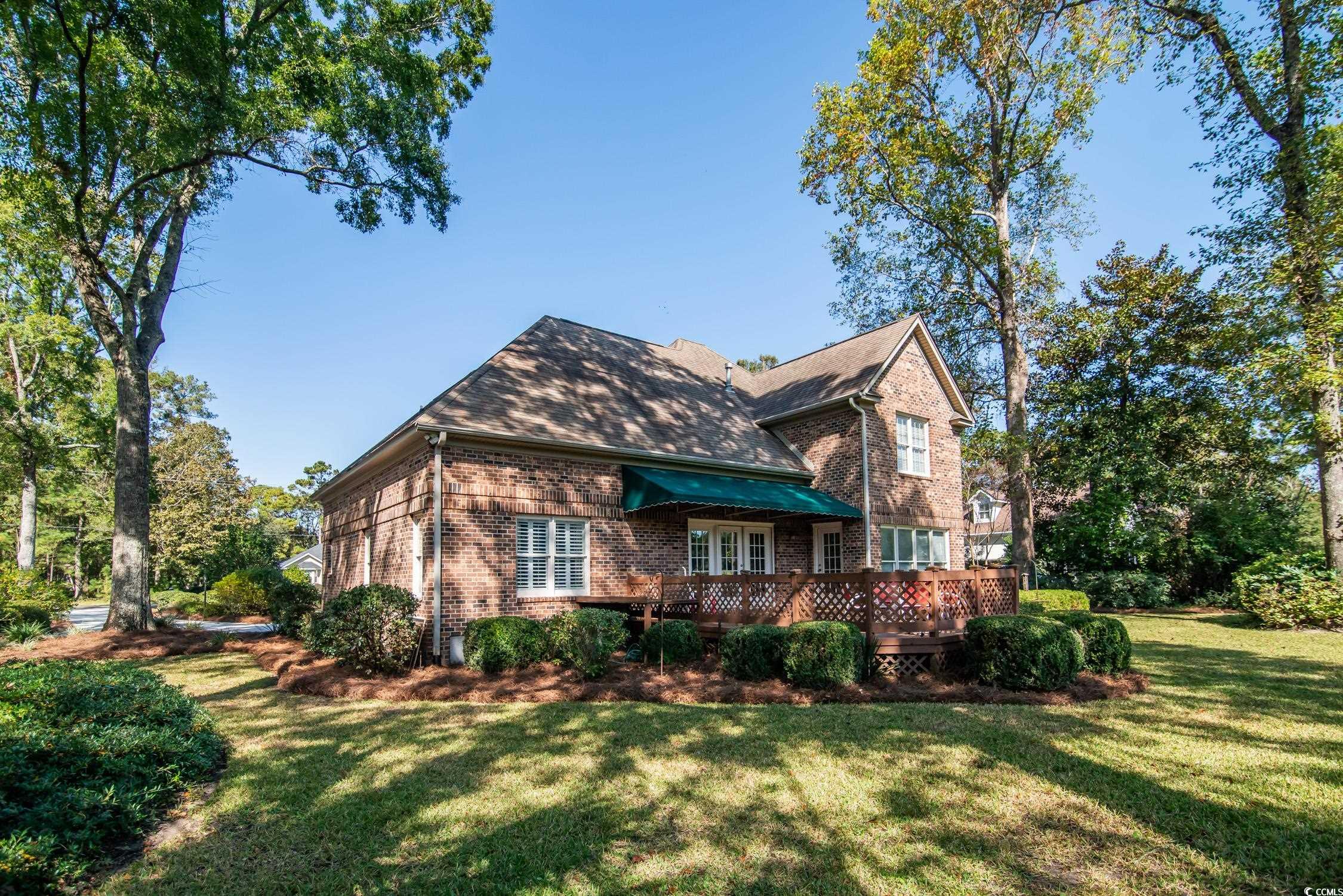 Newly renovated kitchen!! The 15 x 22 foot kitchen: gas stove, desk area, extra-large walk-in pantry, and loads of counter space. This charming all-brick home in the heart of Pawleys Island offers curb appeal, character, and room to make it your own. Entering the tiled foyer is so inviting to view the backyard through the glass doors in the living room. The master bedroom on the main floor is very spacious, with a large bath, jetted tub, walk-in shower, and a walk-in closet. The sitting room/sunroom is separated from the kitchen with pocket doors. Upstairs is a large bedroom over the garage with a full bath and two walk-in closets. There are two more bedrooms, both sharing one large hall bath. The sitting area leads off onto a beautiful deck overlooking a pond and the 14th green of Litchfield Country Club. Such a private setting and lovely landscaped yard with a sprinkler system is a gardener's dream. The crawl space is encapsulated. The Litchfield Country Club has a semi-private golf membership available for golf lovers! A convenient location, a golf cart ride to Litchfield Beach, a short distance to all the schools, and many other challenging golf courses too!
