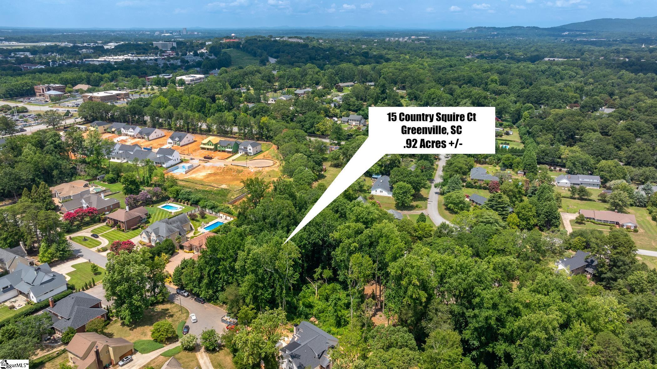 Premium +/- .92 acre cul-de-sac lot that's right by the medical complexes on Patewood and Roper Mountain Ext! Convenient to downtown & Eastside Greenville, interstates, and an array of shopping and dining, 15 Country Squire Ct is a buildable wooded lot in an established one street community with no HOA. Public water, sewer, and trash, with all utilities ready to be tapped into. Isn't it time to build a home that's uniquely you? Drive by and you will see why this is such a coveted location!