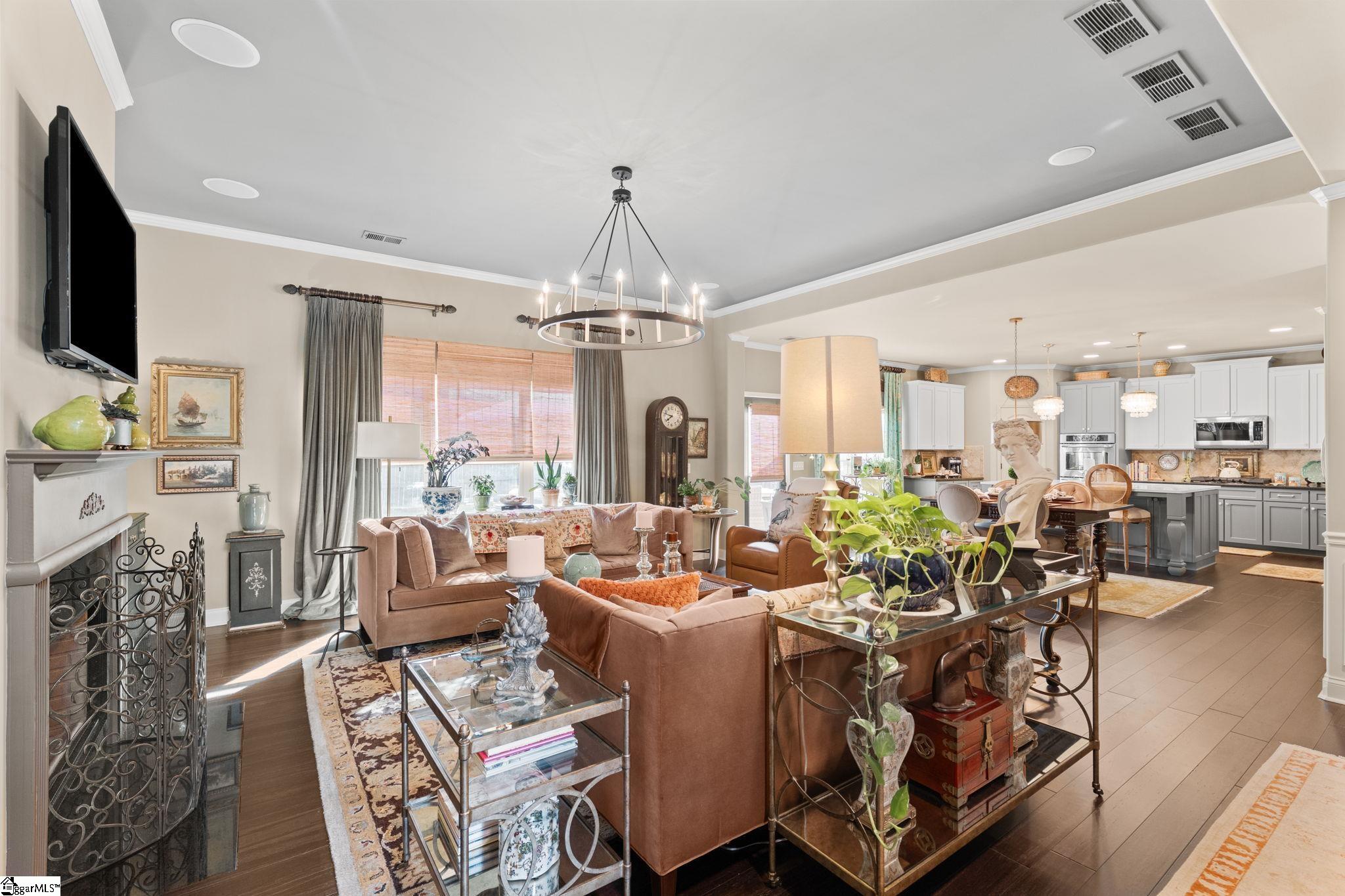 **Join us for an OPEN HOUSE Saturday 3/28 from 12-2** Located in Simpsonville with convenient access to the Five Forks area, this home offers a quiet, established neighborhood feel just minutes from dining, shopping and everyday conveniences. Enjoy being close to downtown Simpsonville, local parks and outdoor recreation, with downtown Greenville just a short drive away. The home has been thoughtfully updated and well maintained, with all new flooring and a full interior repaint completed in 2020. The kitchen was updated in 2023, and the home was freshly repainted again in March 2024. Offering over 4,100 square feet, this 5-bedroom, 3.5-bath home blends timeless charm with classic traditional style and transitional touches, and features spacious living areas, including a theater/entertainment room.