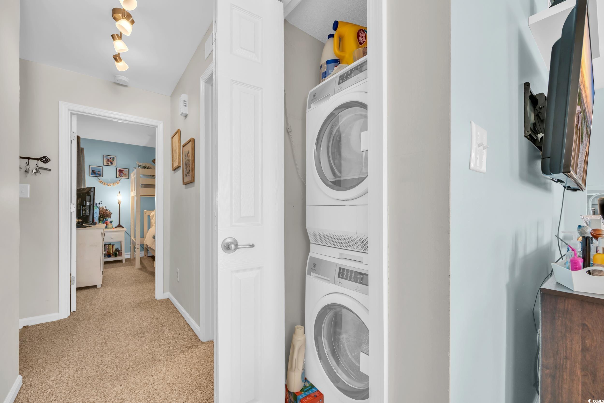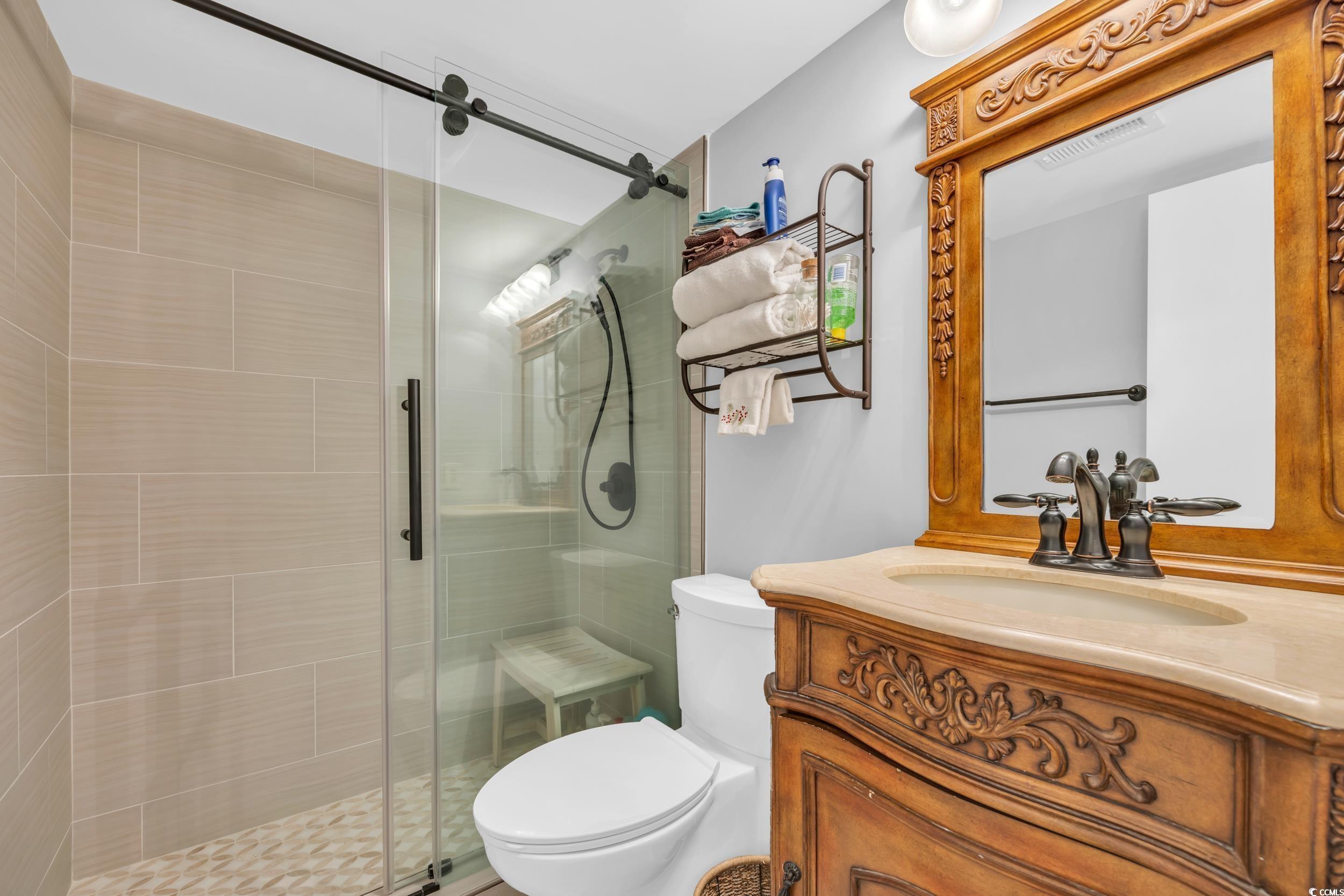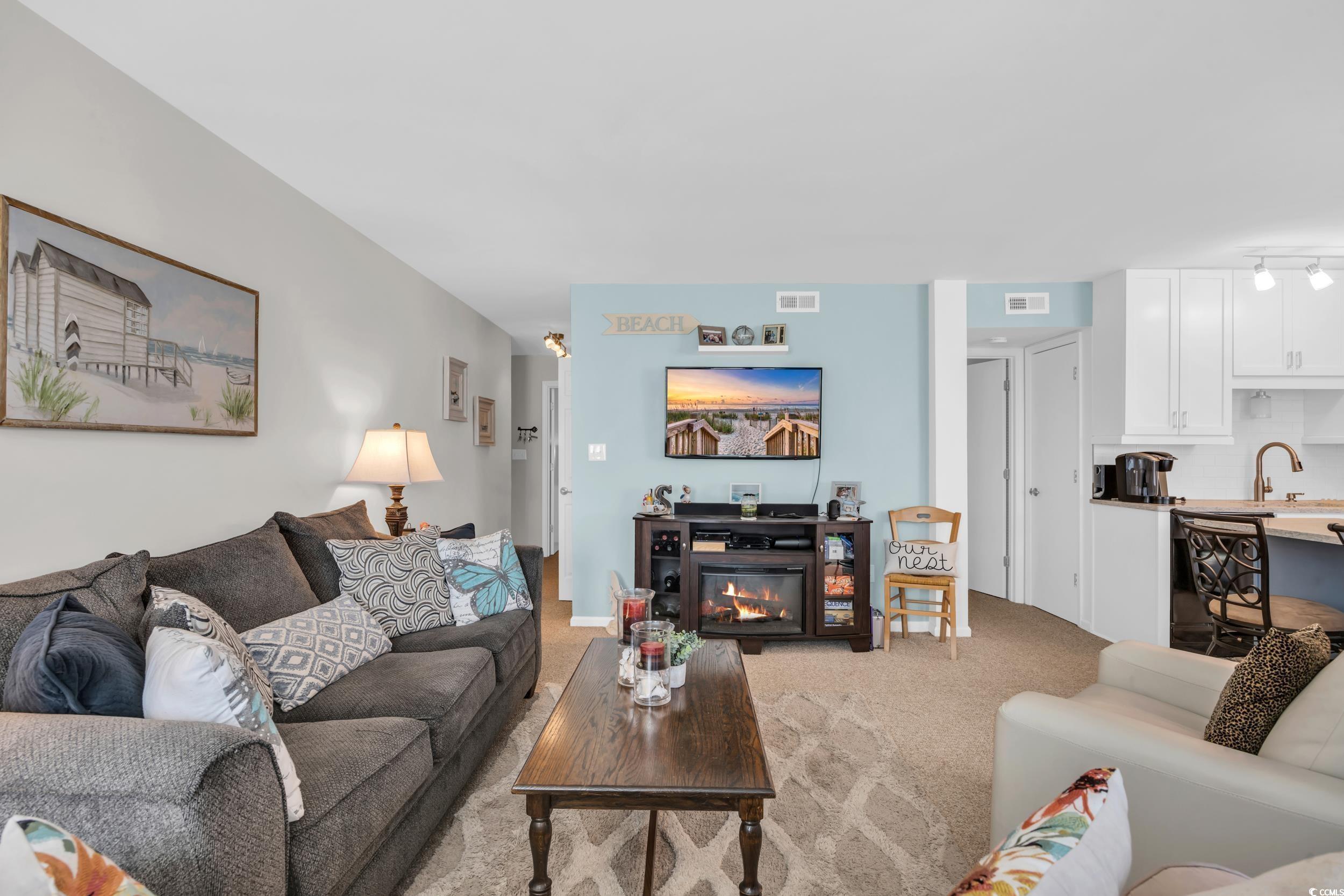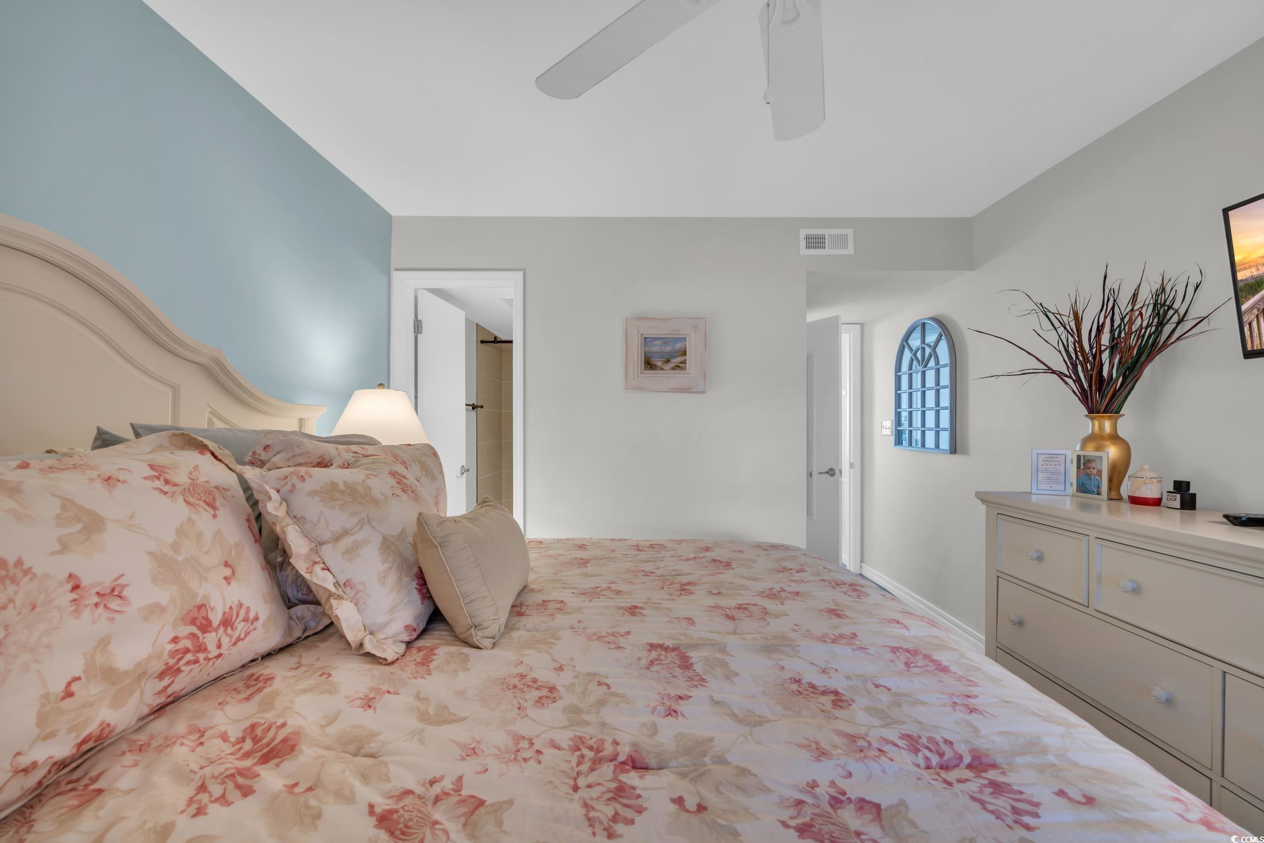Nestled in a peaceful community with spectacular views of Beachwood Golf Course, this second-floor unit at Ocean Greens offers the ultimate coastal living experience. Recently remodeled, this 2-bedroom, 2-bath unit features a fully equipped kitchen with upgraded cabinets, an under the counter wine refrigerator, upgraded quartz countertops and a solid composite sink. This unit has been upgraded in the both the Master and Guest Bathrooms and boast beautifully tiled showers from floor to ceiling. The breakfast bar can be used for casual dining, and has ample storage space. Natural light floods the space, and the screened-in rear porch provides a serene spot to enjoy your morning coffee or an evening cocktail. Conveniently located near the pool, the building offers easy access for a refreshing dip on sunny afternoons. In addition to the pool, Ocean Greens also features a fantastic grilling area, perfect for hosting BBQs with family and friends. The beach is just a quick 5-minute drive away, offering endless days of sun, sand, and sea. Enjoy a variety of nearby restaurants serving fresh seafood and coastal dishes. Stay active at the nearby North Myrtle Beach J.B. Floyd Recreation Center, with pickleball, tennis, basketball, baseball, soccer fields, a track, and a playground for kids. Owners are allowed to have a golf cart, making trips to the beach even easier. This unit also includes designated parking beneath the building, reserved exclusively for owners. Whether you're seeking a long-term investment or a vacation rental, Ocean Greens offers flexibility for both. Don't miss your opportunity to make Unit E-302 your coastal retreat. Schedule a viewing today and turn your beachside dreams into reality!