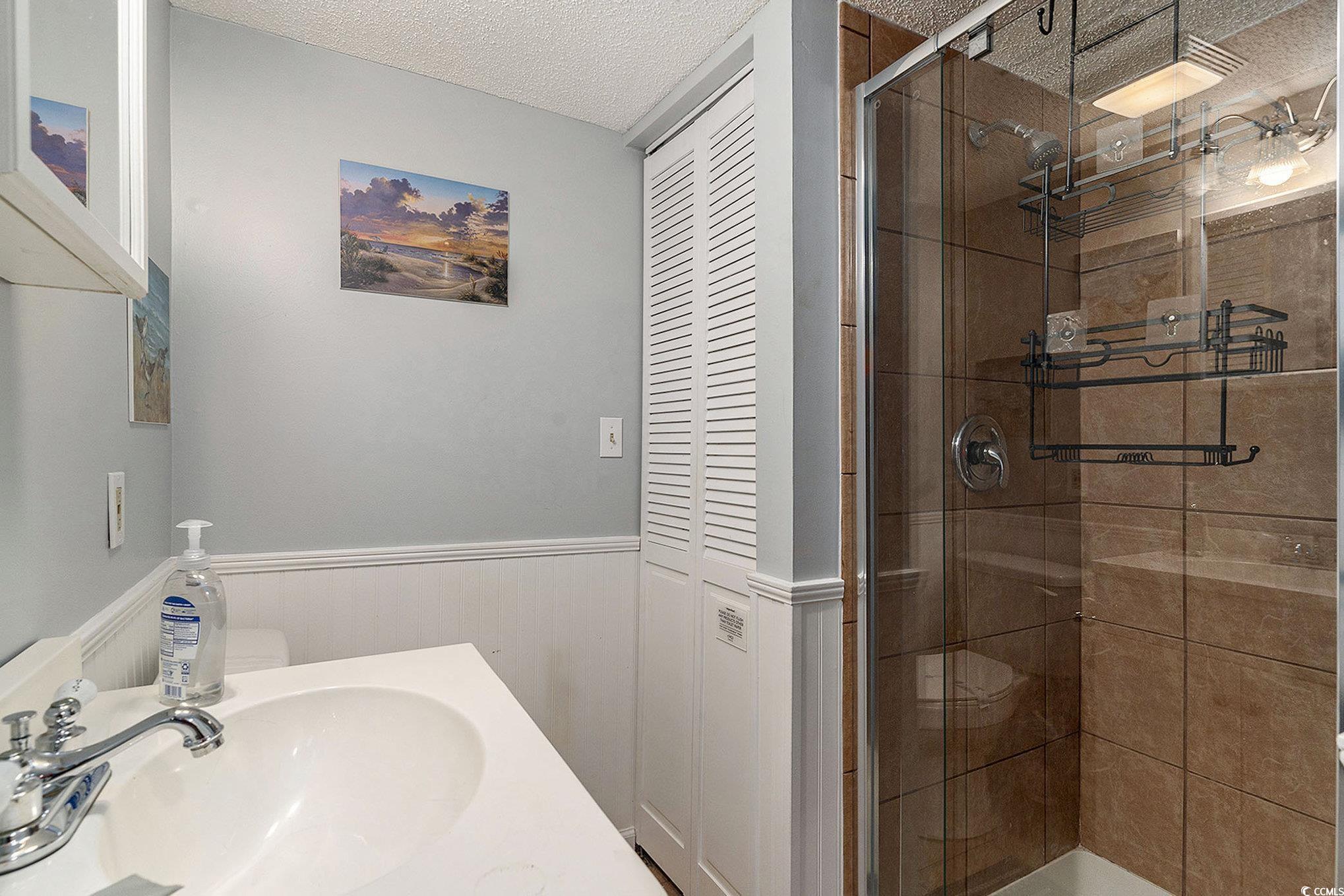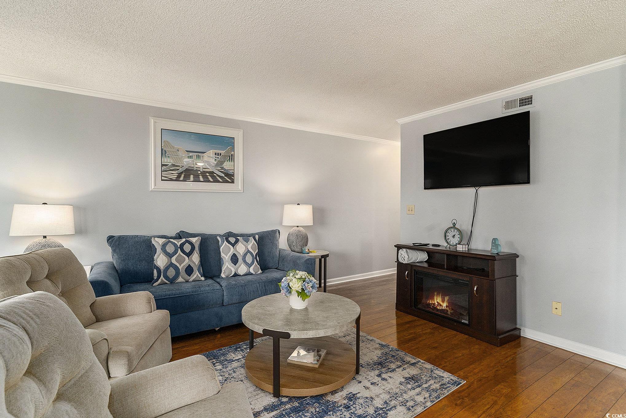 Welcome to the perfect blend of coastal comfort and investment opportunity in the heart of North Myrtle Beach! This beautifully maintained 2-bedroom, 2-bathroom end-unit condo offers bright, airy living with modern touches and plenty of natural light throughout. Step inside to an open-concept living and dining area that flows seamlessly into the kitchen, featuring stainless steel appliances, a work island, and a breakfast bar—ideal for meal prep or casual dining. The living room opens to a private screened balcony, giving you the perfect spot for morning coffee, evening wine, or simply enjoying the ocean breeze. The spacious primary suite includes ample closet space and direct access to a full bath with tiled walk-in shower. A second bedroom and a guest bath with a tub/shower combo make it perfect for family or visitors. Outdoor living shines here with a screened balcony large enough for comfortable seating and entertaining, seamlessly accessible from both the living and dining rooms. Investment Potential: This condo has a proven track record as a short-term rental, making it not only a fantastic full-time residence or vacation home, but also an income-producing property. Bonus—this building is VA approved, making financing options more accessible for veterans and active-duty buyers. Community perks include a sparkling outdoor pool, covered parking under the building, and a quiet, well-kept setting. All of this, just minutes from Cherry Grove Beach, Main Street shops, dining, and entertainment. Experience the best of coastal living with built-in rental potential—opportunities like this don’t last long! Buyer is responsible for verification.