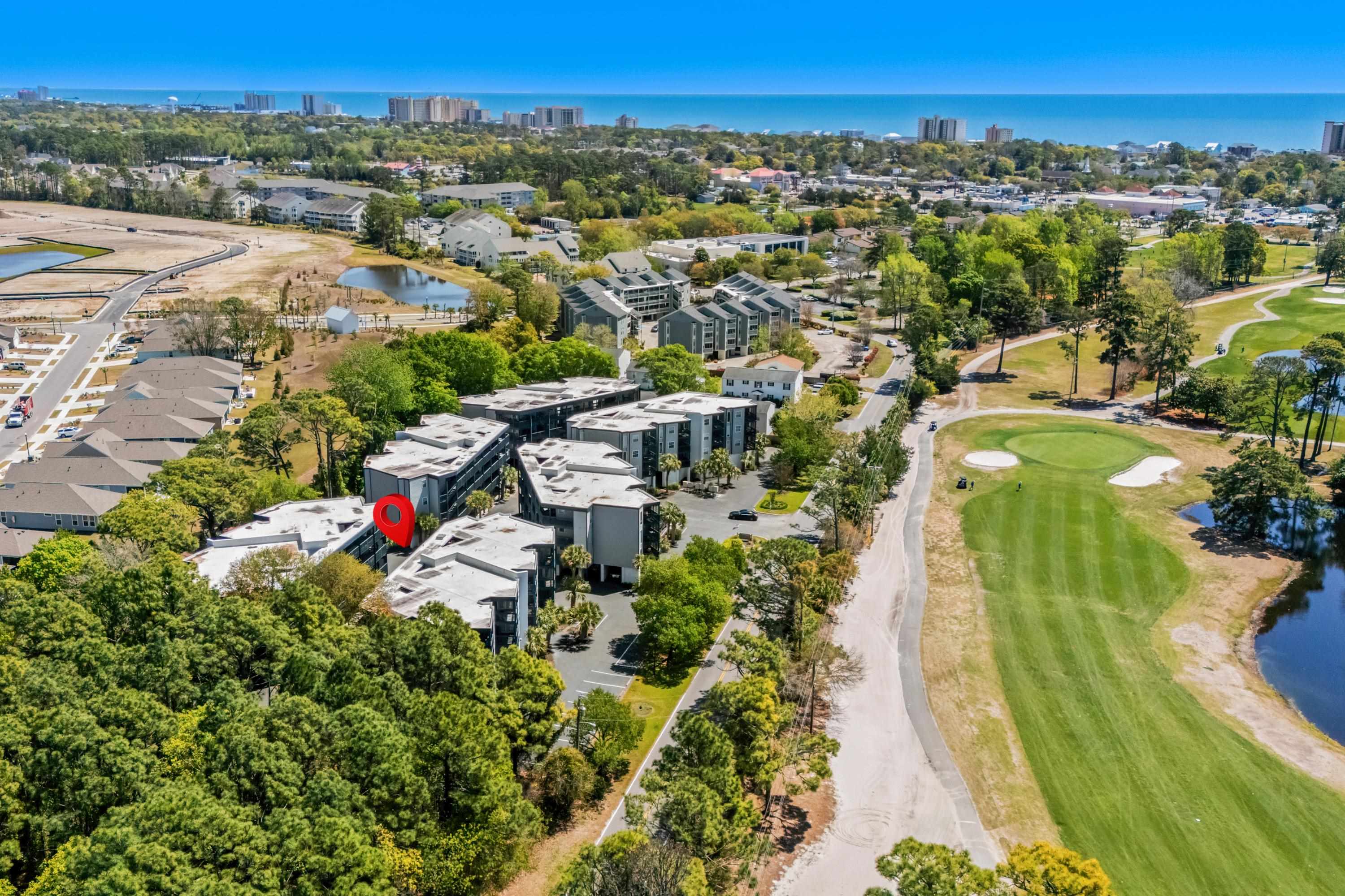 Welcome to your ideal coastal retreat in the highly sought-after Ocean Greens community of North Myrtle Beach. Perched on the top floor, this beautifully updated end unit captures sweeping panoramic views of the Beachwood Golf Course from a private screened-in balcony — the perfect setting for morning coffee or relaxing sunset evenings. As a quiet corner residence, it offers enhanced privacy and abundant natural light that interior units simply can’t match. Just minutes from the beach and the Intracoastal Waterway, and surrounded by exceptional dining, shopping, and entertainment, this home delivers the ultimate blend of lifestyle and convenience. Inside, the hardwood floors create a warm, coastal ambiance while providing easy maintenance. A new electric water heater installed in 2025 adds energy-efficient comfort and peace of mind. The thoughtfully designed split-bedroom layout features two spacious suites, each with its own full bath — ideal for guests, shared living arrangements, or maximizing rental potential. The open-concept living and dining areas are perfect for hosting family and friends. The fully equipped kitchen includes a range, microwave, refrigerator, pantry, breakfast bar, and an assortment of small appliances, everything needed to cook and entertain with ease. Additional highlights include central heating and air conditioning with a smart thermostat, smoke detectors, and the property is being sold fully furnished, making it truly move-in or rental ready. This golf cart-friendly community offers outstanding amenities, including a sparkling outdoor pool conveniently located next to the building, cable TV, high-speed internet, trash and recycling services, and pest control. Residents also enjoy nearby tennis and pickleball courts, as well as soccer and basketball facilities. Pets, motorcycles, and golf carts are welcome, and short-, mid-, and long-term rentals are permitted. Whether you're seeking a primary residence, vacation home, or investment opportunity, this exceptional property checks every box.