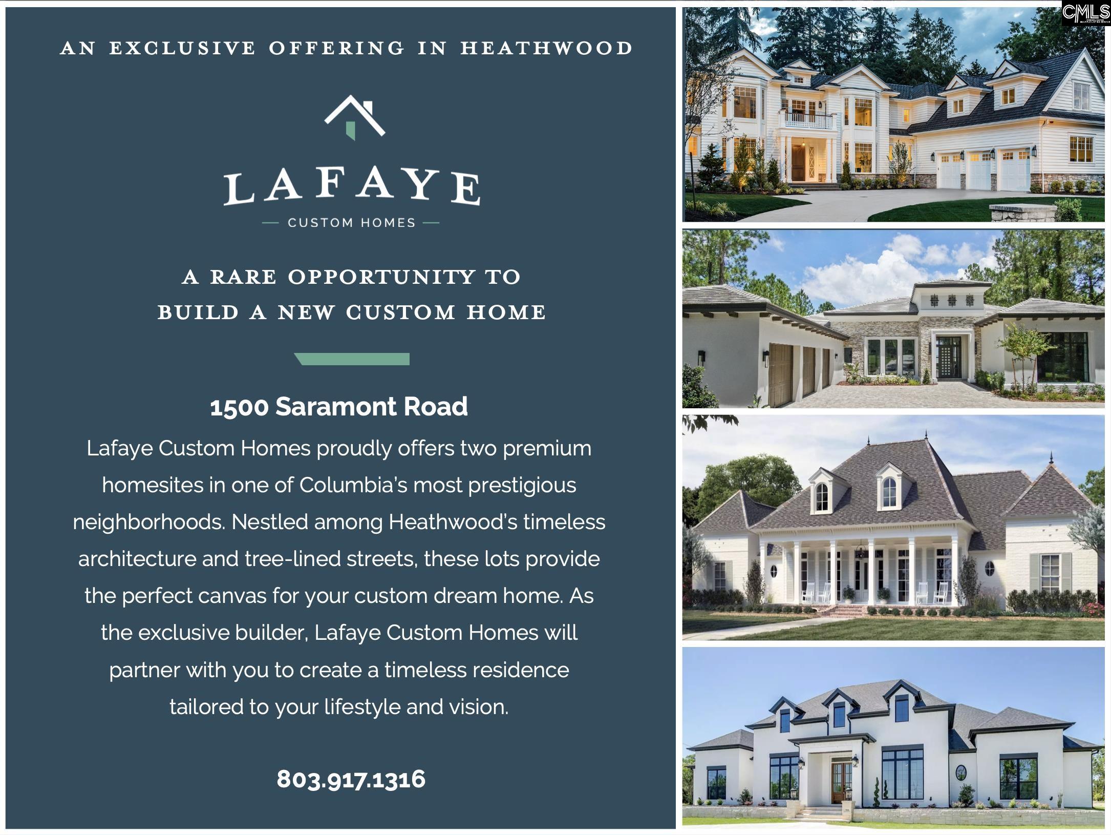 Lafaye Custom Homes proudly offers two premium homesites in one of Columbia’s most prestigious neighborhoods. Nestled among Heathwood’s timeless architecture and tree-lined streets, these lots provide the perfect canvas for your custom dream home. As the exclusive builder, Lafaye Custom Homes will partner with you to create a timeless residence tailored to your lifestyle and vision. Two rare, build-ready lots are available in the prestigious Heathwood neighborhood, offering a fully custom design and build experience with Lafaye Custom Homes, where expert guidance, elevated design, and uncompromising craftsmanship are at the heart of every detail. NOTE: The buyer will purchase the construction ready lot, while in the same transaction contract with Lafaye Custom Homes to build on the lot. Listing for LOT B - new addresses to be assigned by Richland County Disclaimer: CMLS has not reviewed and, therefore, does not endorse vendors who may appear in listings.