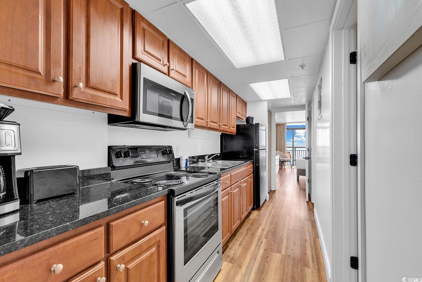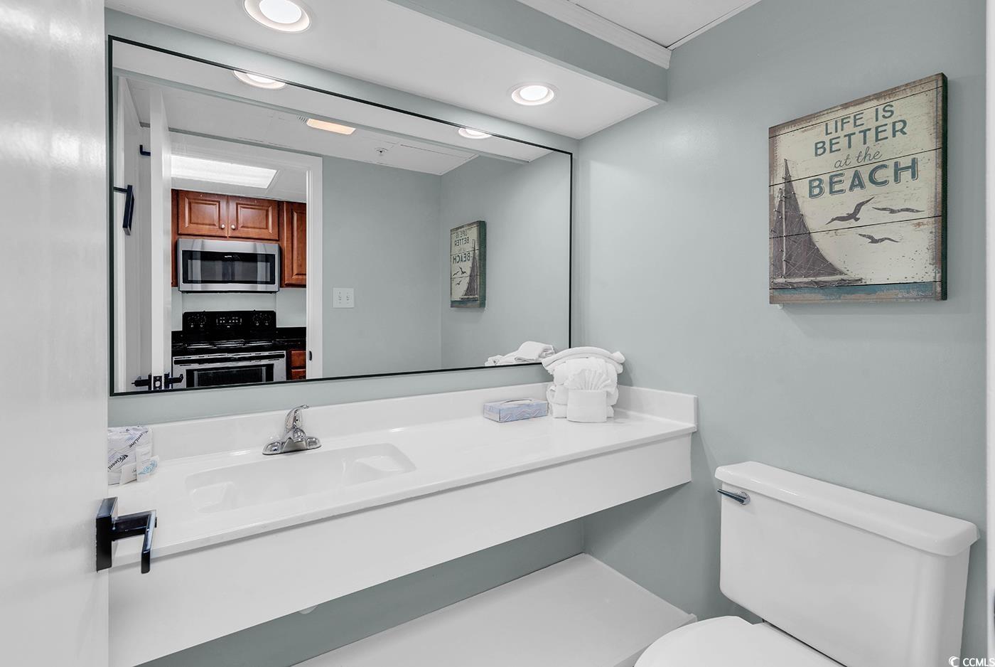 Oceanfront Unit with Incredible Views! Welcome to Unit 1442 at the Landmark Resort — a beautifully updated 1-bedroom, 1.5-bath oceanfront condo offering breathtaking views up and down the coastline from the 14th floor. This turnkey unit features a fully equipped kitchen with full-size stainless steel appliances, including a stove/oven, built-in microwave, and refrigerator. There is plenty of cabinet and counter space, making it perfect for extended stays or rentals. The unit has been thoughtfully redesigned so that you can wake up to stunning ocean views right from your King Size Bed and fall asleep each night to the relaxing sounds of waves just beyond your private balcony. The bathroom features a convenient shower/tub combo with access from both the main toiletry area and the half bath. The Landmark Resort is one of Myrtle Beach’s premier oceanfront destinations, known for its exceptional amenities, including an outdoor water park, indoor and outdoor pools, lazy rivers, hot tubs, kiddie pools, on-site restaurants and bars, a fitness center, game room, gift shop, laundry facilities, snack bars and more. Located in the heart of Myrtle Beach, this condo is just minutes from Family Kingdom Amusement Park, Broadway at the Beach, the Myrtle Beach Sky Wheel, Market Commons, and countless shopping, dining, and entertainment options. Don't forget about multiple golf courses as well. Excellent for a second home or investment property! Don’t miss this opportunity to own a fully furnished, oceanfront condo that’s ready for you or your guests to enjoy — Unit 1442 is waiting for you!