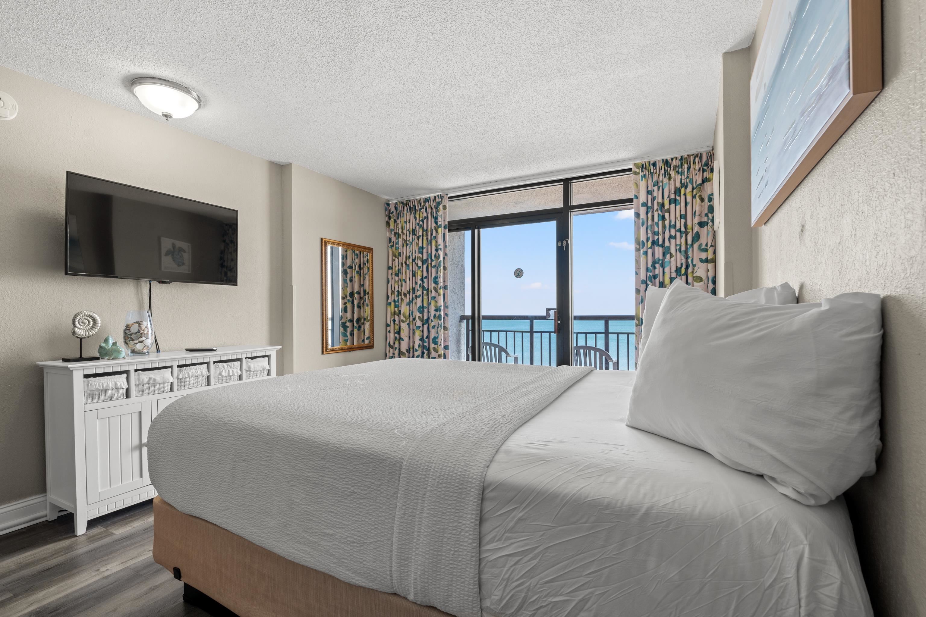 Experience true oceanfront living in this beautifully positioned unit at The Landmark Resort! One of the very few layouts in the building that breaks away from the typical “shotgun” design. Unlike most units where the bedroom is tucked behind the entry, this unique floor plan allows your primary sleeping space to take full advantage of the breathtaking oceanfront setting, offering direct views of the golden sands, rolling waves, and endless Atlantic horizon. Wake up each morning to stunning sunrises and the soothing sound of the ocean right outside your window. This direct oceanfront unit offers both exceptional personal enjoyment and strong investment potential, with impressive rental projections and high guest demand thanks to its rare layout and premier view. The Landmark Resort is known for its outstanding amenities, including multiple indoor and outdoor pools, lazy rivers, hot tubs, a large oceanfront pool deck, onsite waterpark features, fitness center, arcade, onsite dining, Starbucks café, parking garage, and 24-hour front desk service making it a favorite destination for vacationers year-round. Perfectly located in the heart of Myrtle Beach, this property offers unmatched convenience. You’re just minutes from Myrtle Beach International Airport, as well as popular attractions like Broadway at the Beach and Coastal Grand Mall. Plus, you’ll love being within walking distance to restaurants, beach bars, entertainment, and everything that makes Myrtle Beach one of the East Coast’s top vacation destinations. Whether you’re looking for a high-performing rental property, a vacation getaway, or your own piece of oceanfront paradise, this rare and desirable unit at The Landmark Resort is an exceptional opportunity.