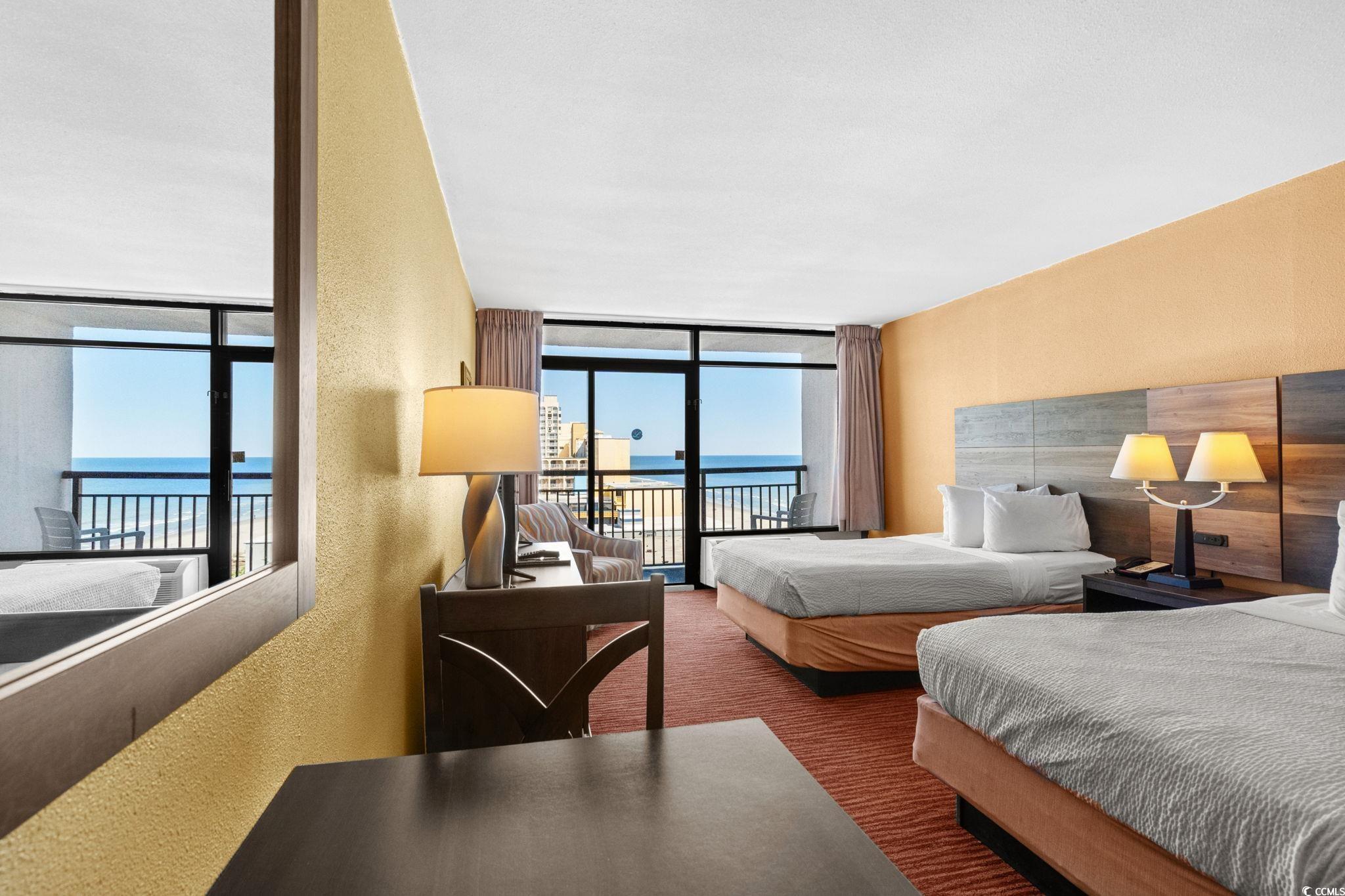 This beautiful condo has one of the best ocean views in Landmark and it is priced to sell. Experience the perfect beach getaway or investment opportunity with this oceanview efficiency condo in the sought-after Landmark Resort & Conference Center. Enjoy unbeatable amenities, including the H2Oasis waterpark, an indoor heated pool, lazy river and hot tubs, oceanfront heated pool and hot tub, and a seasonal pool bar. The resort also offers a fitness center, game room, laundry room, on-site restaurants and snack bars, a conference center, and an enclosed skywalk connecting the waterpark and parking garage to the resort. The condo features two double beds, a refrigerator and microwave for convenience, and a private balcony with great ocean views—perfect for your morning coffee or evening cocktails. The convenience of the convention center for your weddings, reunions, and meetings is a big bonus! Prime location near Myrtle Beach’s top attractions, dining, and entertainment, with easy airport access. Whether you're looking for a personal escape or a smart rental investment, this Landmark Resort condo has it all!