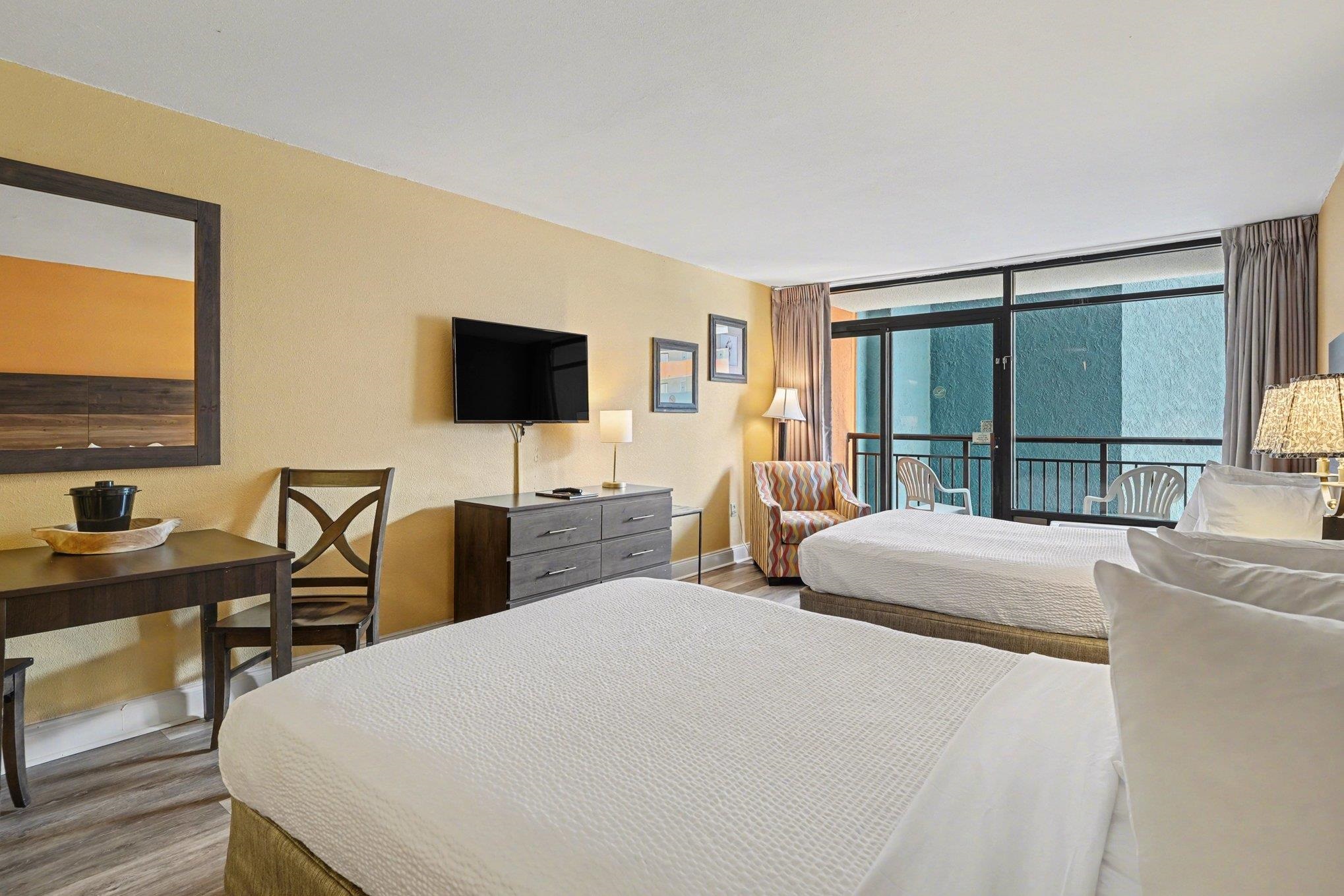 Welcome to the Landmark Resort, and this well-appointed efficiency unit located in one of Myrtle Beach’s most amenity-rich oceanfront resorts. Whether you're searching for a vacation getaway, rental investment, or combination of both, this unit offers comfort, convenience, and access to the best of the Grand Strand. Inside, the efficiency layout is designed to maximize space and functionality. The unit features two beds, a dining area, and durable flooring throughout, creating a comfortable environment for relaxing after a day at the beach. A private balcony provides beautiful views of the surrounding resort, offering the perfect place to enjoy your morning coffee or unwind in the evening. The Landmark Resort is known for its incredible list of amenities that keep guests returning year after year. Owners and guests enjoy multiple indoor and outdoor pools, a lazy river, hot tubs, and one of Myrtle Beach’s most exciting on-site waterparks with large slides and splash areas. Additional amenities include restaurants, an arcade, fitness center, and direct beach access. Located on the south end of Myrtle Beach, the resort is just minutes from the Myrtle Beach International Airport, the Myrtle Beach Boardwalk, Market Common, golf courses, shopping, dining, and entertainment. Whether you're looking for a turn-key vacation property or a rental opportunity, this efficiency unit at Landmark Resort places you right in the heart of Myrtle Beach’s oceanfront lifestyle. Buyer is responsible for verification