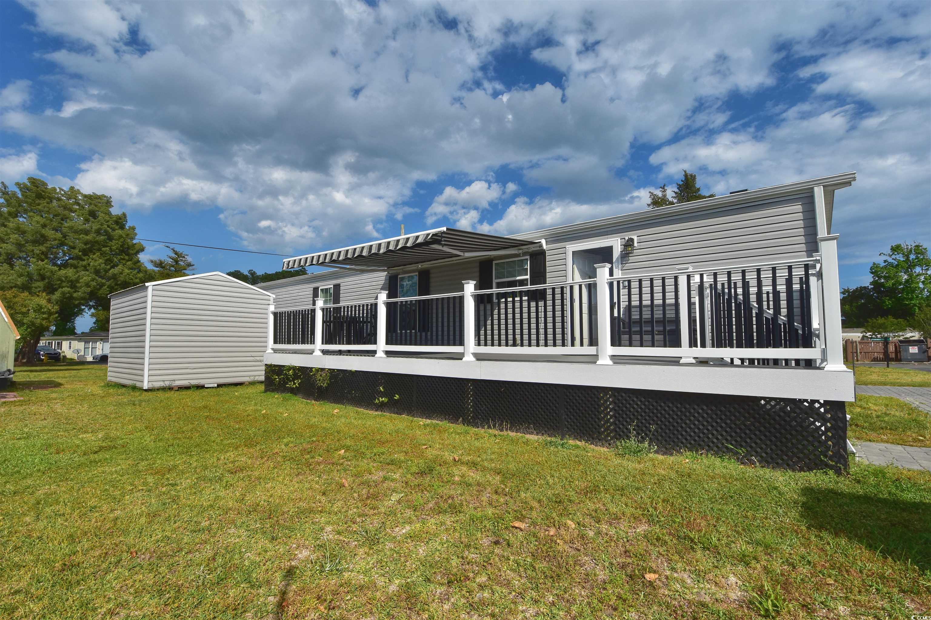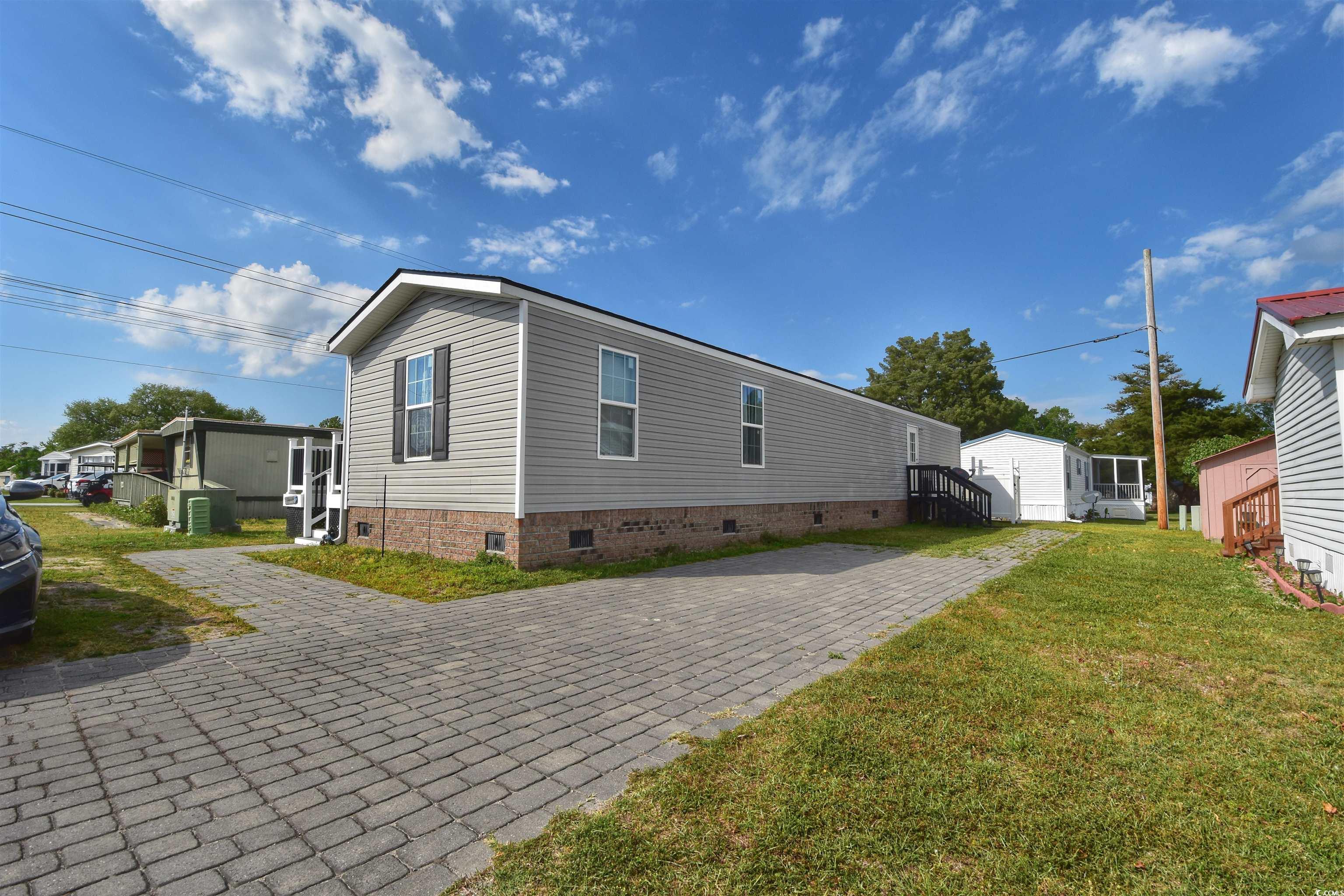 Amazing location!!!!! Located right in the heart of North Myrtle Beach with a golf cart ride to the beach, shopping, restaurants, schools and Main Street. This home features a 2 year old roof that is a with a transferable warranty everything else including unit was built 2017. Unique to this property is a brick footing and the unit is strapped down making it more secure. Some of the upgrades included are an electric awning over a large trex decking, shed, brick foundation, brick paver driveway, full size washer/dryer and an outdoor shower. Do not miss out on this 3 bedroom 2 bath home furnished in the community of Waterway View right off 17 in North Myrtle Beach off the intracoastal waterway. Master bedroom has its own private bath. Large living room attached to an eat in kitchen, lots of windows for bright and airy feel. Vinyl floors thru out, no carpet anywhere. Included in your lot fee is water, sewer, trash and lawn. Perfect home for a full time residence or your beach vacation getaway! Management says pools is coming for the upcoming season