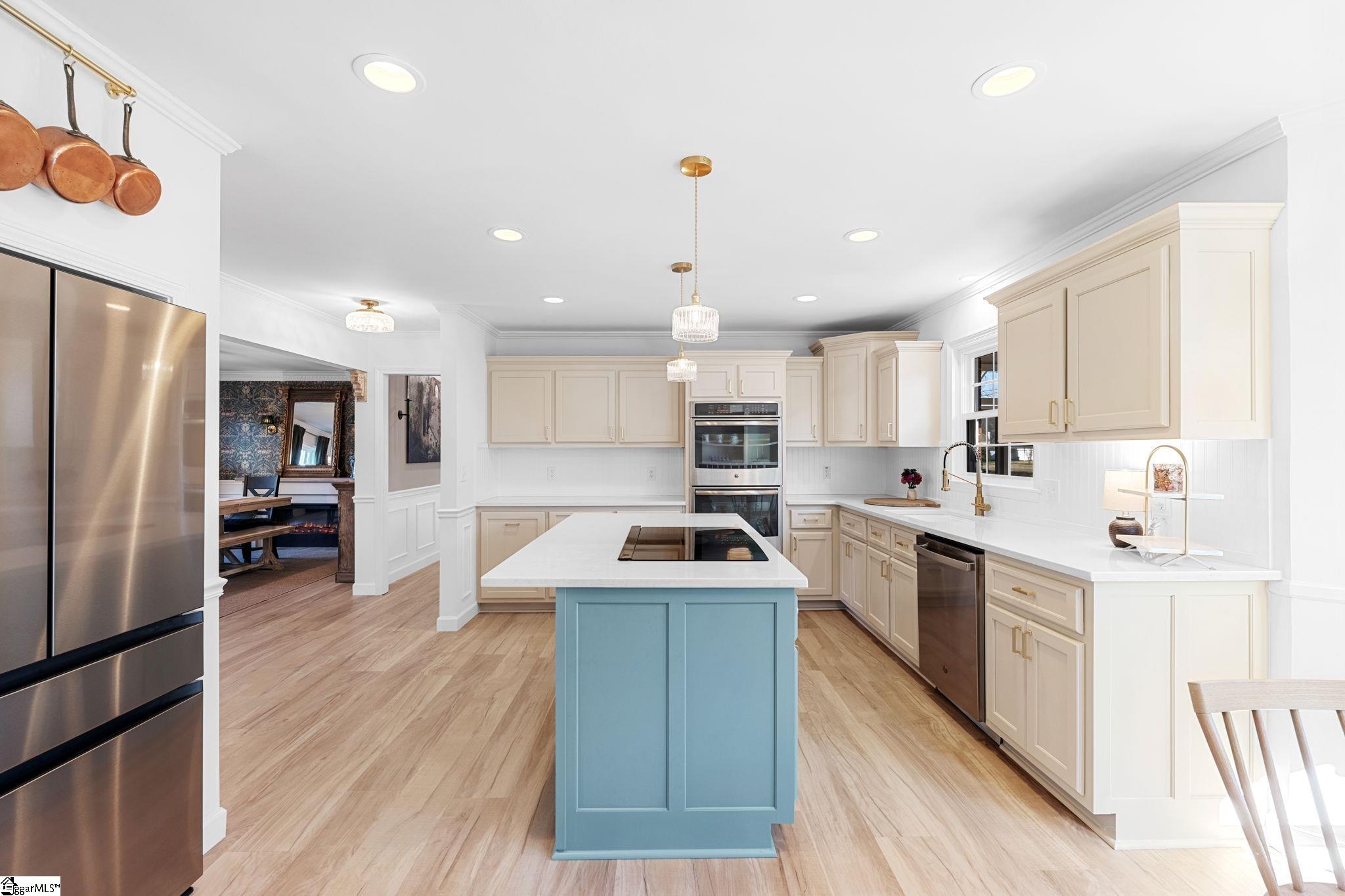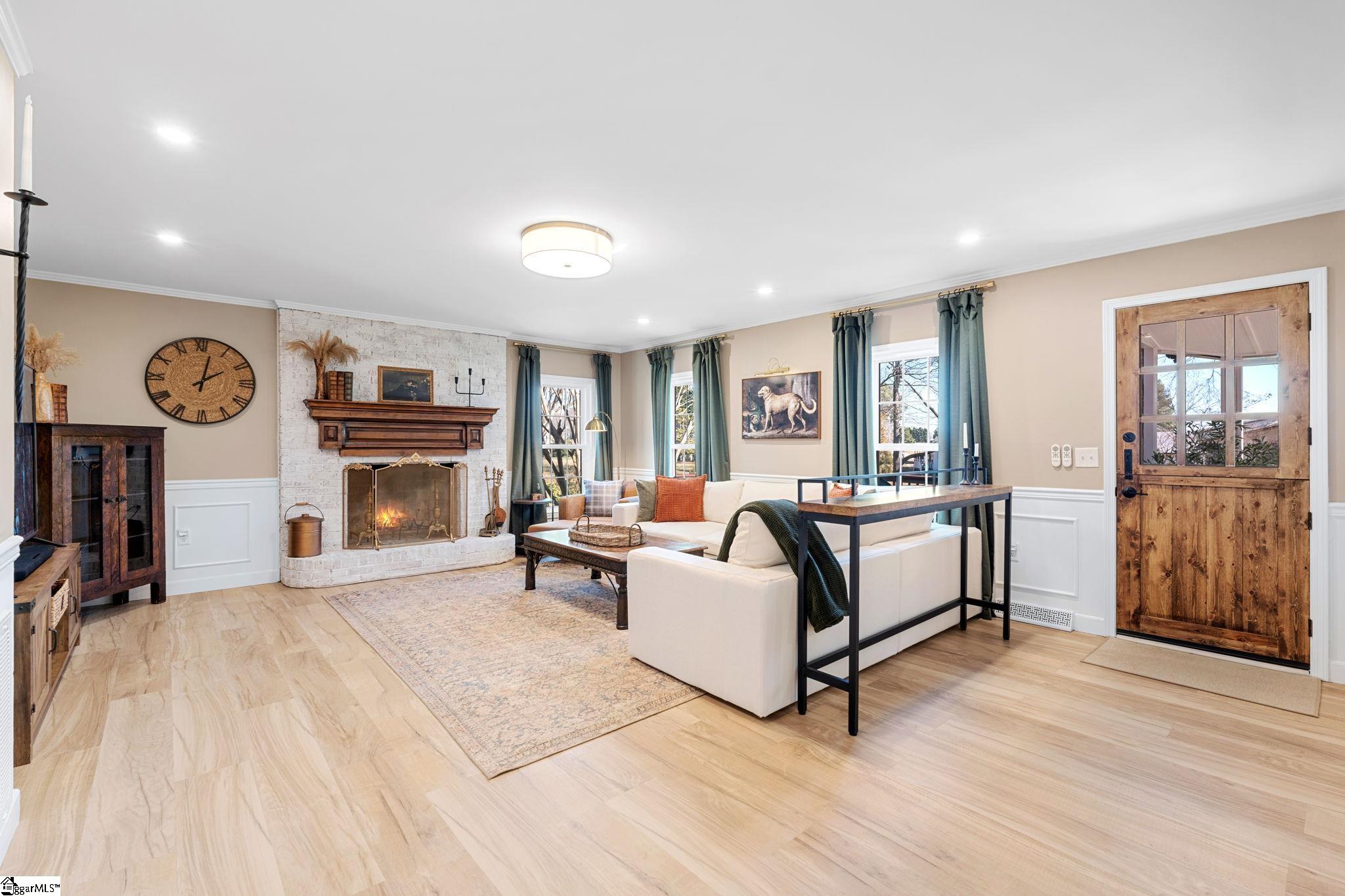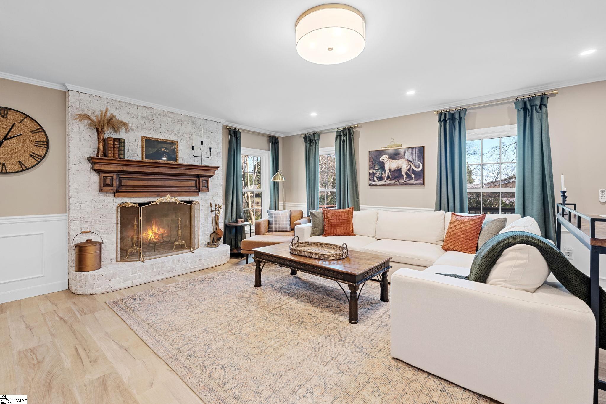 All-brick 4BR/2.5BA plus bonus home on a quiet cul-de-sac .67-acre lot in the Holly Tree golf course & country club community. Extensively remodeled over the last six months, this home features an open-concept layout created by opening multiple interior walls. Updates include smooth ceilings (no popcorn), newer windows, recessed lighting throughout the home and garage, freshly painted kitchen cabinets, new kitchen sink and faucet, convection cooktop, double ovens, added pantry storage, remodeled half bath, new toilets, updated bathroom faucets, new closet organization systems, new interior and exterior lighting, kitchen pendant lighting, sconces throughout, new window treatments, and an updated screened-in porch with adjacent open deck. Additional features include dual staircases, attic storage, Dutch door, tankless water heater, sump pump with dehumidifier, Ring cameras, keyless entry, fenced yard, and garage storage. Desirable Five Forks location with easy access to downtown Greenville and BridgeWay Station.