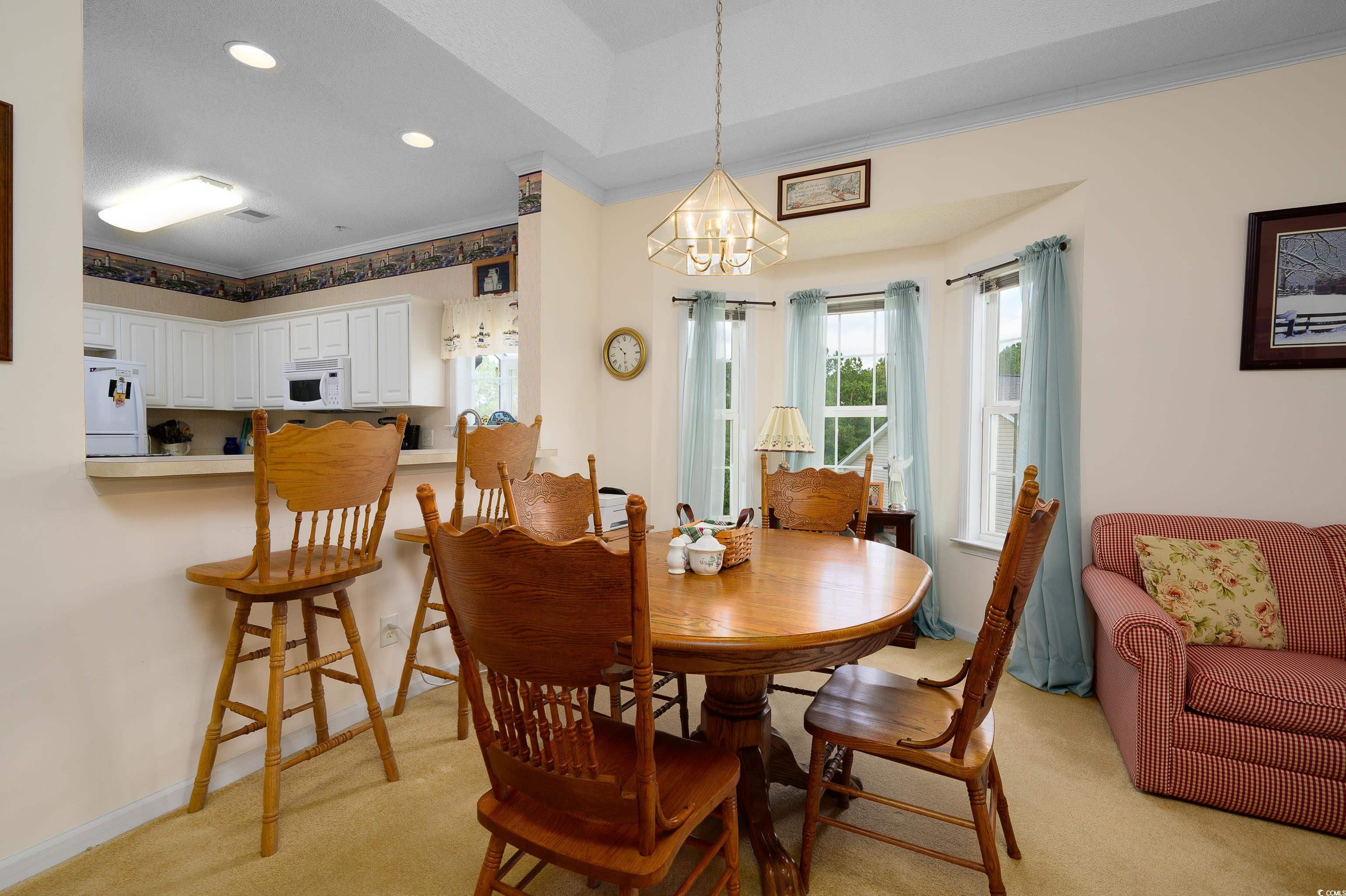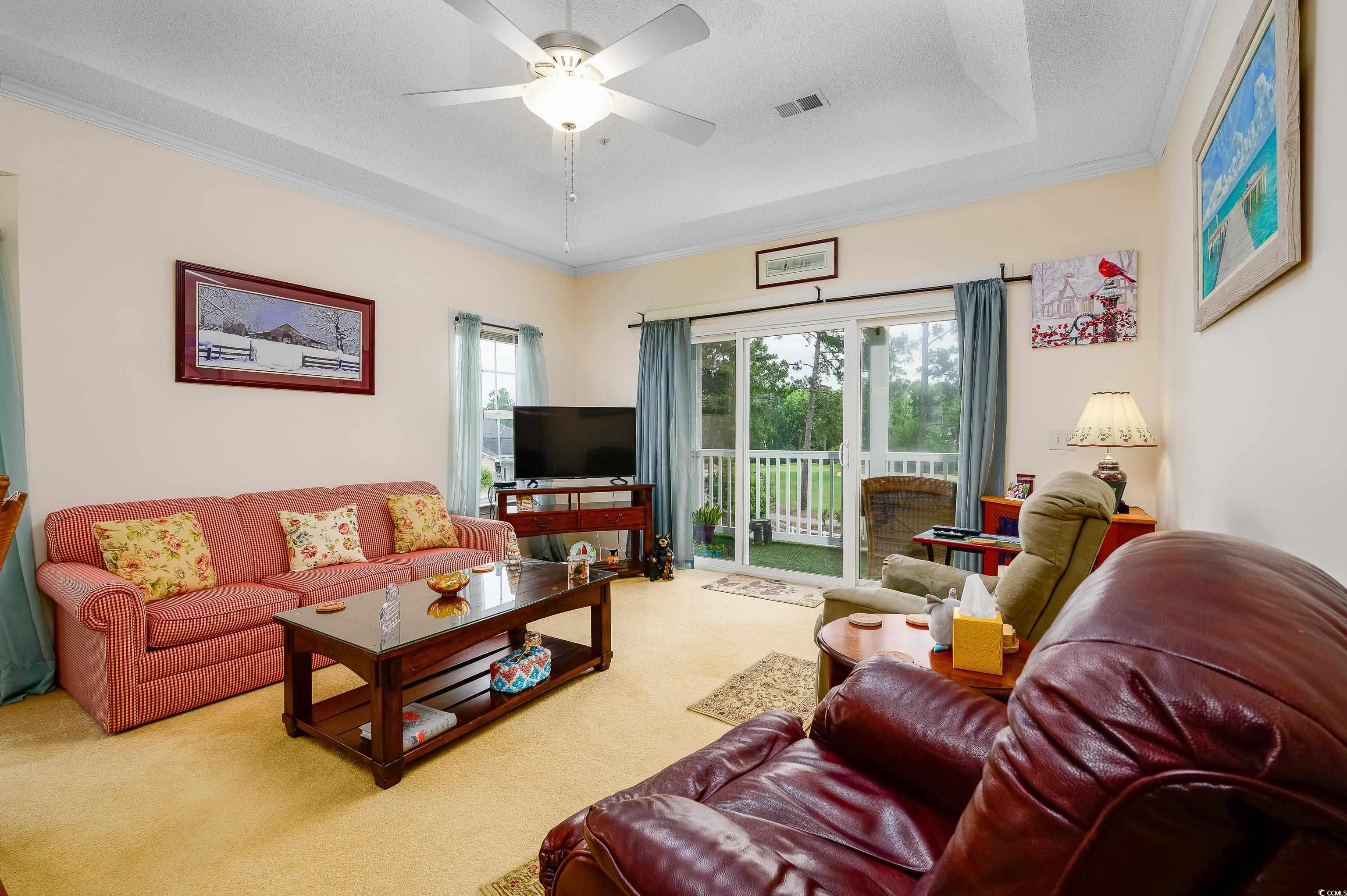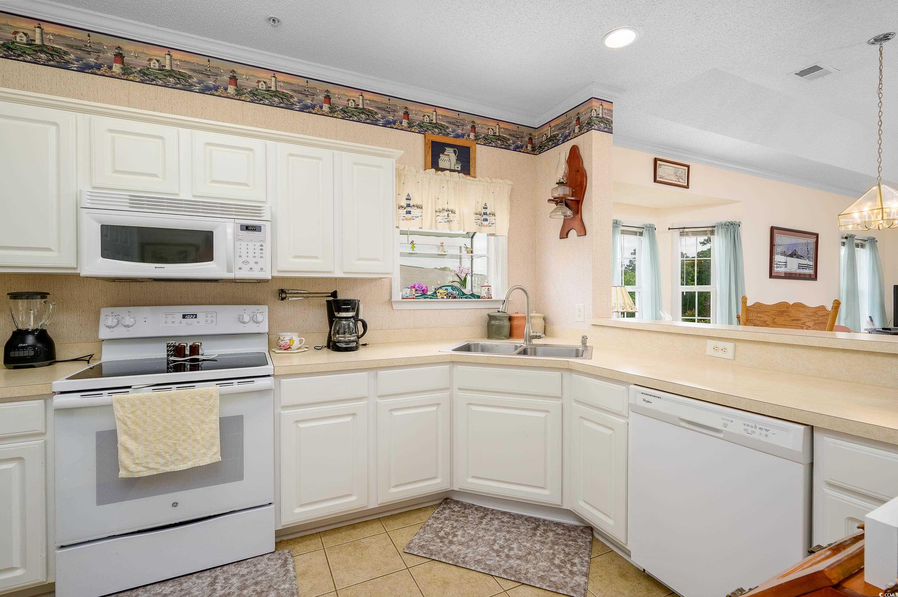 Don't miss this one! Located in the highly desirable Riverwalk II community, this top floor, end unit is in an elevator building and is PRICED TO SELL! This well maintained condo is filled with natural light and boasts gorgeous views. The balcony overlooks the 5th hole of Arrowhead Country Club, home to Myrtle Beach’s Premier 27-Hole Golf Complex. This unit is bright and spacious with an open, yet, split bedroom floor plan, providing privacy for all. The kitchen features white cabinets and white appliances as well as a breakfast bar. The kitchen overlooks the dining and living areas where there is plenty of space for your friends and family to gather. The dining room offers a bay window and there is a large tray ceiling in both rooms making an already spacious unit feel even larger. Off the living room you will find the oversized screened in balcony which is the perfect spot to enjoy your morning coffee and watch the golfers go by or your evening cocktail surrounded by beautiful sunsets. The primary bedroom is located at the back of the unit boasting private access to the balcony, vaulted ceilings and a private ensuite with double vanity and walk in shower. There are 2 other bedrooms, a full hallway bathroom with tub/shower combo, laundry closet and outdoor storage closet. Seller willing to sell furnished or unfurnished. Riverwalk II is a hidden gem surrounded by a beautiful golf course and the intracoastal waterway. There is a day dock, walking trails and more. This community is conveniently located minutes from the airport, shopping, dining, health care and award winning schools. Schedule your showing today.
