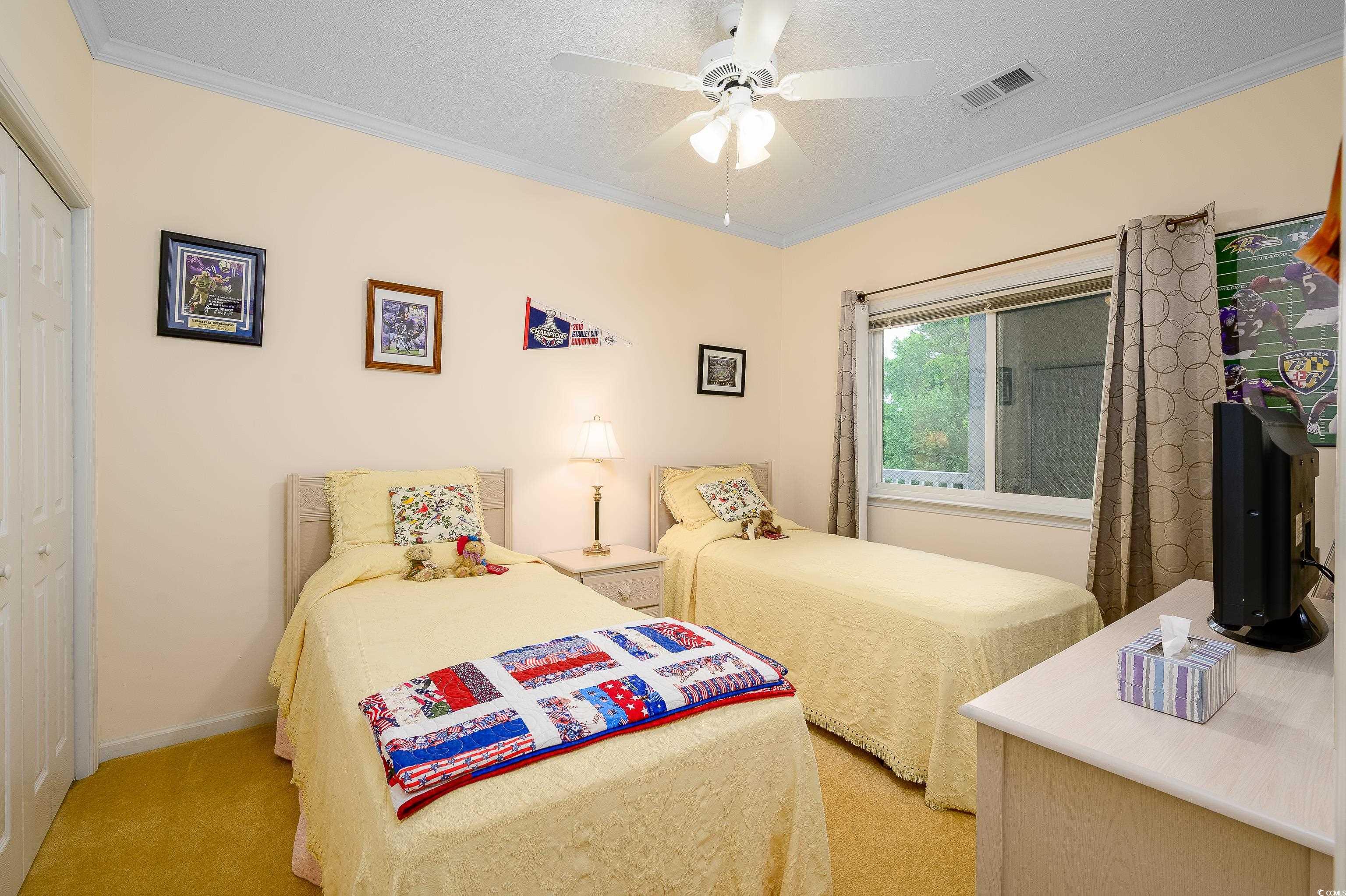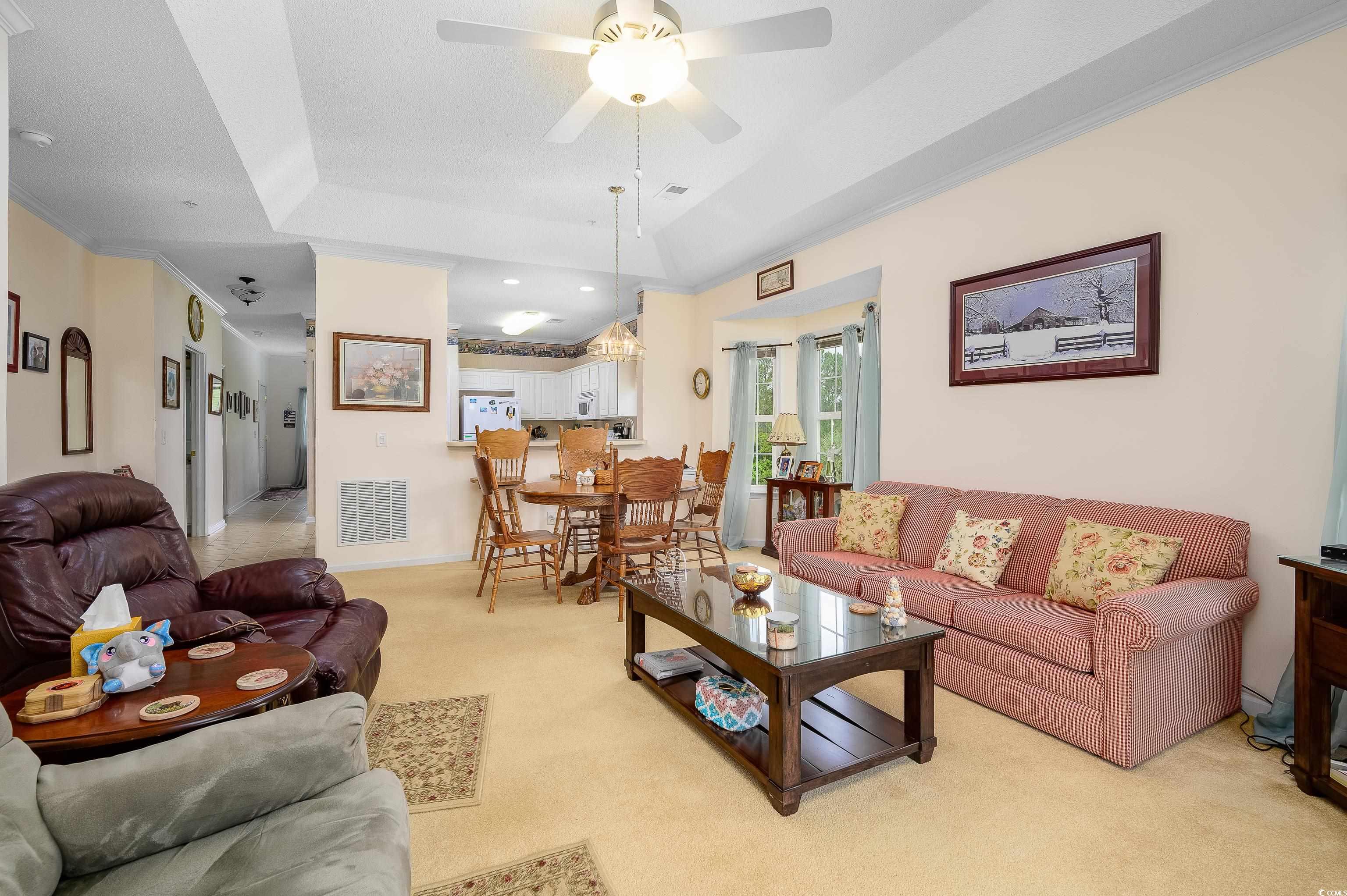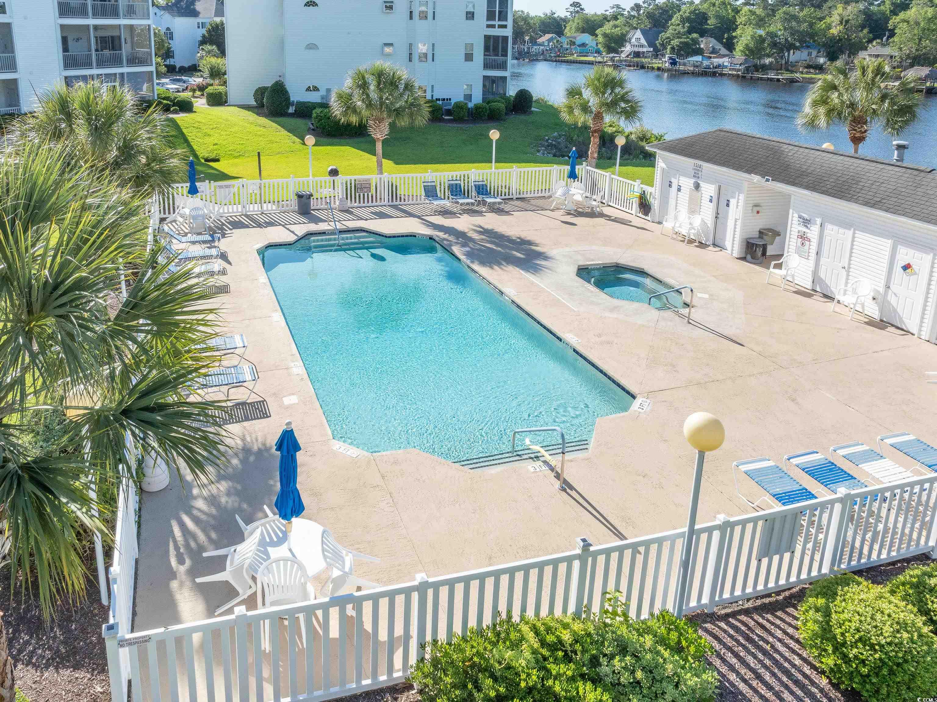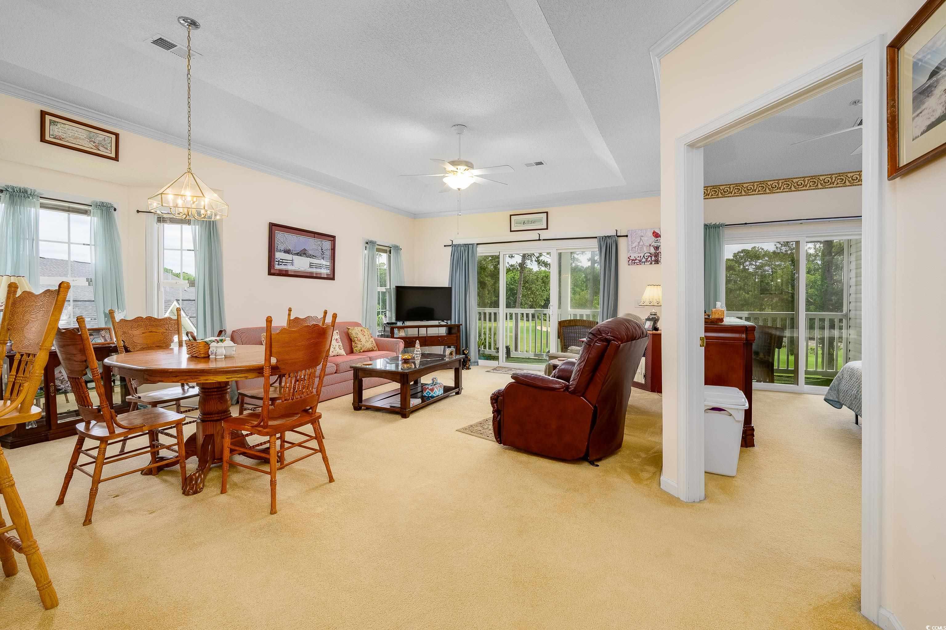 Don't miss this one! Located in the highly desirable Riverwalk II community, this top floor, end unit is in an elevator building and is PRICED TO SELL! This well maintained condo is filled with natural light and boasts gorgeous views. The balcony overlooks the 5th hole of Arrowhead Country Club, home to Myrtle Beach’s Premier 27-Hole Golf Complex. This unit is bright and spacious with an open, yet, split bedroom floor plan, providing privacy for all. The kitchen features white cabinets and white appliances as well as a breakfast bar. The kitchen overlooks the dining and living areas where there is plenty of space for your friends and family to gather. The dining room offers a bay window and there is a large tray ceiling in both rooms making an already spacious unit feel even larger. Off the living room you will find the oversized screened in balcony which is the perfect spot to enjoy your morning coffee and watch the golfers go by or your evening cocktail surrounded by beautiful sunsets. The primary bedroom is located at the back of the unit boasting private access to the balcony, vaulted ceilings and a private ensuite with double vanity and walk in shower. There are 2 other bedrooms, a full hallway bathroom with tub/shower combo, laundry closet and outdoor storage closet. Seller willing to sell furnished or unfurnished. Riverwalk II is a hidden gem surrounded by a beautiful golf course and the intracoastal waterway. There is a day dock, walking trails and more. This community is conveniently located minutes from the airport, shopping, dining, health care and award winning schools. Schedule your showing today.