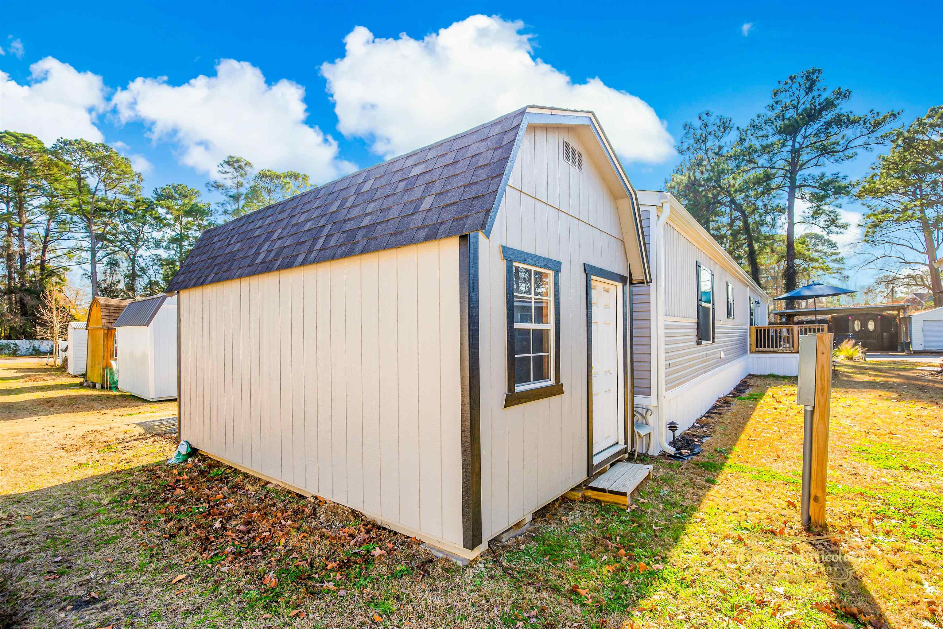 LOOK NO FURTHER!!! Here is your sleek 2-year-old custom 3-bedroom, 2 bath 1,280 sqft home with 8ft ceilings, nestled in the beautiful nature of Crystal Lake (a pet friendly community). Walk or bike around the picturesque lake or go paddle boating, kayaking, even fishing. JUST A GOLF CART RIDE to the grocery store, state park, THE BEACH and close to the airport and Market Commons! Cooking is a treat in this thoughtfully designed kitchen with a bright and modern island, double sink, stainless steel refrigerator, range, and dishwasher. For convenience the multipurpose laundry/utility/pantry room offers great space and functionality. Rest peacefully in a large primary bedroom suite with a walk-in closet, garden tub/shower and double vanity. Outside features a fenced in yard off of the 10x16 back deck. In the front is a gated 8x16 deck. In the back of the property is a 1 car detached garage for the golf cart parking and extra storage. There is also, a shed for outside equipment or a workshop. No expense was sparred with an Ecobee smart thermostat, an energy efficient HVAC system and water heater, upgraded thermal pane vinyl tilt in windows, an accent was in the living room, gutters, downspouts, gutter guards and 2 storm doors. Lot fee includes trash pickup, yard debris pickup and basic cable.
