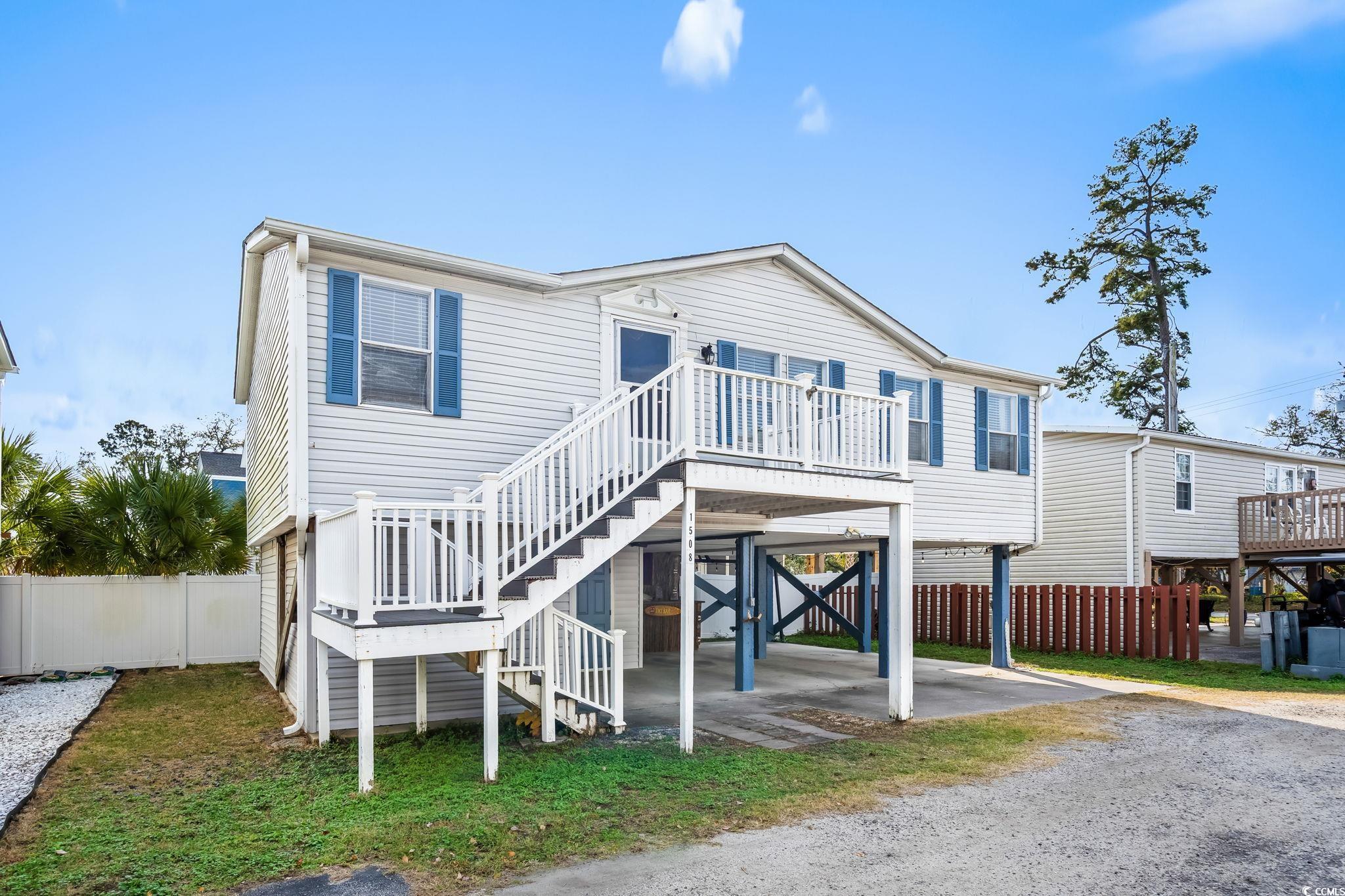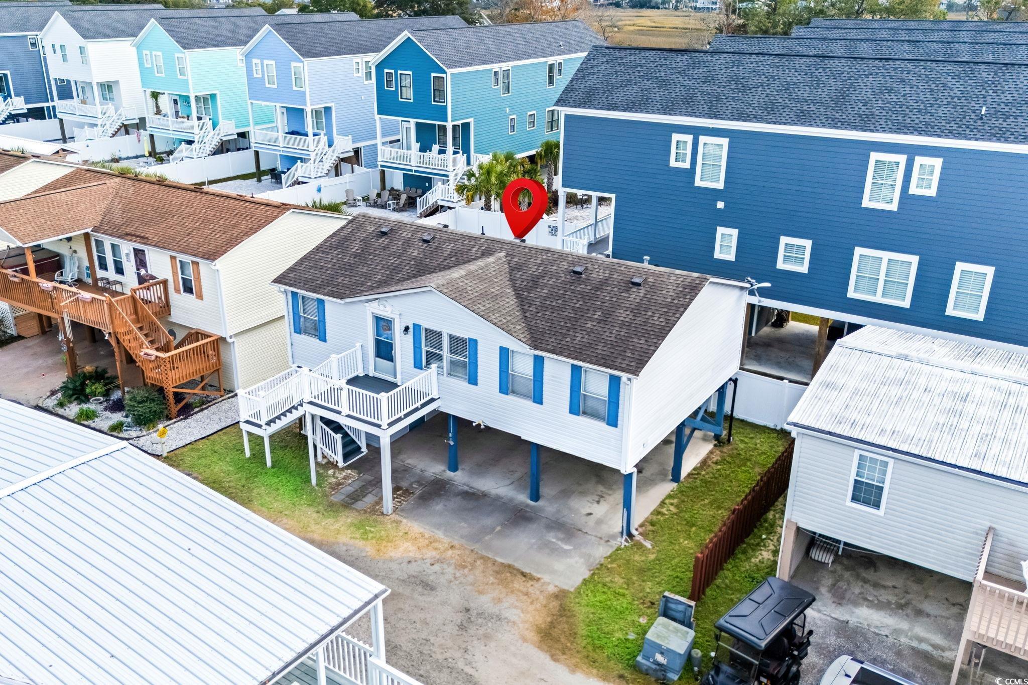 BEAUTIFULLY UPDATED, UNBEATABLE LOCATION, NO HOA, PRICED TO SELL!! Welcome to this a cheerful beach retreat nestled in the heart of Garden City and just minutes from the ocean and the Garden City Pier. This elevated coastal cottage has an unbeatable location, making it perfect as a primary home, vacation getaway, or investment property. Step upstairs to a bright and inviting living space filled with natural light and coastal character. The open-concept layout features warm flooring, soothing beach-inspired colors, and plenty of room for relaxing after a day on the water. The spacious living room flows easily into the dining area and beautifully renovated kitchen, complete with white cabinetry, solid-surface counters, stainless steel appliances, subway tile backsplash, and a large center island with seating — ideal for gathering with family and friends. The primary bedroom offers generous space, double windows for great natural light. The bathroom features a dual-sink vanity and a beautifully tiled walk-in shower.. Additional bedrooms provide comfort for guests, and the home’s thoughtful layout makes everyday living effortless. The expansive covered Driveway area offers parking, storage, and an entertaining space unlike any other — complete with a built-in tiki bar, mounted TV, and plenty of room for grilling, gathering, and enjoying the coastal breezes. Whether you're relaxing outdoors or rinsing off after a beach day, this space adds the perfect touch of fun and function. The property is located just a short drive or golf-cart ride from Huntington Beach State Park, the MarshWalk, restaurants, shops, and all the natural beauty Murrells Inlet and Garden City is known for. Situated east of Highway 17 and surrounded by established homes, this location offers both convenience and a true coastal lifestyle. Whether you're looking for a beach-side escape or a primary home in one of the Grand Strand’s most desirable communities, this home delivers comfort, personality, and endless potential. Buyer is responsible for verification.
