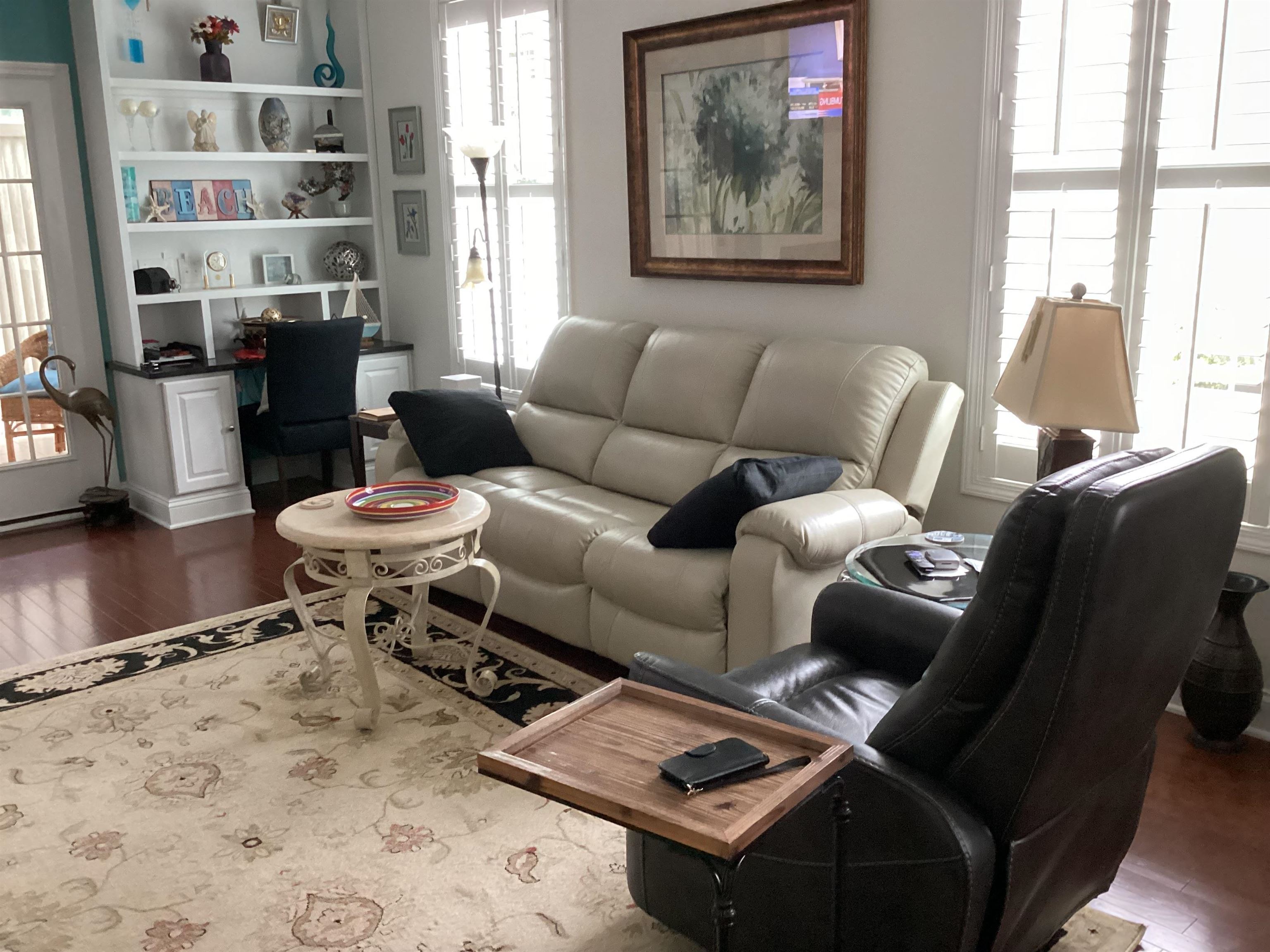 This amazing, freshly painted home with 3 bedrooms and 2 bathrooms is located in the beautiful, convenient and unique Ocean Walk Community. There is a formal dining room (or office space) with plantation shutters at the front of the home. The spacious living area with gas fireplace, vaulted ceiling and plantation shutters leads out to the 4-season sunroom with a separate heating/cooling unit. The entire home has crown molding and hardwood flooring except the bathrooms, laundry and sunroom which are tiled. The kitchen has granite countertops with a tiled backsplash and breakfast bar. Appliances are stainless steel and the range is gas. The Primary bedroom has a dual vanity, shower and garden tub. Down the hall are two additional bedrooms and a full bath. The two-car garage has a gas hot water heater and attic access for storage. The outside was not forgotten...with a delightful front porch and landscape lighting, curb scape and sidewalk that leads to the large fenced-in backyard with a wonderful large patio and pergola for outdoor entertaining. Ocean Walk has resort style amenities, including outdoor pool, indoor pool, lazy river, hot tub, fitness room and a clubhouse for community enjoyment. The community has a wide range of events and activities for residents. Ocean Walk is conveniently located near the airport and close to shopping. Myrtle Beach State Park and nearby public beach access area is accessible by golf cart from Ocean Walk.
