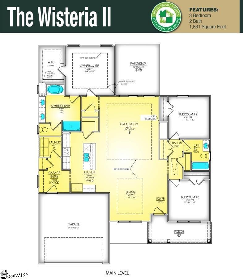 Welcome to Lynbrook, a charming new neighborhood nestled in the scenic Boiling Springs area just north of the vibrant city of Spartanburg. Here, you'll discover the perfect blend of modern living and natural beauty. Lynbrook provides residents the ideal balance of tranquility and convenience, with excellent schools, a brief commute, and stunning vistas of the majestic mountains serving as the backdrop to everyday life. Named after the bubbling, boiling spring that graces the corner of McMillian Boulevard and Highway 9, Lynbrook embodies the spirit of its surroundings, where nature meets modernity. Imagine coming home to a community where lush greenery and rolling hills provide a serene retreat from the hustle and bustle of city life, while still being just moments away from all the amenities and attractions of Spartanburg, SC. Discover your dream home in Lynbrook and experience the best of both worlds today. The Wisteria II is a single-story home featuring foyer, family room with vaulted ceiling, kitchen with oversized pantry, peninsula and optional island. Large formal dining room too! Also included is a covered patio. Primary suite features vaulted ceiling, double sinks, garden tub, water closet, separate shower and a large walk-in closet. Plus, two additional bedrooms, full bath, and more. Relax and unwind on the covered patio, an ideal place to enjoy the beauty and nature of the spacious backyard. Each lot is unique and provides plenty of green space overlooking wooded views, perfect for entertaining guests and creating memories for many years to come.