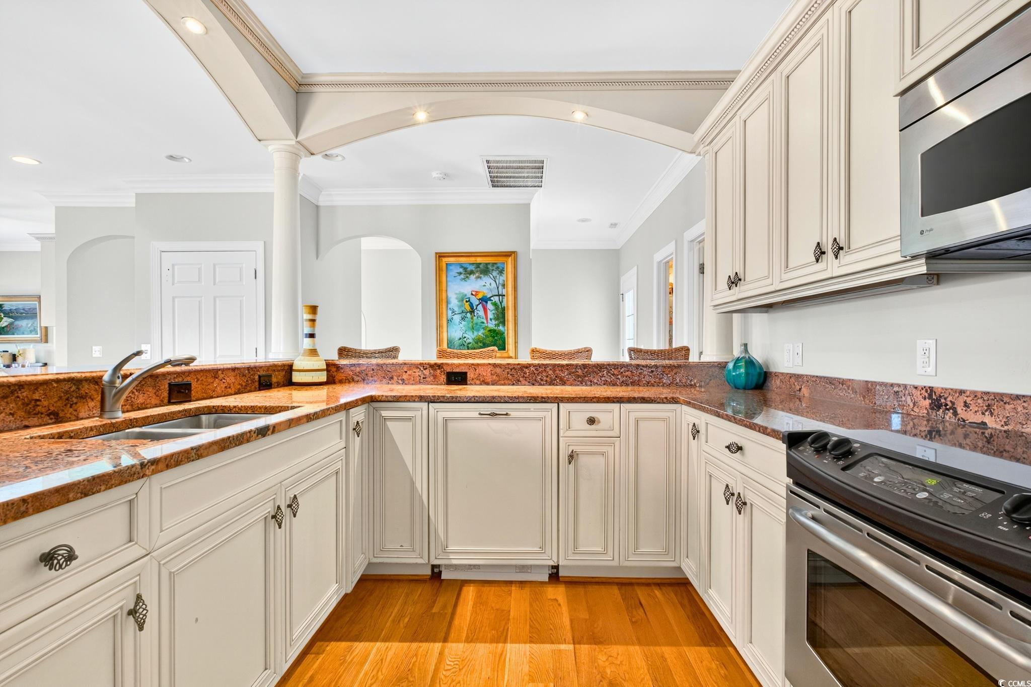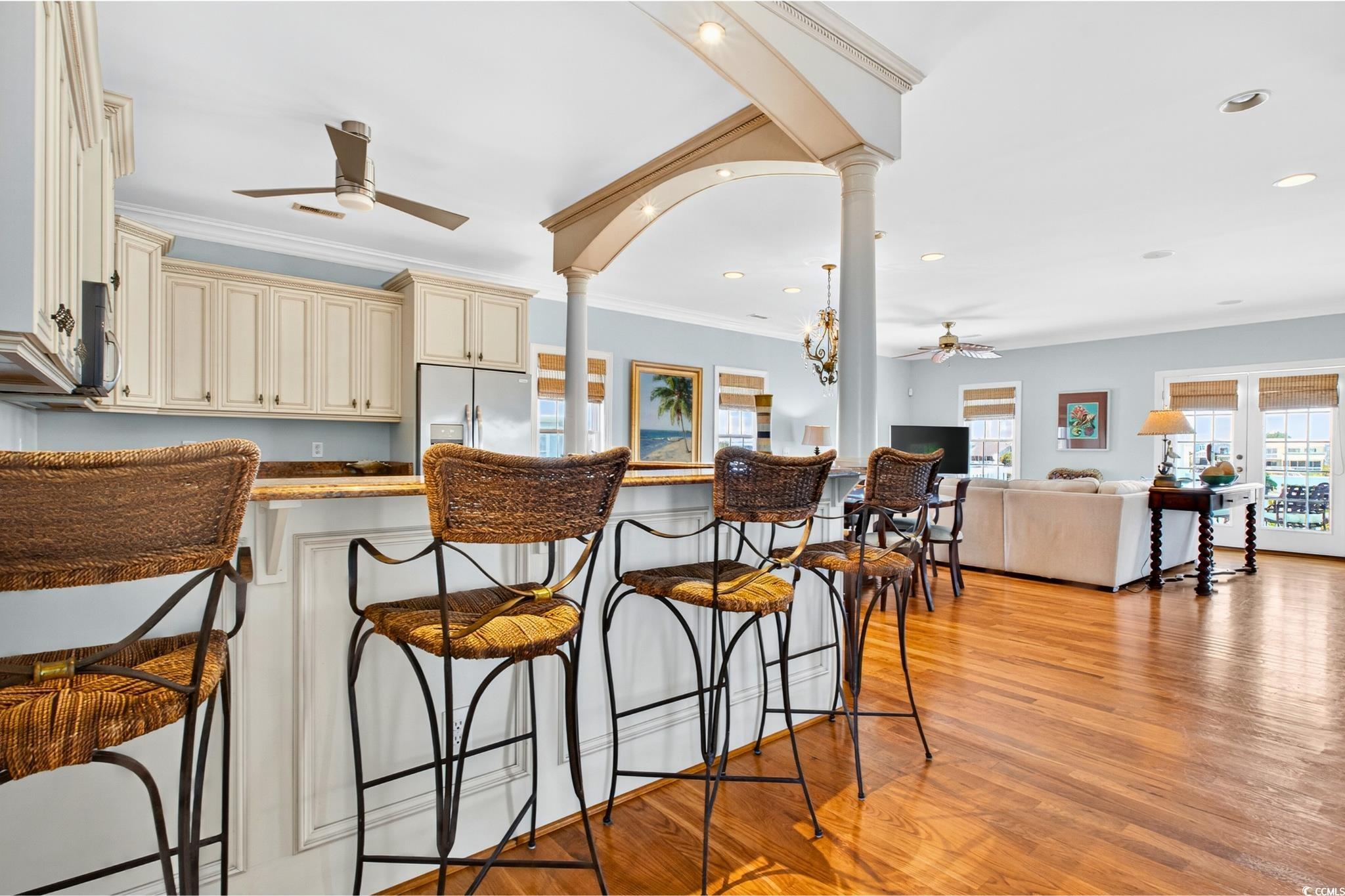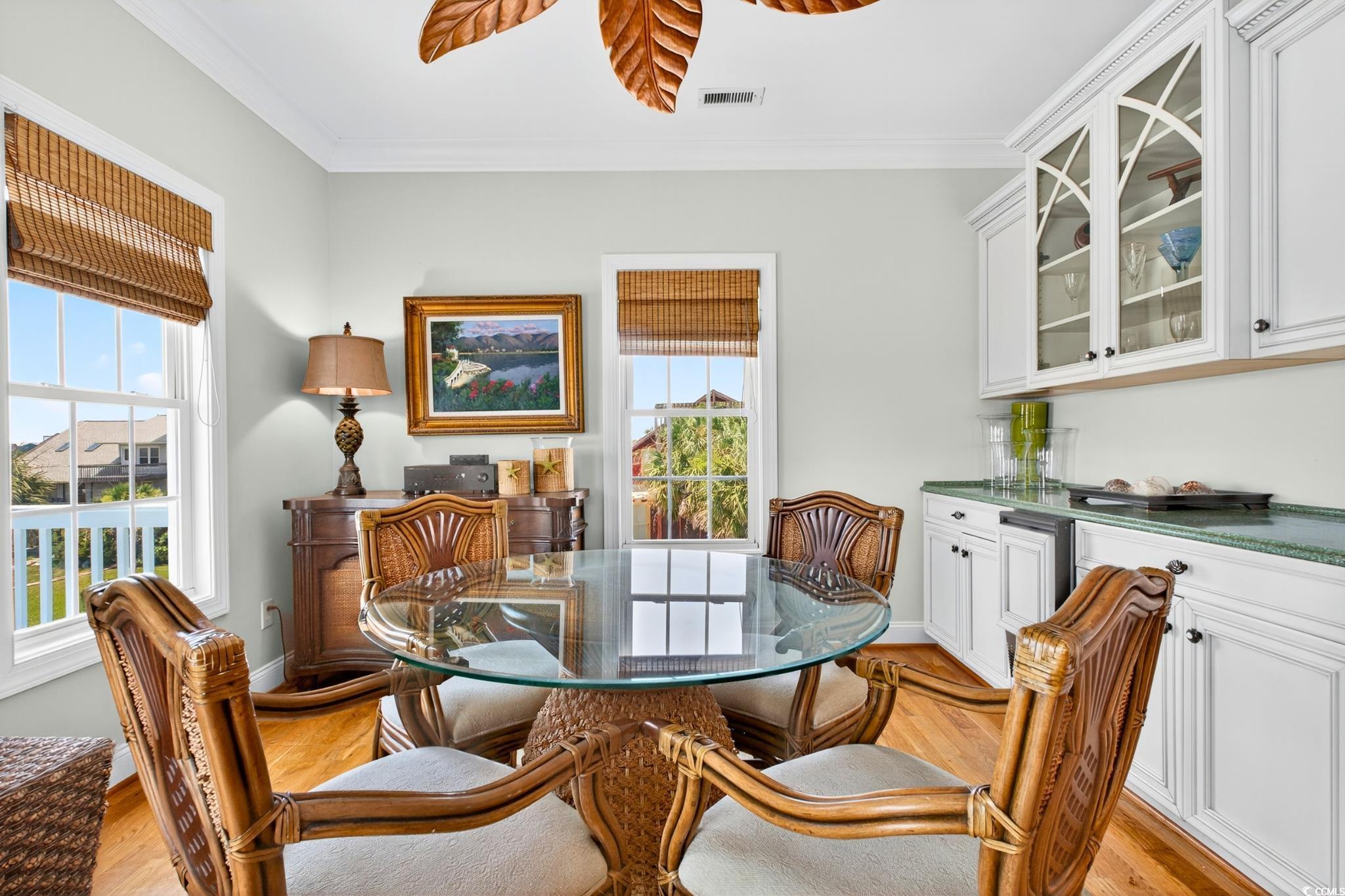 This stunning custom-built Charleston-inspired home sits on an oversized Sunset Beach lot, offering breathtaking sunrise and sunset views from its expansive porches overlooking Jinks Creek. The fully furnished Lowcountry retreat features HardiePlank siding for timeless durability and includes a full-home elevator servicing all floors for effortless living. The open floor plan showcases gleaming hardwood floors, elegant granite countertops, and luxurious marble baths throughout, with architectural details like columns and arched openings enhancing the Lowcountry aesthetic. The main-floor primary suite makes a statement with double-door entry, revealing a spa-inspired marble bath with soaking tub, dual vanities, and separate shower, plus porch access for morning sunrises. Recent upgrades include a freshly painted exterior, two high-efficiency HVAC systems installed within the last two years, and designer Seagrass window treatments. The outdoor oasis features a resort-style inground pool overlooking Jinks Creek, framed by a fenced backyard perfect for private gatherings. Multiple porches provide ideal vantage points to enjoy golden-hour light over the water. Notable features include a stylish wet bar for entertaining, playful modern wallpaper and textured grasscloth wallcoverings in select rooms, and durable standing seam metal roof with concealed fasteners. This turnkey property has never been part of a vacation rental program and shows in pristine condition, offering untapped potential as either a personal retreat or income-generating property. The Charleston-inspired design blends classic Lowcountry charm with modern luxury, creating a truly special Sunset Beach residence. Buyers may explore potential dock opportunities, as previous plans were approved for this property. New plans, however, must be obtained by the buyer.