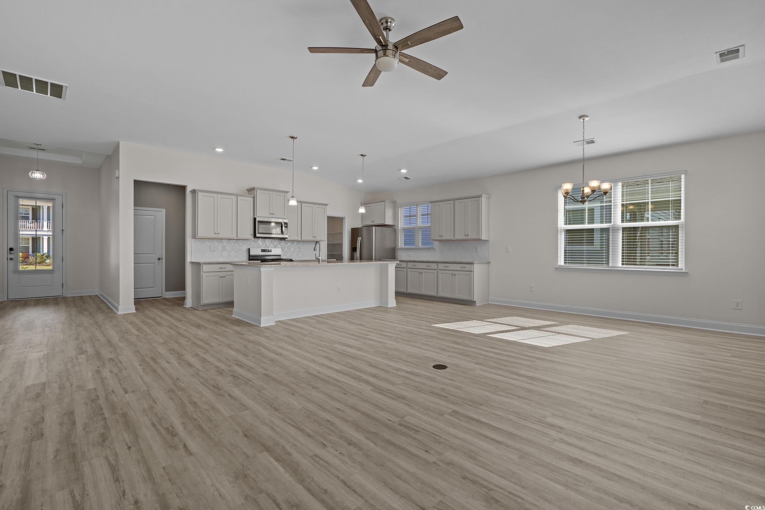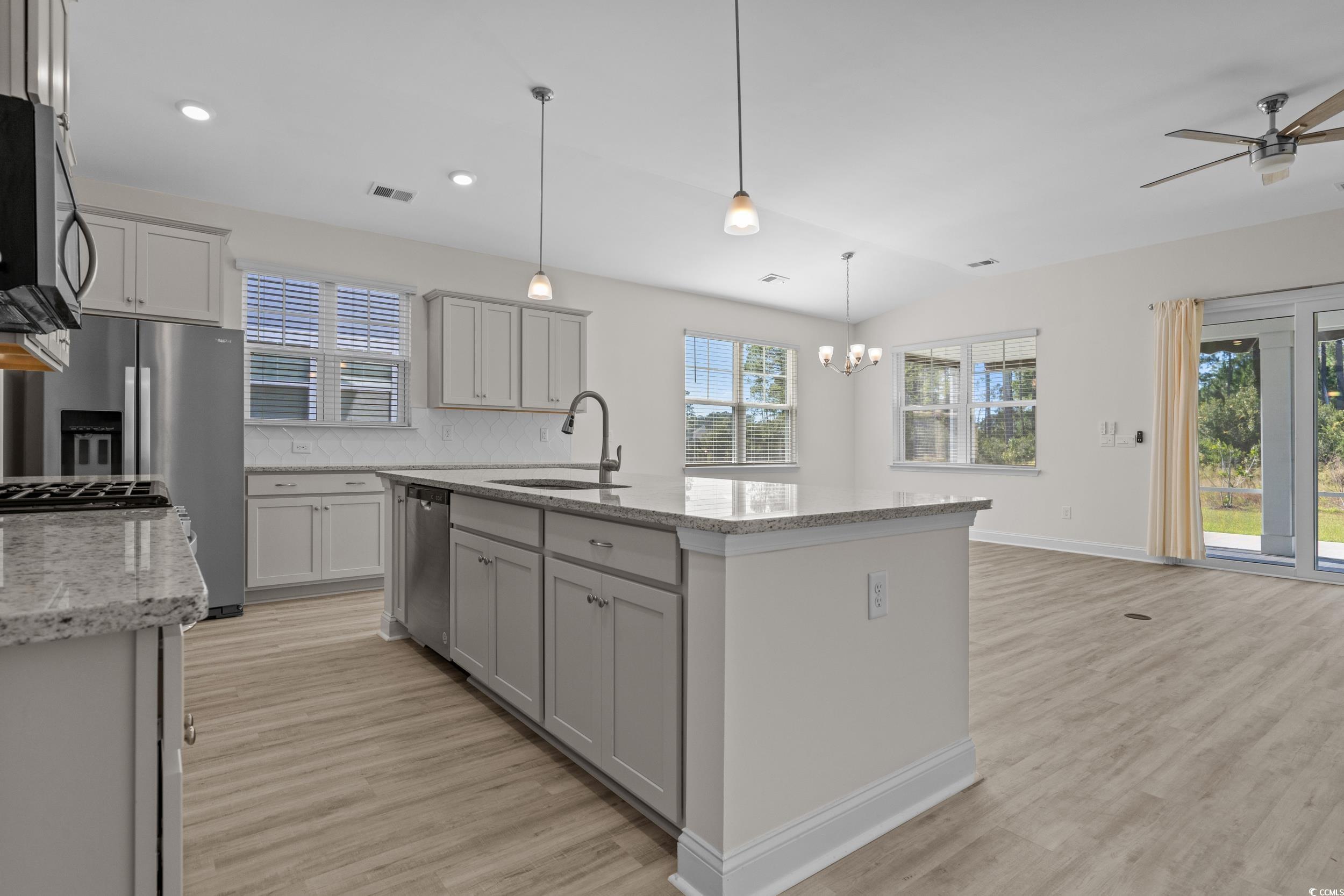 Beautiful 3-Bedroom Home in The Retreat at Wild Wing Golf Community with multiple upgrades make this home better than new. Welcome to this stunning Eaton model home, perfectly situated in the desirable golf course community of The Retreat at Wild Wing. Offering 3 bedrooms and 3 full baths, this home combines timeless design, thoughtful upgrades, and modern comfort. The exterior features Hardie Plank siding and enhanced landscaping that creates exceptional curb appeal. Inside, the open-concept layout showcases luxury vinyl plank flooring throughout the main living areas. The expansive kitchen is a chef’s dream, complete with quartz countertops, a gas range, stainless steel appliances (including refrigerator), a large breakfast bar, and a walk-in pantry. The generous owner’s suite offers a peaceful retreat with a 5-foot tiled shower, double sinks, two linen closets, and a spacious walk-in closet. Two additional bedrooms and a full bath provide plenty of space for guests or family. Additional highlights include a laundry room with a utility sink and added cabinets, remote-control ceiling fans in every room including the porch, and epoxy flooring in the garage. Outdoor living is just as impressive. The large screened porch, featuring upgraded porcelain wood-look tile, overlooks the private wooded preserve—a perfect spot for relaxing mornings or quiet evenings. The extended patio, complete with two retractable awnings, creates the ideal space for entertaining and grilling. Located just minutes from Conway Medical Center, Coastal Carolina University, Tanger Outlets, and an array of grocery stores and restaurants, this home offers the perfect blend of comfort, convenience, and community living.
