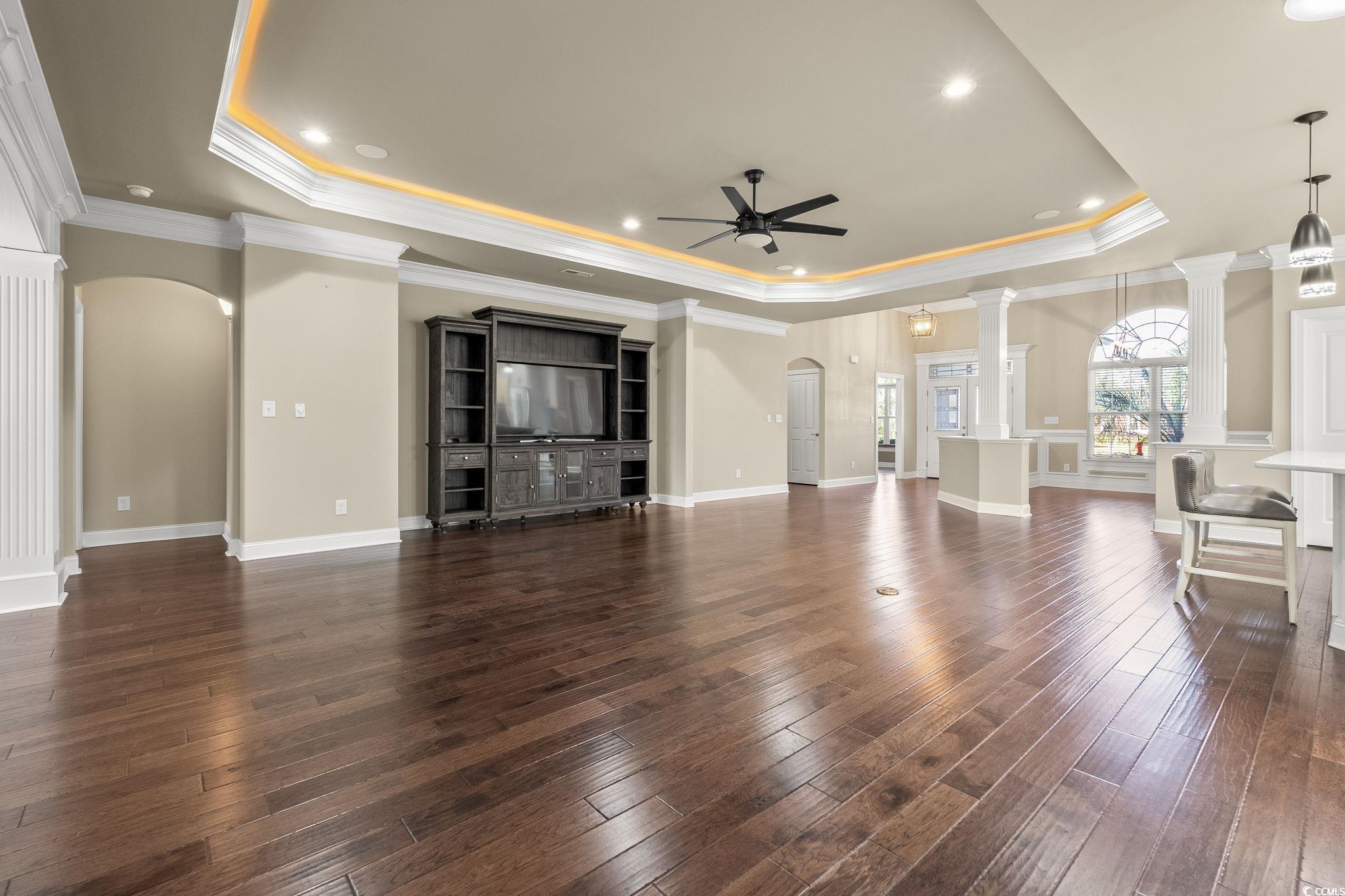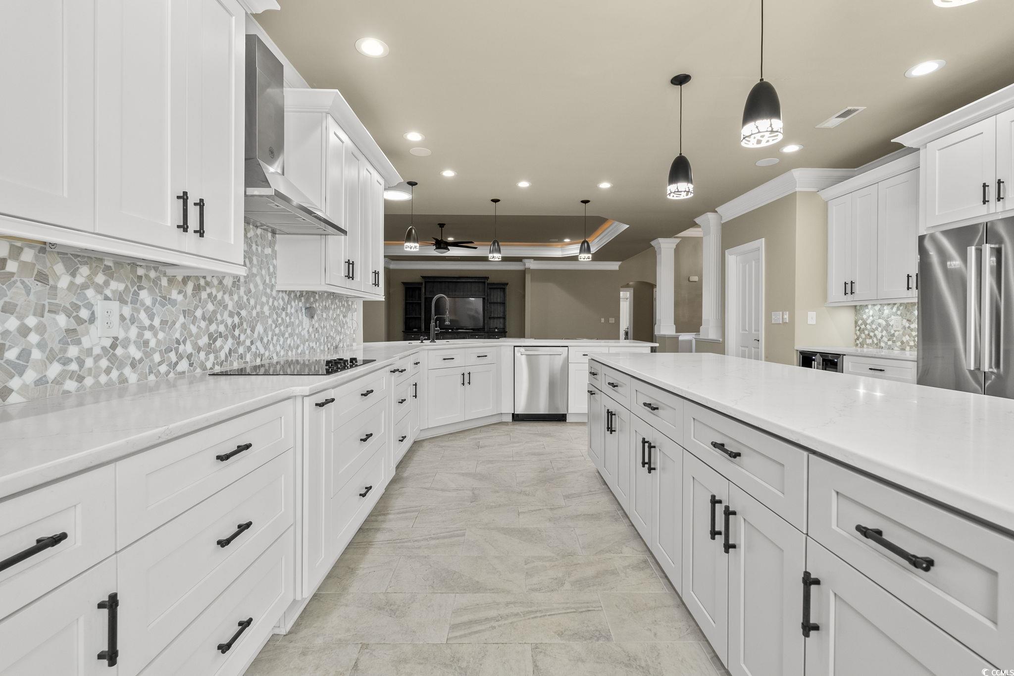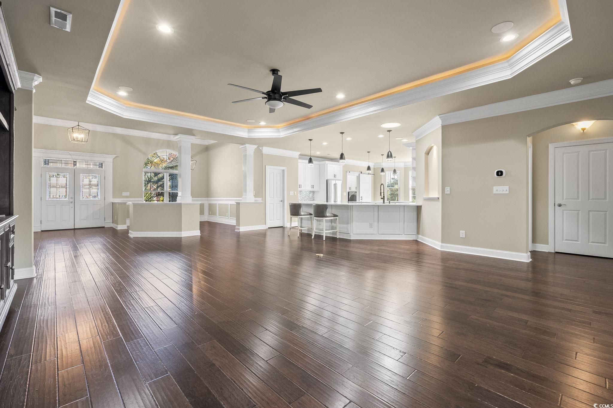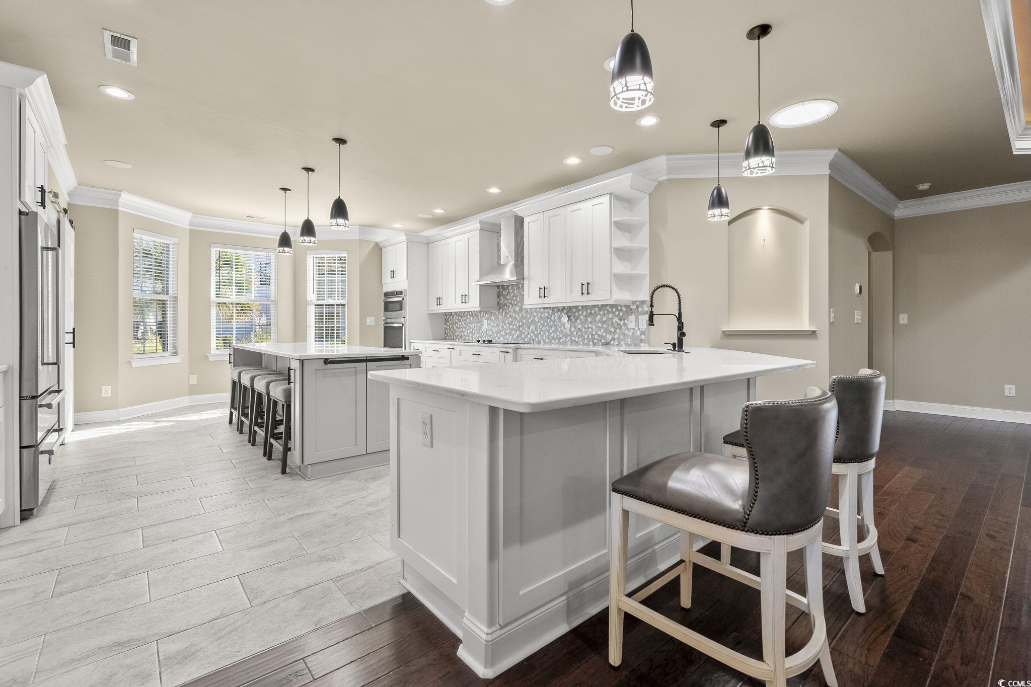 This sprawling custom 4-bedroom, 3.5-bath home blends comfort, luxury, and exceptional spaces for entertaining-all on one convenient level. The heart of the home is an expansive kitchen featuring a wall oven, oversized island, peninsula, beverage fridge, and abundant cabinetry, making it one of the largest and most functional kitchens you'll find. The open, airy floor plan offers effortless flow, ideal for modern living. With two master suites-each with a tile walk-in shower and the primary featuring his-and-her closets-privacy and comfort are elevated throughout. Tray lighting throughout the main living area, formal dining room space. Too many upgrades to mention, schedule an apt to see today. The oversized garage offers full size walk-up stairs to a climate-controlled (portable unit conveys) space above the garage. Outside, the fenced backyard provides wonderful privacy with a natural, park-like setting and plenty of room to add a pool to create your own personal oasis complete with a putting green to work on your short game. Enjoy community amenities including a clubhouse, grand outdoor patio, as well as a large zero-entry pool for leisure and relaxation. For boating enthusiasts, Creek Harbour low HOA dues include dry boat storage and access to a day dock on Collins Creek, offering a direct route to the Intracoastal Waterway. From there, you can reach the historic waterfronts of Georgetown or Conway in about 30 minutes for lunch or a scenic afternoon on the water. In addition to the oversized attached garage, a detached garage offers endless possibilities, extra storage, workshop, gym, she-shed, man-cave, or anything you imagine. This detached space also includes a bathroom, its own low-boy water heater, and a fantastic covered outdoor kitchen area with storage and seating, perfect for watching the game and enjoying true Lowcountry living.
