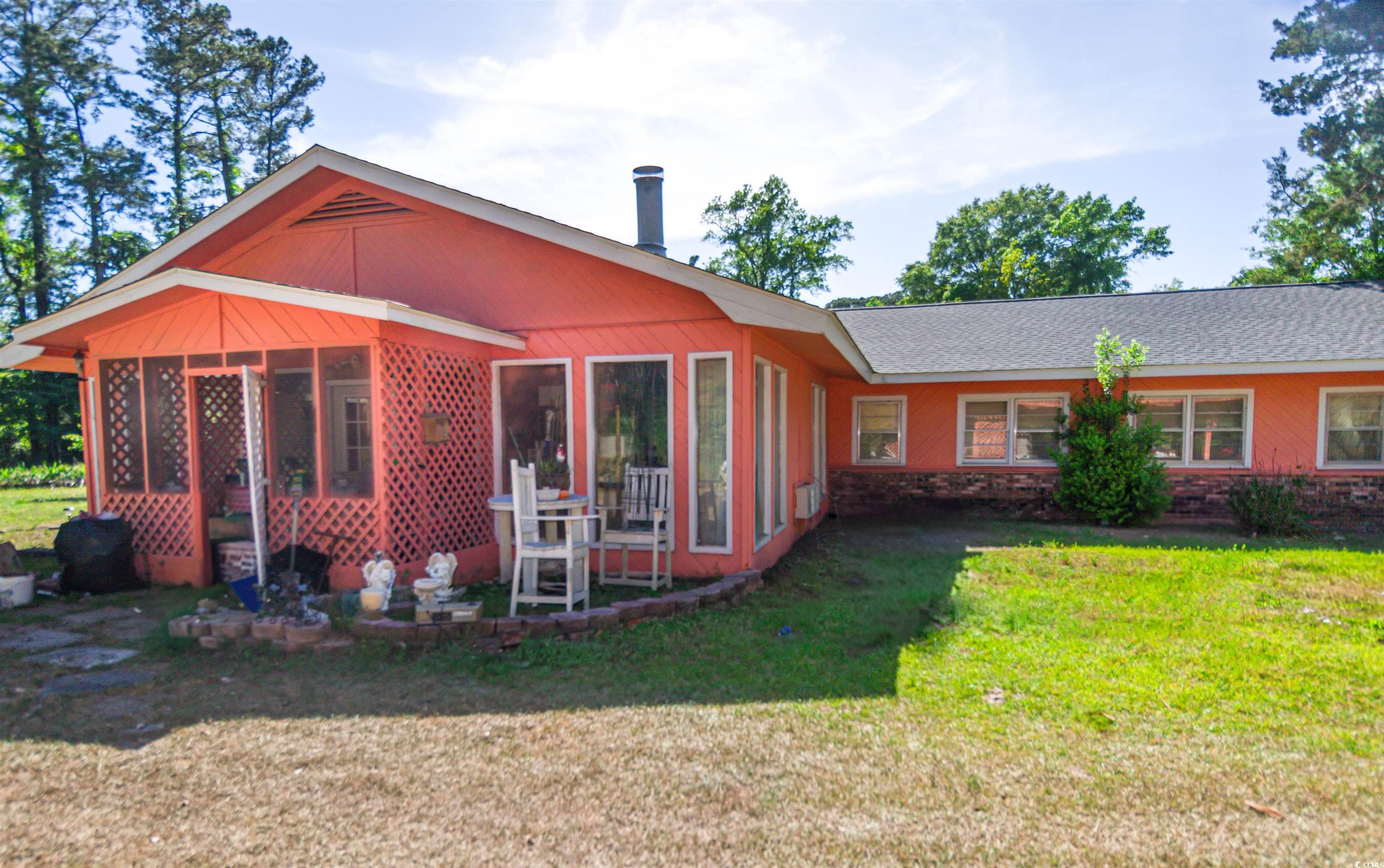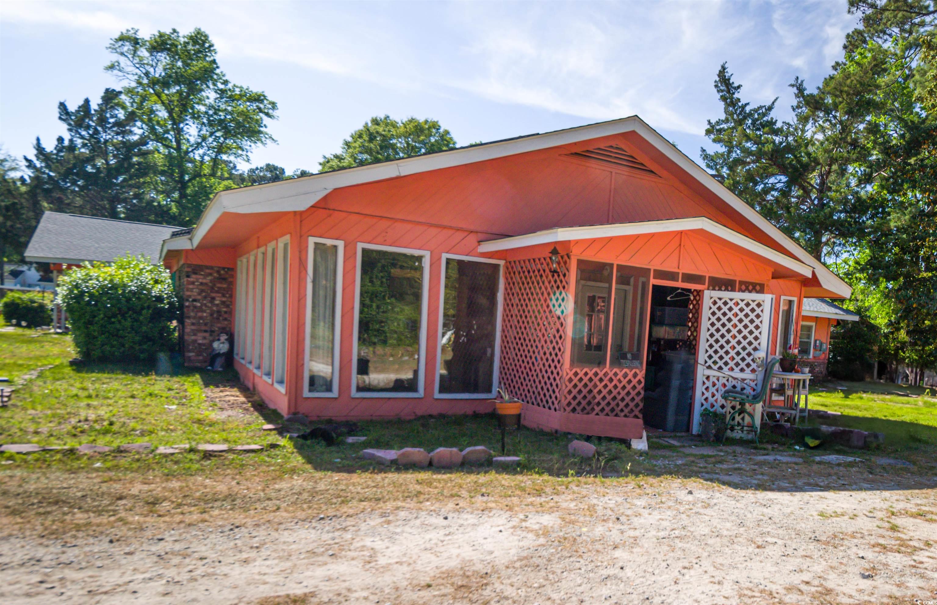 A one of kind property featuring a 3,900 square foot home on 1.09 acres, complemented by three additional subdivided lots for a total of 2.99 acres. The property is situated within an HOA neighborhood, yet the home and 3 separate lots are not part of the HOA and are not subject to HOA laws or regulations. This makes the property very attractive. Buyer may use the land however they see fit. Build more homes, build a storage center for cars, boat, RV, or a large pool. There are no limits to what this property can become. The original well-constructed Home was built in 1948 and has had some renovations over the years. One renovation is the addition of a self-contained one-bedroom apartment/mother-in-law suite with private entrance that was added to the back of the home. A new roof and solar panels were installed in 2022. The house overall is very solid and with a little tender loving care will make someone a beautiful home. The main structure of the house includes, 3 bedrooms, 3 bathrooms (two of them in the Primary bedroom), a spacious galley kitchen, living room, dining room. an oversized laundry room, office/craft room, bar area which includes a large wet bar, and an oversized sunroom with gas fireplace. This home is strategically located in the Little River area off highway 9 and is in one of the most desirable coastal destinations in South Carolina. Close to pristine beaches, championship golf, family-friendly attractions like Barefoot Landing and Cherry Grove Pier, a vibrant shopping and dining scene, as well as Hospitals. This home is one of a kind and must be seen to appreciate its full potential. Come see it and get inspired.