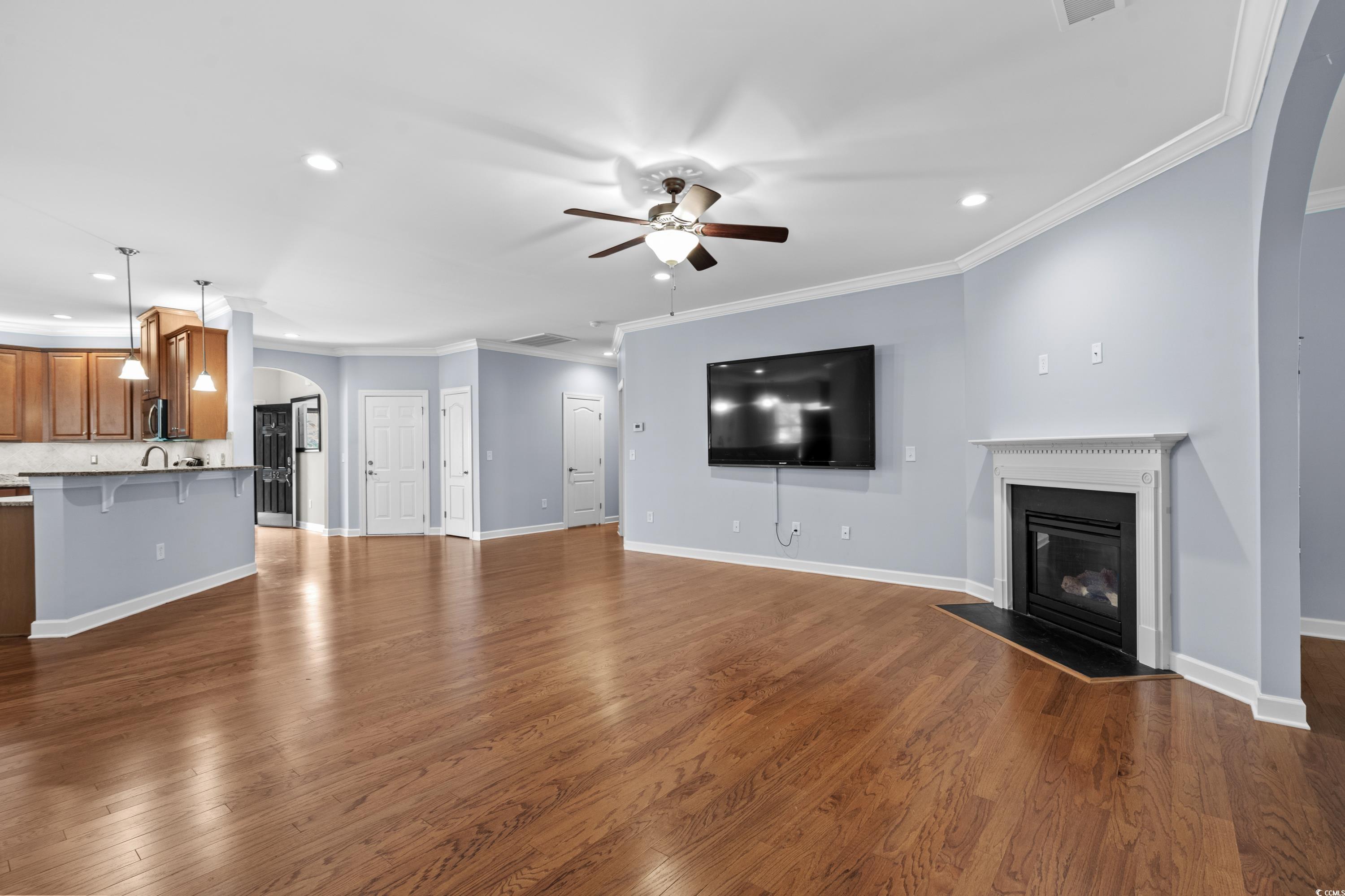 The asking price is below the recent appraisal value. Discover this stunning one-level, 3-bedroom, 2.5-bathroom home that offers both comfort and style! Step inside to find beautiful hardwood floors throughout the main living areas, primary suite, and one of the guest bedrooms. The spacious primary suite boasts a cozy sitting area, two walk-in closets, and a luxurious bathroom featuring separate double sinks with one vanity, a water closet, a soaking tub, and a walk-in shower. The open-concept kitchen is a chef’s dream, complete with granite countertops, a large work island, a dedicated workstation, stainless steel appliances, and a massive walk-in pantry. Feel free to install a gas cooktop stove, as there is a hookup available where the current electric stove is located. The kitchen is overlooking the main living area, this space flows seamlessly into the family room, where a natural gas fireplace adds warmth and charm. Both guest bedrooms are generously sized, and the guest bathroom includes double sinks and a tub-shower combo. The versatile Carolina Room is a standout feature—large enough for a pool table and perfect as a sunroom, bonus room, man cave, playroom, or any other space you can imagine! Step outside to a private backyard retreat featuring a screened-in porch, a patio ideal for grilling, and a convenient storage shed. Additional highlights include a spacious laundry room and upgrade exterior lighting for nighttime use. Located in Brookfield Estates, a natural gas community, residents enjoy low HOA fees that cover a community pool, playground, trash pickup, cable, and internet. Don’t miss your chance to see this incredible home—schedule a tour with your Realtor today!