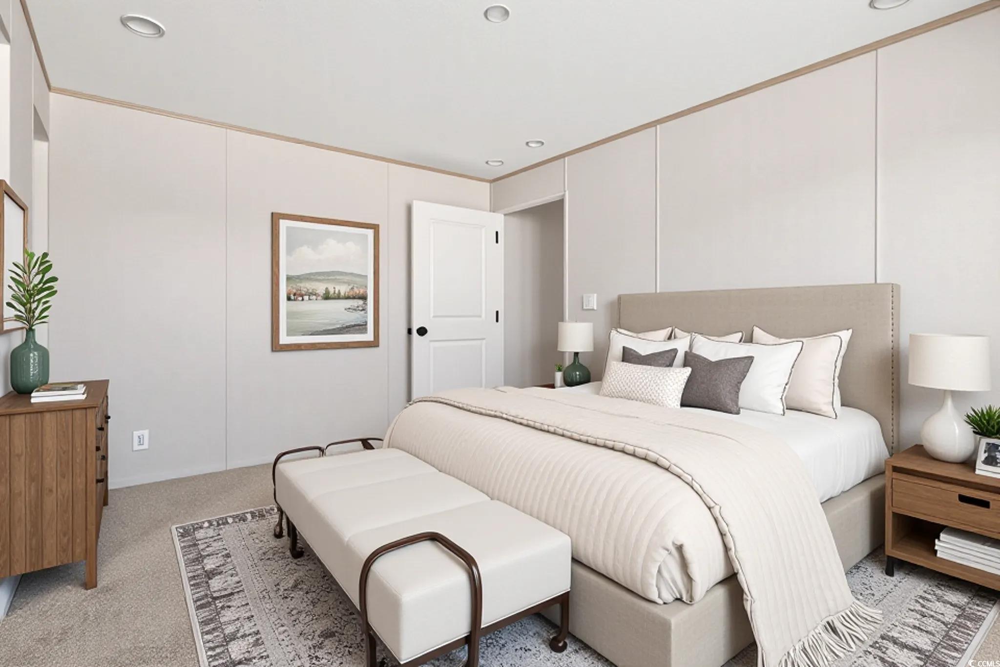 2025 NEW HOME located in the coastal getaway in 55+ Waterway View Community! 1 year Clayton Home warranty included! You are steps away from the INTRACOASTAL WATERWAY and a golf cart ride to the BEACH! This North Myrtle Beach location is ideal and allows you to enjoy a day on the beach, restaurants, shopping, and entertainment nearby! This modern 3-bedroom, 2-bath home with recessed lighting throughout blends comfort, style, and a touch of seaside charm—perfect for anyone looking to enjoy a charming getaway at the beach. Spacious DRIVEWAY allows plenty of parking for your GOLF CART and fresh landscaping adds to your curb appeal! Step inside to discover a beautiful open floor plan highlighted by, soft coastal tones, and plenty of natural light. The seamless flow between the open living room, kitchen makes this home ideal for gatherings with friends and family. The updated kitchen has STAINLESS STEEL APPLIANCES including a dishwasher, electric stove with a RANGE HOOD, white cabinetry, and a BREAKFAST BAR for quick meals. The primary suite with new plush carpet, complete with an updated en-suite featuring a modern vanity and oversized WALK IN SHOWER with glass shower doors. The additional 2 bedrooms each have a closet. The 2nd bathroom features a fiberglass shower and bathtub combo along with a single vanity including updated hardware. A dedicated LAUNDRY AREA with cabinet space adds convenience to your daily routine. As part of the Waterway View lifestyle, you’ll enjoy community amenities and quick access to the Intracoastal Waterway, plus you’re just a short golf cart ride to all the dining, shopping, entertainment, and sandy beaches North Myrtle Beach is known for. COMING SOON-Community POOL, picnic BBQ area and clubhouse! This brand new home truly offers the perfect blend of convenience and coastal charm—don’t miss your chance to make it yours! LEASED LAND Some photos have been virtually staged.