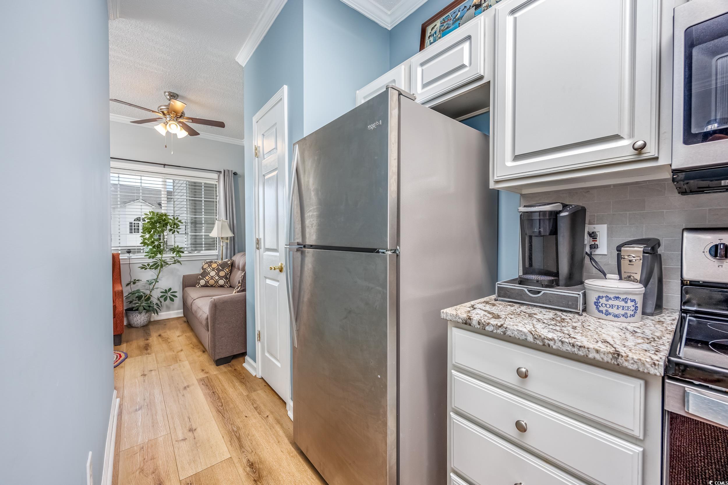 Wow! This one has it all! Enclosed Carolina Room with an awesome view of Arrowhead Golf Course. New granite countertop in 2023, New HVAC in 2020, new range, stove, microwave and refrigerator in 2021. The building is equipped with an elevator. It's a short walk to the ICW, and a short drive to all Myrtle Beach attractions. Not ready to settled down! Short-term rentals are also allowed here.