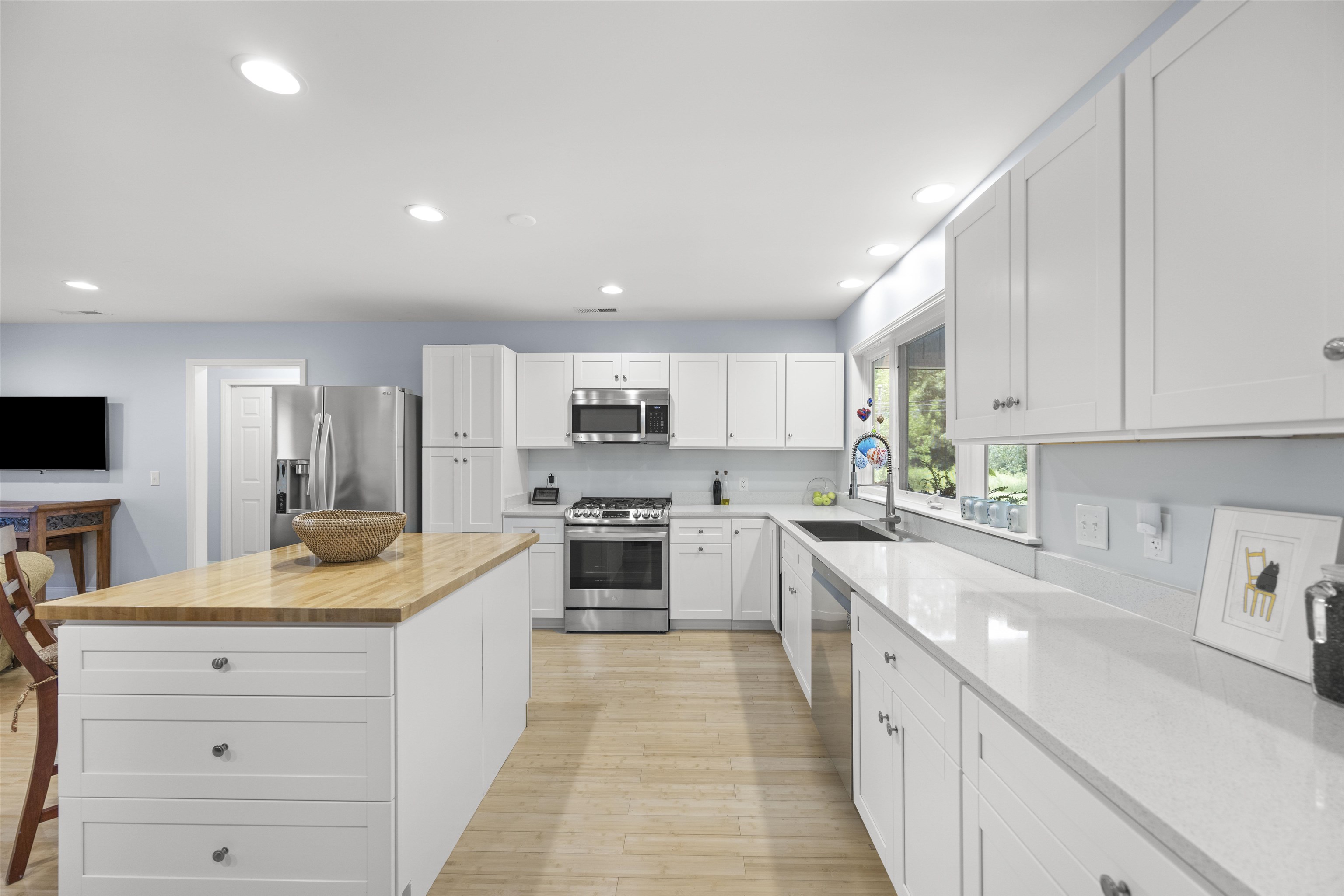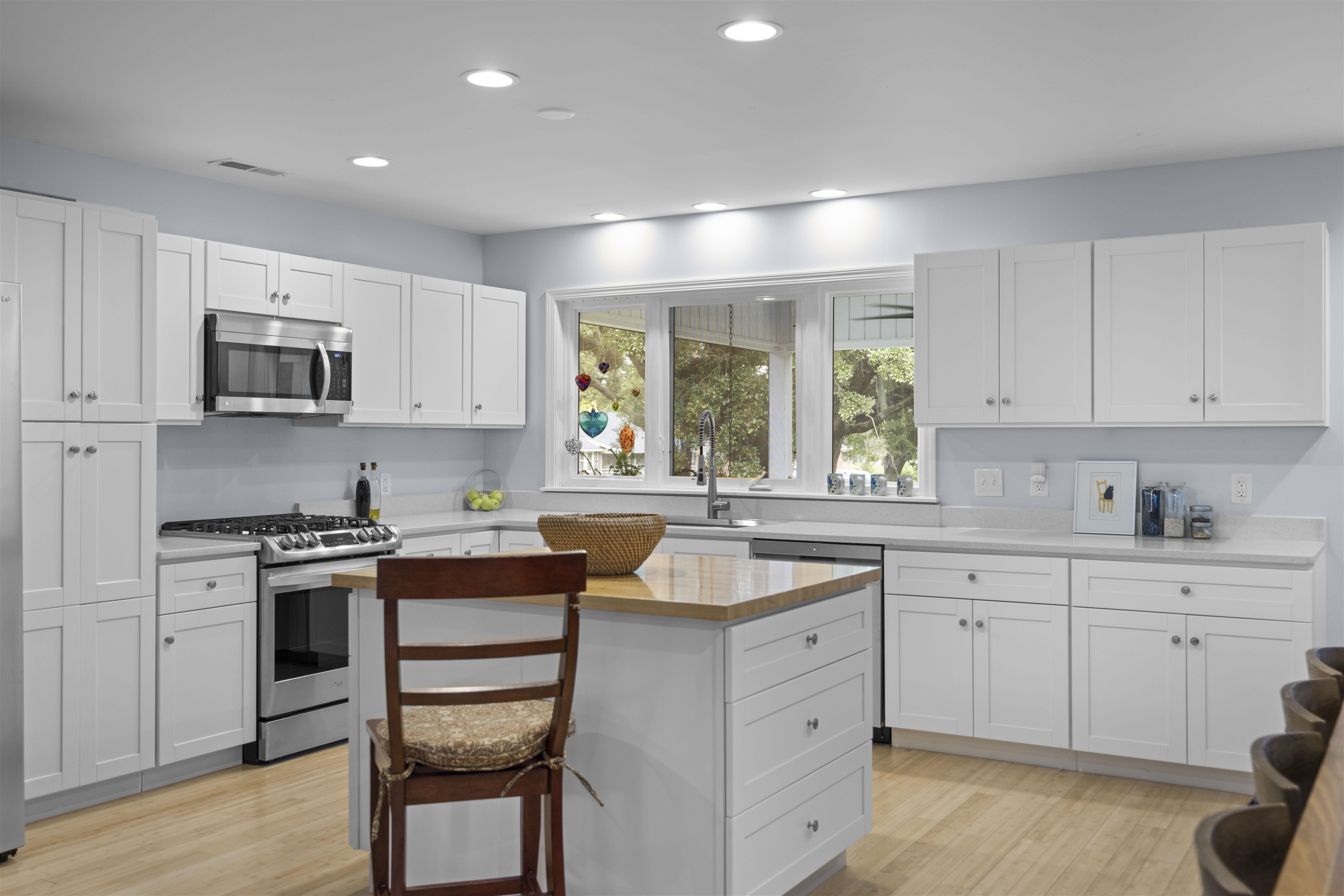 Schedule your showing today of this well-located, meticulously kept ranch with an open floor plan, eco friendly bamboo and cork flooring, all new kitchen with white Shaker cabinets, quartz countertops, prep island, pantry, Kohler sink and faucet and all new LG appliances. Guest bath is newly remodeled with glass shower tile. Additional amenities include laundry room with custom teak counter and shelving, well landscaped yard, Blue stone patio, two bay garage with additional cabinets, freshly painted exterior, crushed granite driveway, electric car charger and roomy screen porch with a swing for relaxing. An easy walk to Georgetown's Harbor walk and historic Front Street with its shops, restaurants, museums and events. This is a rare find. Make it your own.