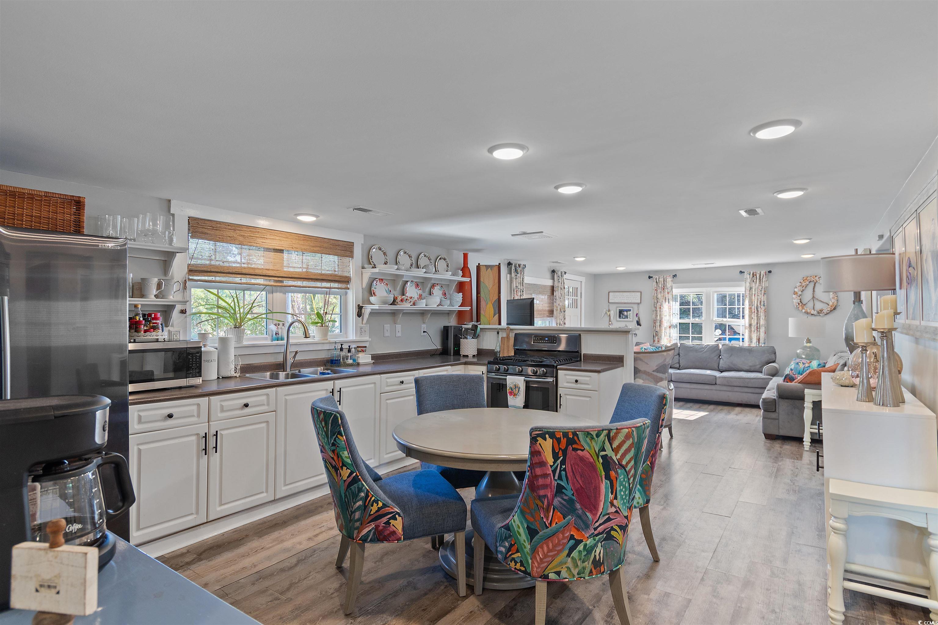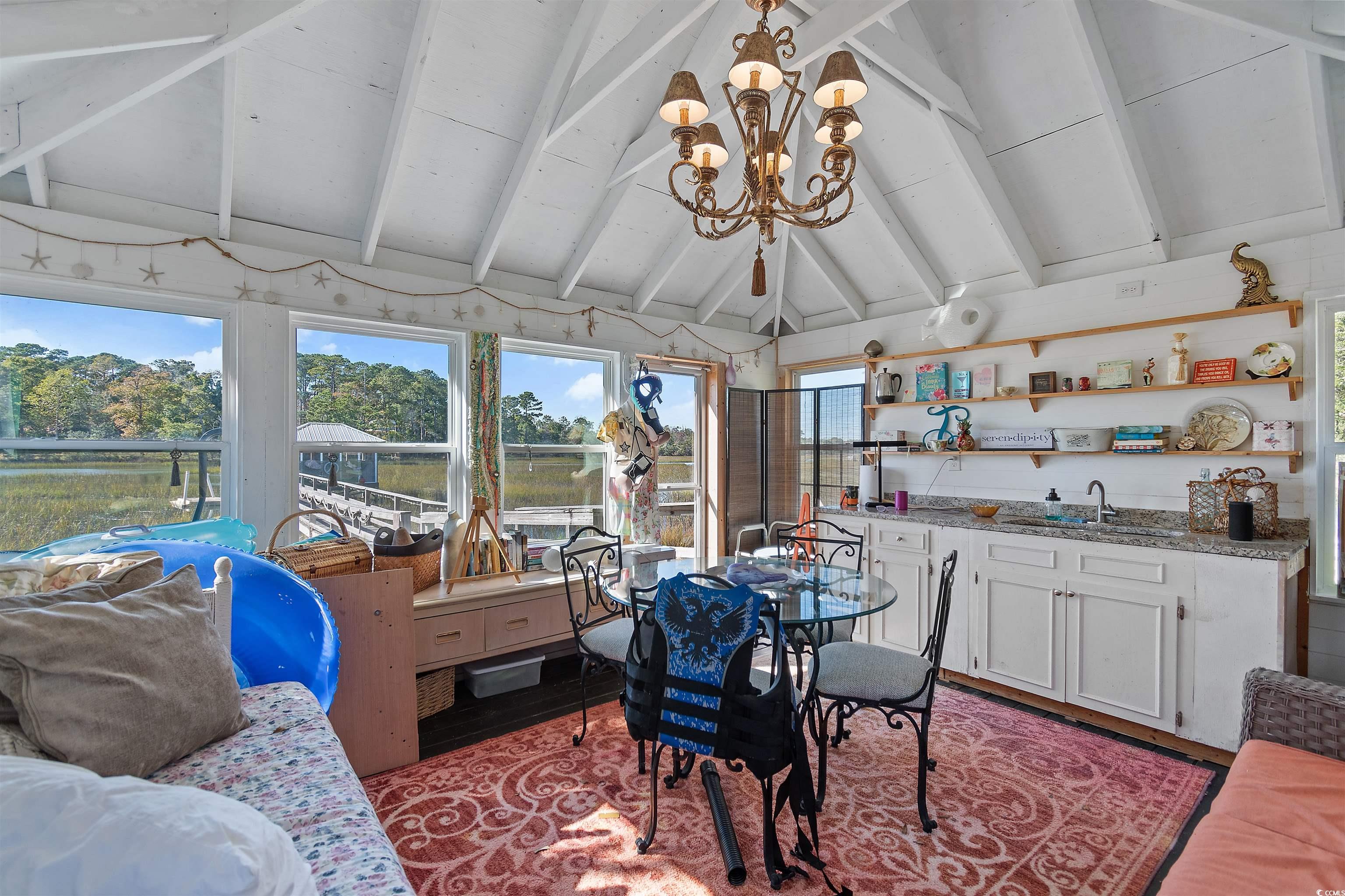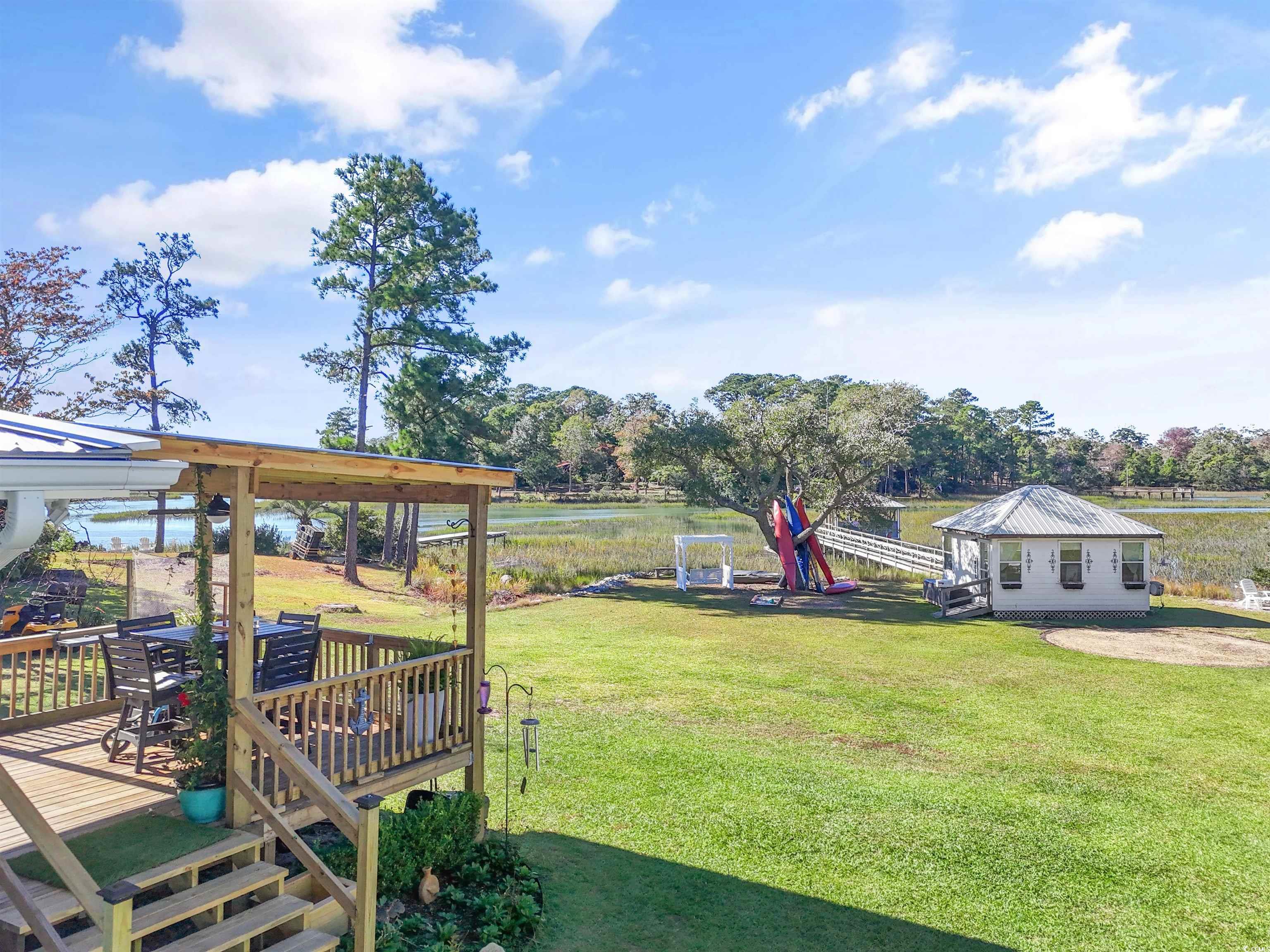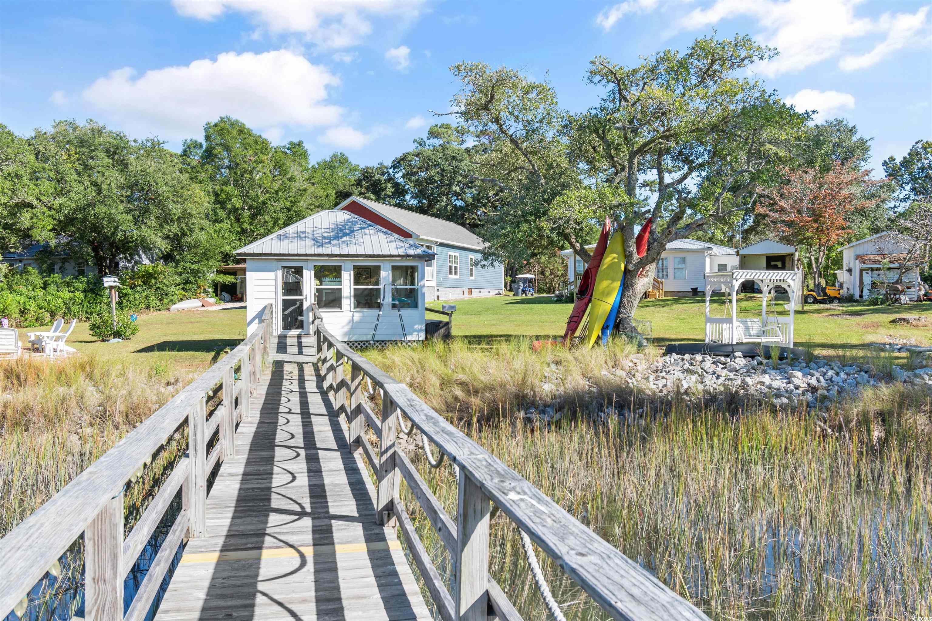 Experience the beauty of the Southern waterfront living in this extraordinary Shallotte retreat, where timeless charm meets the serenity of Saucepan Creek. Every inch of this property was designed to capture the essence of coastal Carolina living — luxurious, peaceful, and perfectly connected to nature. Nestled on a stunning waterfront lot, this home offers the ideal balance of elegance and comfort just minutes from pristine beaches, boutique shopping, and the vibrant heart of Shallotte. With a metal roof (2018), upgraded HVAC (2021), and a newly covered porch (2025), the home blends durability with modern style. Inside, sunlight pours across open living spaces with vinyl plank flooring, recessed lighting, and a seamless flow between the living room and kitchen. Cook and entertain with ease using the propane gas stove, stainless steel sink, and modern appliances. The fireplace and built-in mini bar in the primary suite convey — perfect for cozy nights and morning coffee with a view. Three spacious bedrooms and beautifully updated bathrooms elevate everyday living. The hallway bath features a tiled walk-in shower with glass enclosure, while the primary en-suite feels like a private spa with a soaking tub, chandelier, and elegant finishes. Step outside to where this home truly shines — an expansive wooden deck overlooking Saucepan Creek, ideal for hosting, relaxing, or simply watching the sunset. The detached marsh house is fully powered, with wood flooring, solid-surface counters, a sink, and a mini fridge — ideal as a guest retreat, studio, or entertaining space. A dock with an open-air gazebo and boat parking extends your living area onto the water. With deeded shared access to the marsh house and dock, you’ll enjoy affordable waterfront maintenance and effortless access to the creek — perfect for launching kayaks, fishing, or exploring by boat during high tide. Additional features include two rock driveways for ample parking, a large side shed, public water, and private septic. Only the back corner of the property touches the flood zone, and the home has never flooded under current ownership — providing both peace of mind and waterfront freedom. Located in the heart of Brunswick County, Shallotte, NC offers the perfect blend of small-town charm and coastal sophistication. This friendly, fast-growing community is known for its vibrant local businesses, top-rated schools, and easy access to some of the most beautiful beaches on the East Coast. Residents enjoy a laid-back, coastal lifestyle while being just minutes from shopping, dining, and outdoor recreation. Spend your weekends exploring Ocean Isle Beach, Sunset Beach, and Holden Beach, all just a short drive away — each offering soft white sand, crystal blue water, and a true Carolina beach-town vibe. Whether you’re boating along the Intracoastal Waterway, golfing one of Brunswick County’s championship courses, or dining on fresh-caught seafood at a local waterfront restaurant, Shallotte provides the best of coastal living with year-round convenience. With its ideal location between Wilmington and Myrtle Beach, Shallotte makes everyday living feel like a permanent vacation — offering both tranquility and accessibility. From sunrise walks along the shore to evenings spent on the deck overlooking Saucepan Creek, life here is meant to be savored. This is more than a home — it’s a lifestyle. A place to slow down, savor sunsets, and live where every day feels like a getaway. Schedule your private showing today — waterfront homes like this on Saucepan Creek are rare, and this one won’t last long.
