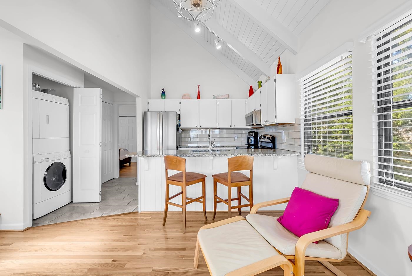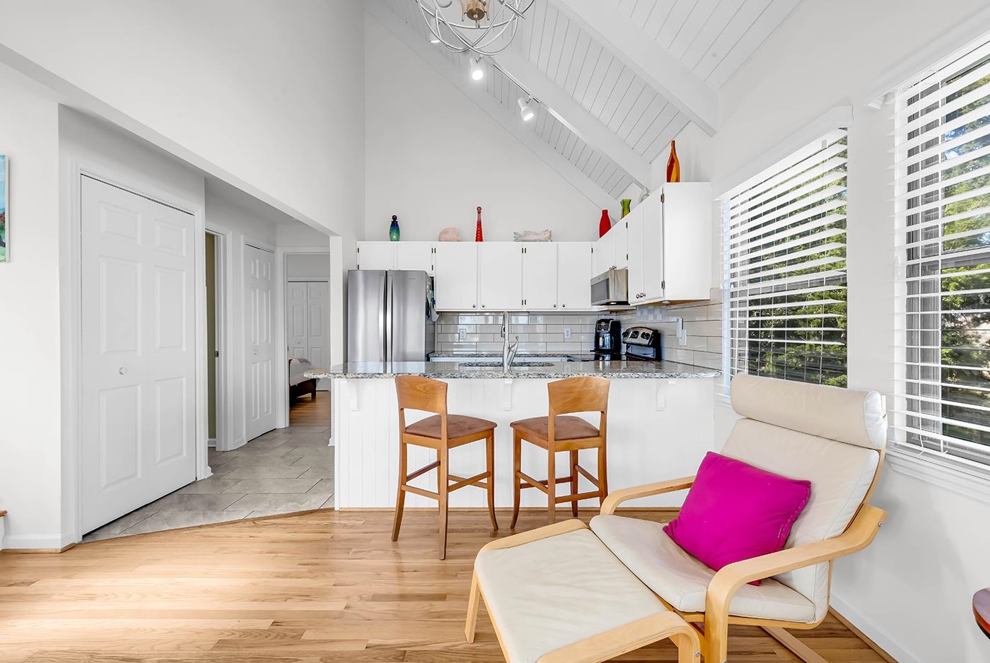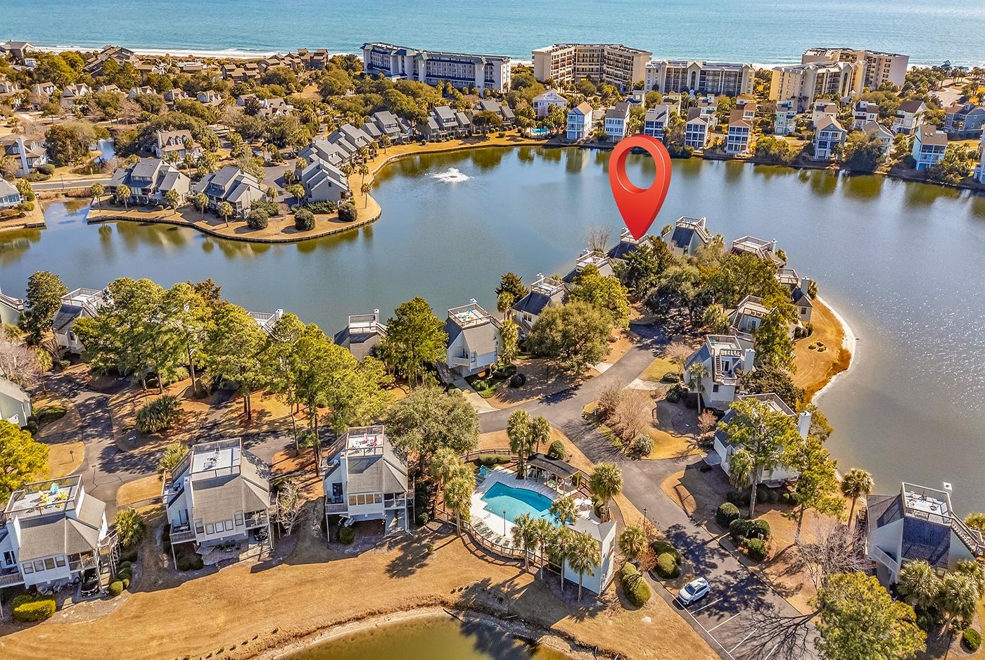Welcome to coastal living at its best in this beautifully updated 3-bedroom, 3-bath homed located inside the highly desirable Litchfield By the Sea community. Designed to capture bother comfort and scenery, this home offers multiple outdoor living spaces and tranquil water views. Enjoy peaceful mornings overlooking Osprey Lake, where abundant birdlife creates a true Lowcountry backdrop, and take in ocean views from the top deck. The home features an enclosed screened porch on the bottom level and an enclosed sunroom upstairs, providing year-round spaces to relax and unwind. A screened porch off the primary bedroom adds another private retreat. Inside, the home shines with a remodeled kitchen, remodeled bathrooms with all new fixtures and ceiling fans throughout this villa and new flooring upstairs and in bedrooms. A thoughtful layout ideal for full-time living or a beach getaway. Additional highlights include ample storage on ground level, perfect for a golf cart, beach chairs and grills. With easy access to the beach and community pool just steps away, this home delivers the best of Litchfield living-natural beauty, coastal convenience, great restaurants close by, and relaxed elegance.