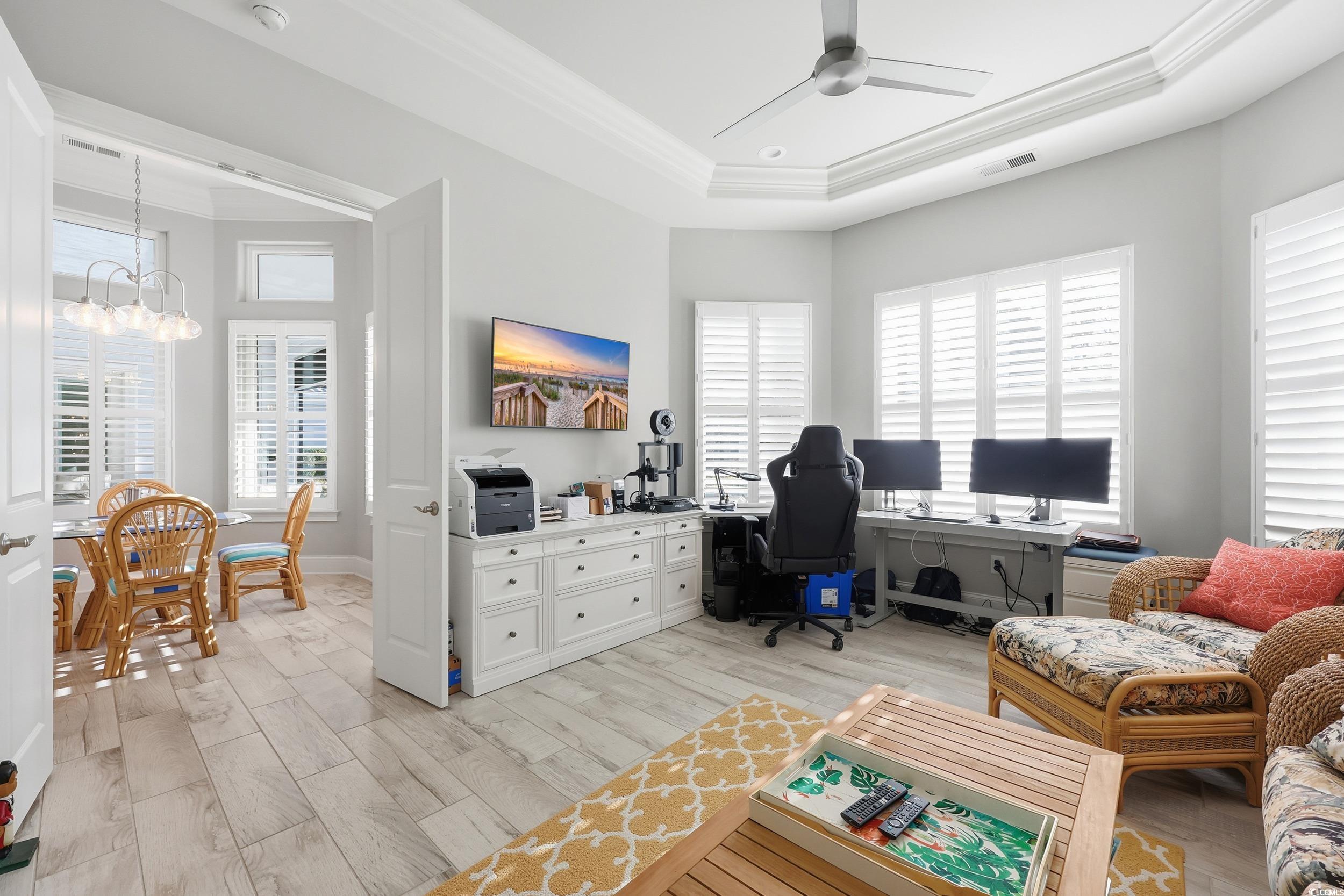 Welcome to 1532 Malaga Circle in the prestigious Grande Dunes community of Myrtle Beach. This beautifully crafted custom home, built in 2017, blends modern Mediterranean style with timeless quality. Designed for single-story living, it offers 3 spacious bedrooms, 3 full bathrooms, plus an office/flex room that could easily function as a fourth bedroom. Step inside to find a bright, open floor plan with elegant finishes, light and fresh color palettes, and a level of care that makes the home feel practically brand new. The kitchen, living, and dining areas flow seamlessly for everyday comfort and easy entertaining. The outdoor living space is truly exceptional, featuring a private saltwater pool with a screened enclosure for year-round enjoyment. The home also includes a three-car garage and a whole-home generator that will remain for added peace of mind. As a resident of Grande Dunes, you’ll enjoy exclusive membership access to the famed Ocean Club, a gated oceanfront retreat with parking for cars and golf carts, private dining, bar service, a beachfront pool, and direct access to one of the most beautiful stretches of coastline in the area. The location offers unmatched convenience to the Grande Dunes Resort Golf Course, Grande Dunes Marina, medical facilities, top hospitals, and some of the best dining, shopping and entertainment Myrtle Beach has to offer. Come experience the Grande lifestyle at Grande Dunes. This is coastal living at its finest .Floor plan included with this listing was completed by third party and All measurements and data are deemed reliable but are not guaranteed, purchaser and or purchasers professional to verify.For more information about this listing please contact the Listing Broker OR your real estate professional.