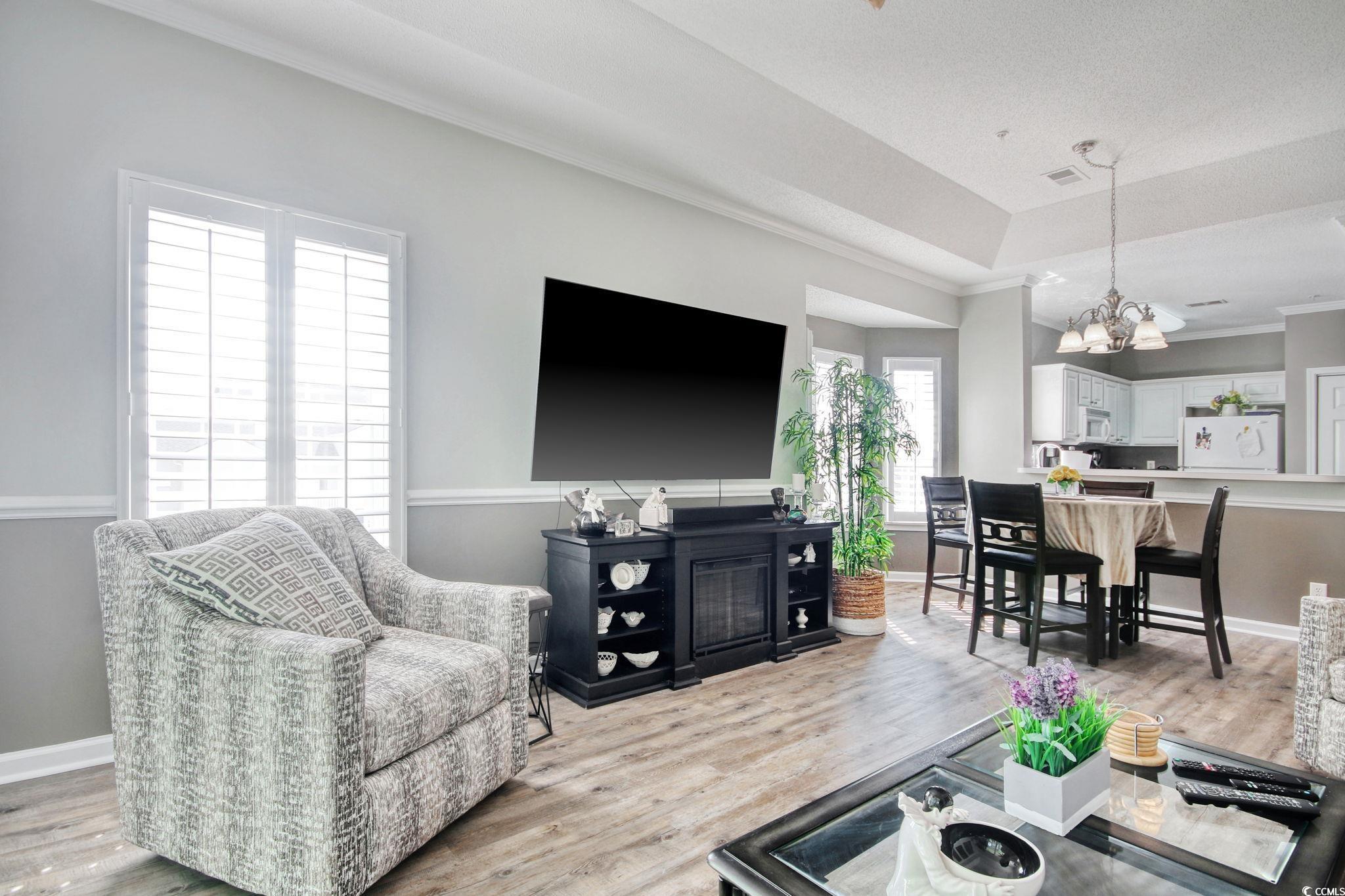 Turnkey Furnished Top-Floor End Unit with Golf Course & Waterway Views! Book your showing today to tour this must-see condo in the desirable Riverwalk II community, located within and along the Arrowhead Golf Club. This top-floor end unit offers incredible privacy, natural light, and unbeatable views—plus the convenience of an elevator in the building for easy access. Recently updated with high-quality LVP flooring, fresh paint, stylish fixtures, and a brand-new refrigerator (March 2025), this condo is truly move-in ready. The rear porch has been fully enclosed with floor-to-ceiling glass windows, creating a beautiful 4-season Carolina room ideal for extra living or entertaining space. Open the windows on a nice day and enjoy the breeze! Enjoy peaceful views of the #5 tee box and fairway on the Cypress course at Arrowhead, along with Intracoastal Waterway views from your east-facing windows—perfect for catching the morning sun with your coffee. Riverwalk II offers outstanding community amenities, including a pool, hot tub, sun deck that overlooks the ICW, and a private pier/dock for residents. The location is unbeatable—just minutes from shopping, restaurants, entertainment, golf, top-rated schools, the beach, airport, major highways and all that the Grand Strand has to offer. All appliances convey, including a new stainless-steel refrigerator, range, dishwasher, microwave, washer and dryer. Window treatments with plantation shutters also convey. Whether you're looking for a primary residence, income-producing rental, or a secondary home, this condo checks all the boxes. Or just bring your extra clothes and your toothbrush and start living the good life tomorrow in your already furnished condo!! Located in the sought-after Carolina Forest school district, one of the top districts in the area. Schedule your showing today to view your condo for tomorrow!! Square footage is approximate and not guaranteed. Buyer and buyer's agent are responsible for all verifications.
